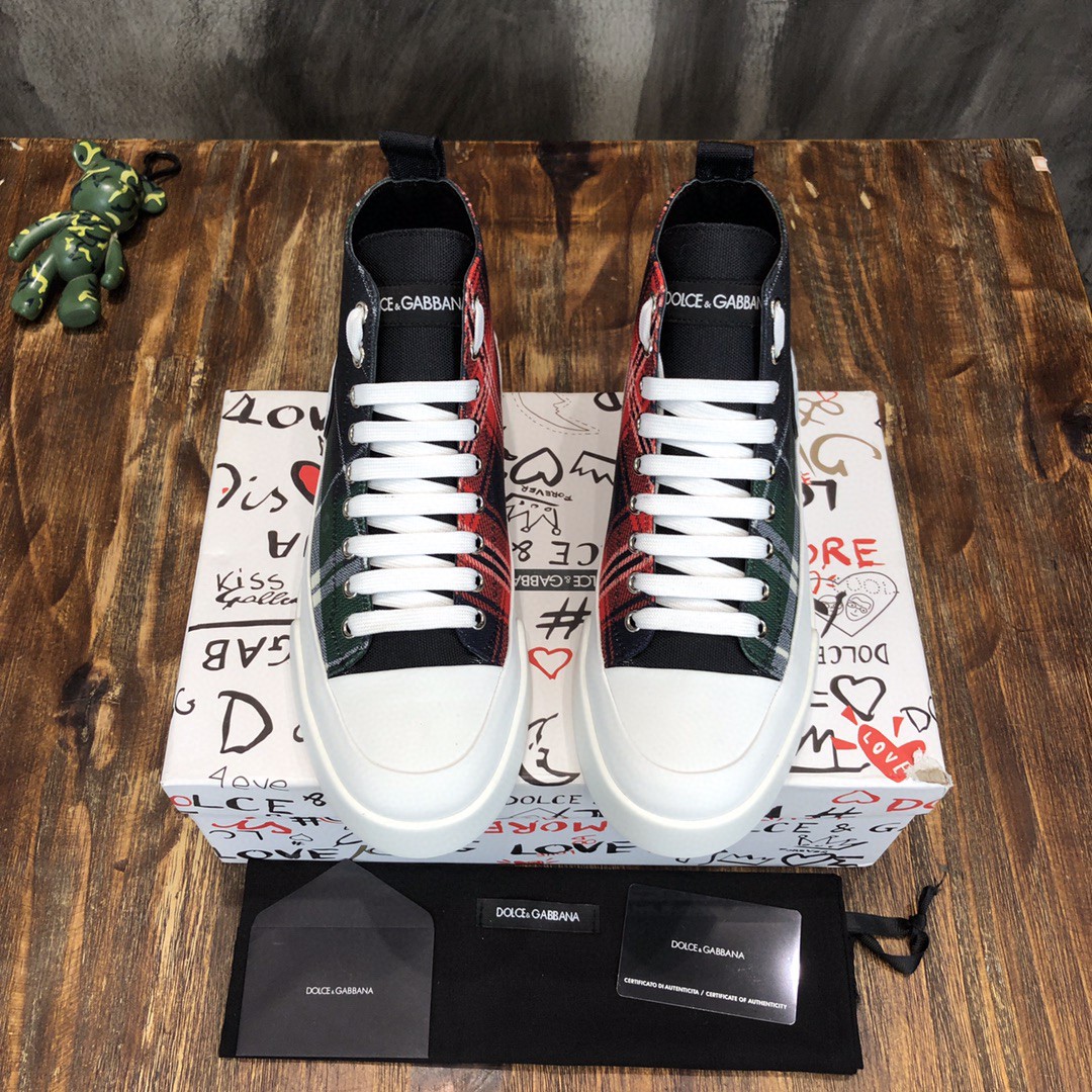 Dolce & Gabbana Two-Tone Canvas Portofino Light Mid-Top Sneakers With DG Logo Multicolor For Men DG Shoes