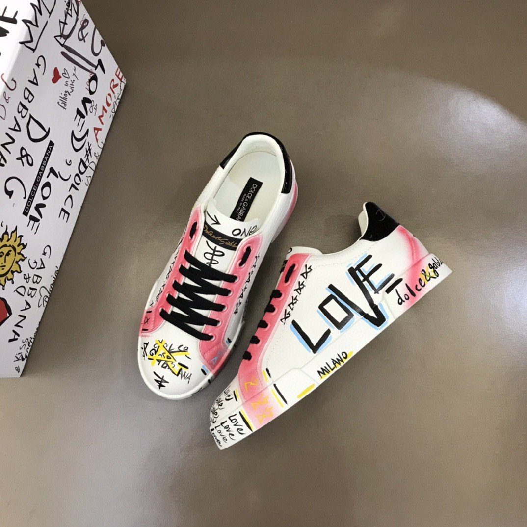 Dolce & Gabbana Nappa Portofino Sneakers With DG Logo Print White For Men DG Shoes $299.00