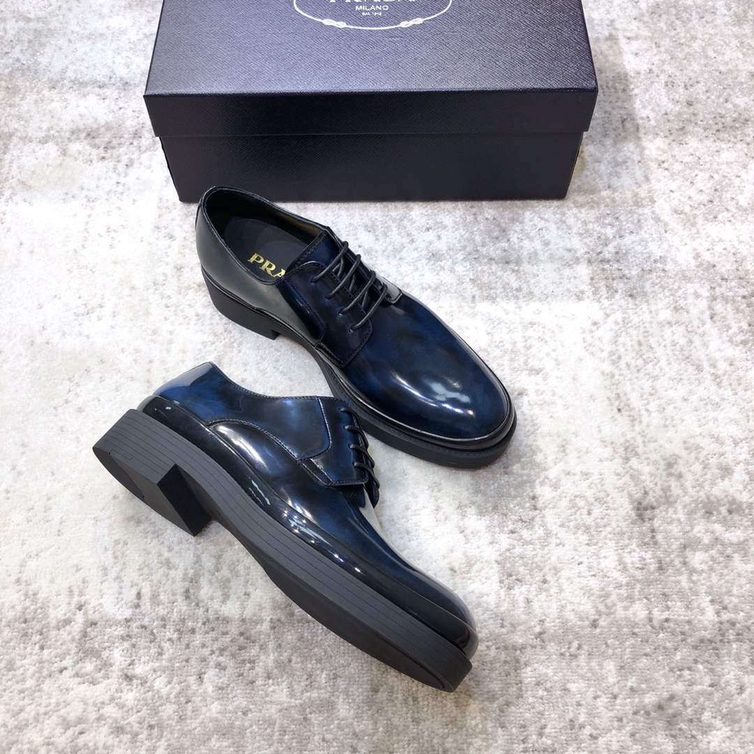 Prada Brushed Derby Shoes Dark Blue For Men 1in/25mm PradaÂ