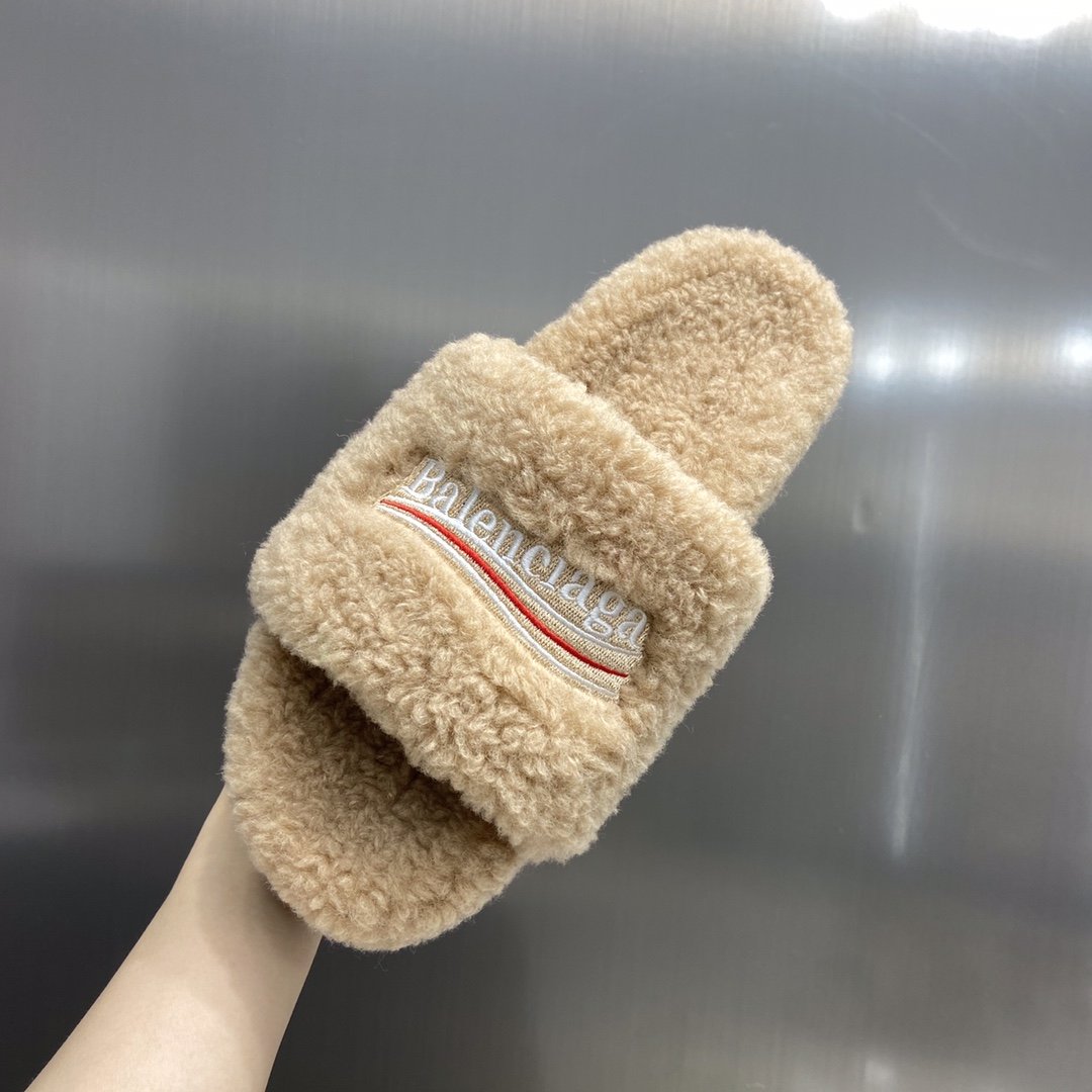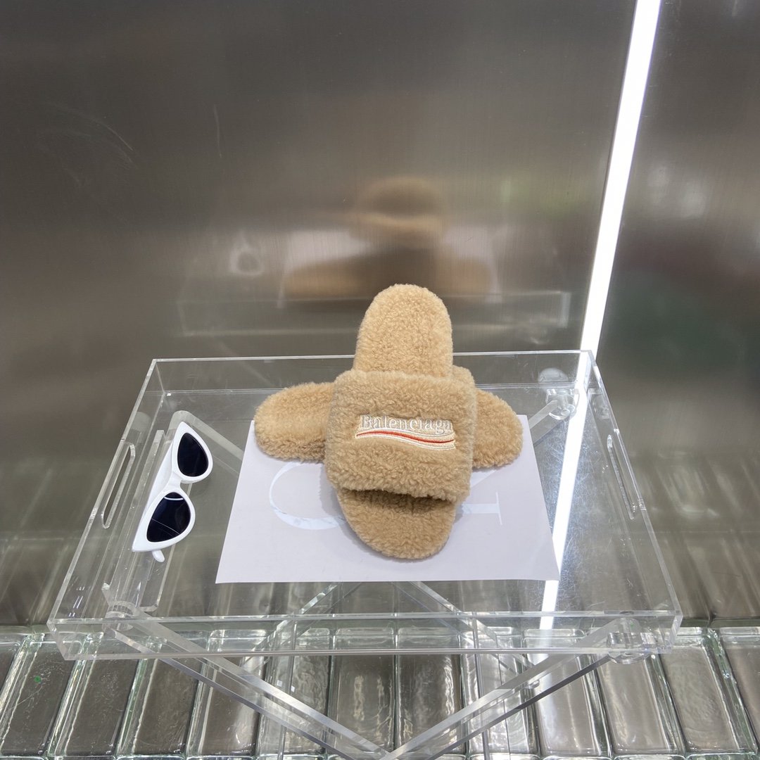 BALENCIAGA Furry Slide Sandal Beige For Women