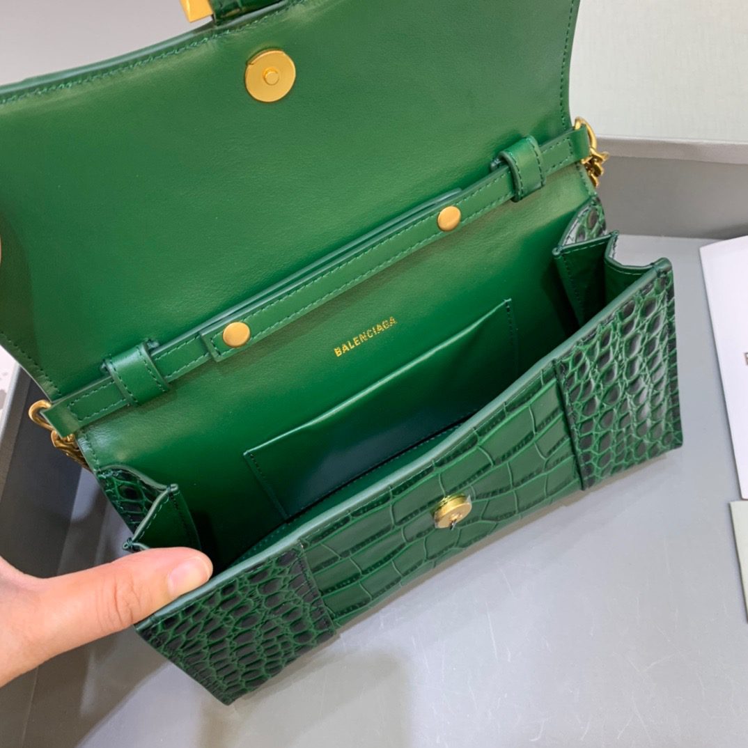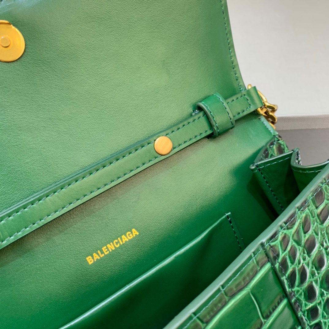 BALENCIAGA Hourglass Wallet On Chain in Dark Green, For Women, Women’s Bags 9in/23cm