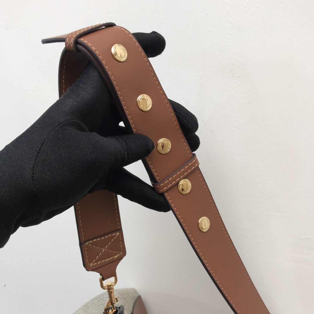 A compact crossbody bag in cotton canvas and two-tone Italian-tanned. The style is tagged with our Horseferry print and accented with a polished triple-stud closure. Wear across the body or detach the strap to carry as a clutch.