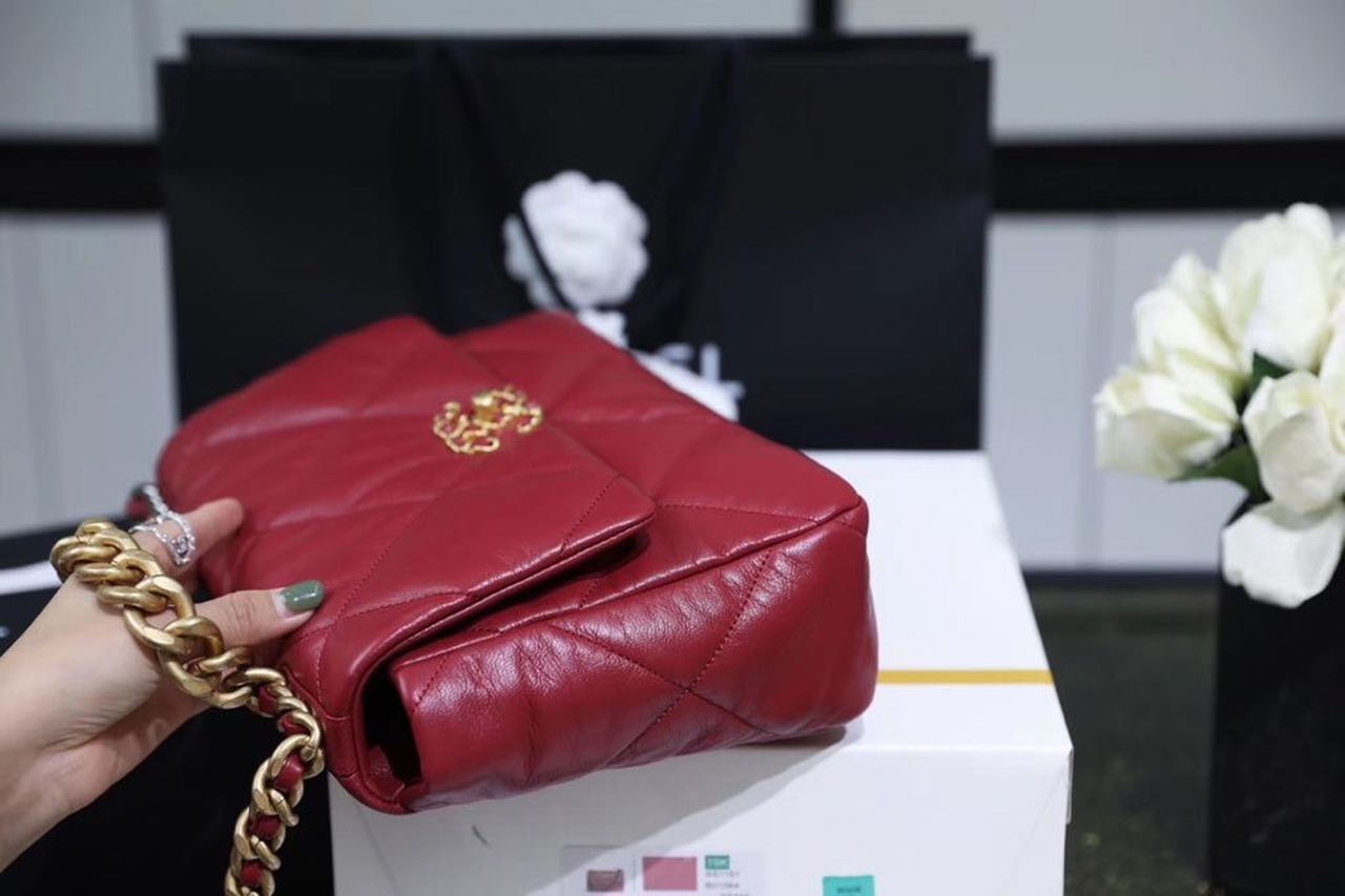 • Chanel 19 Handbag 26cm Burgundy For Women AS1160