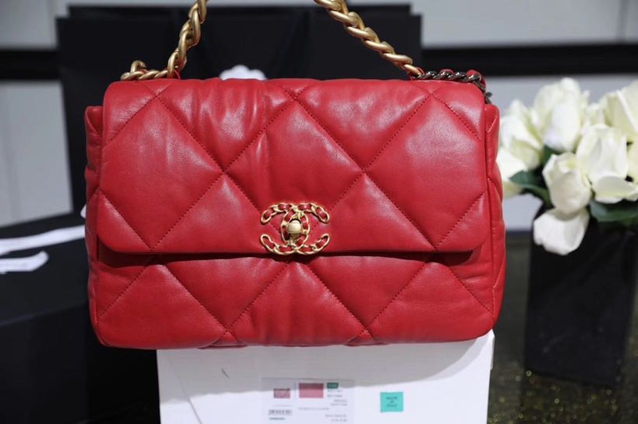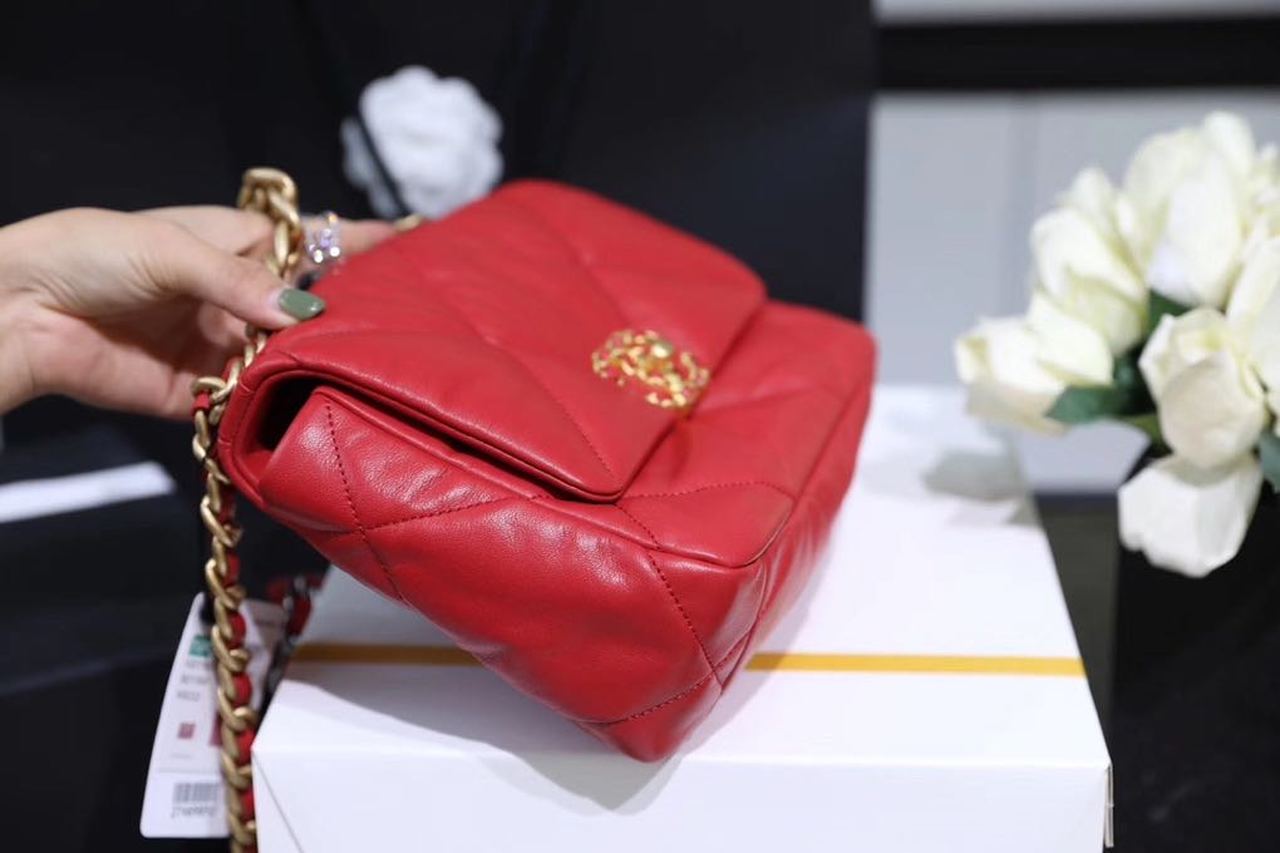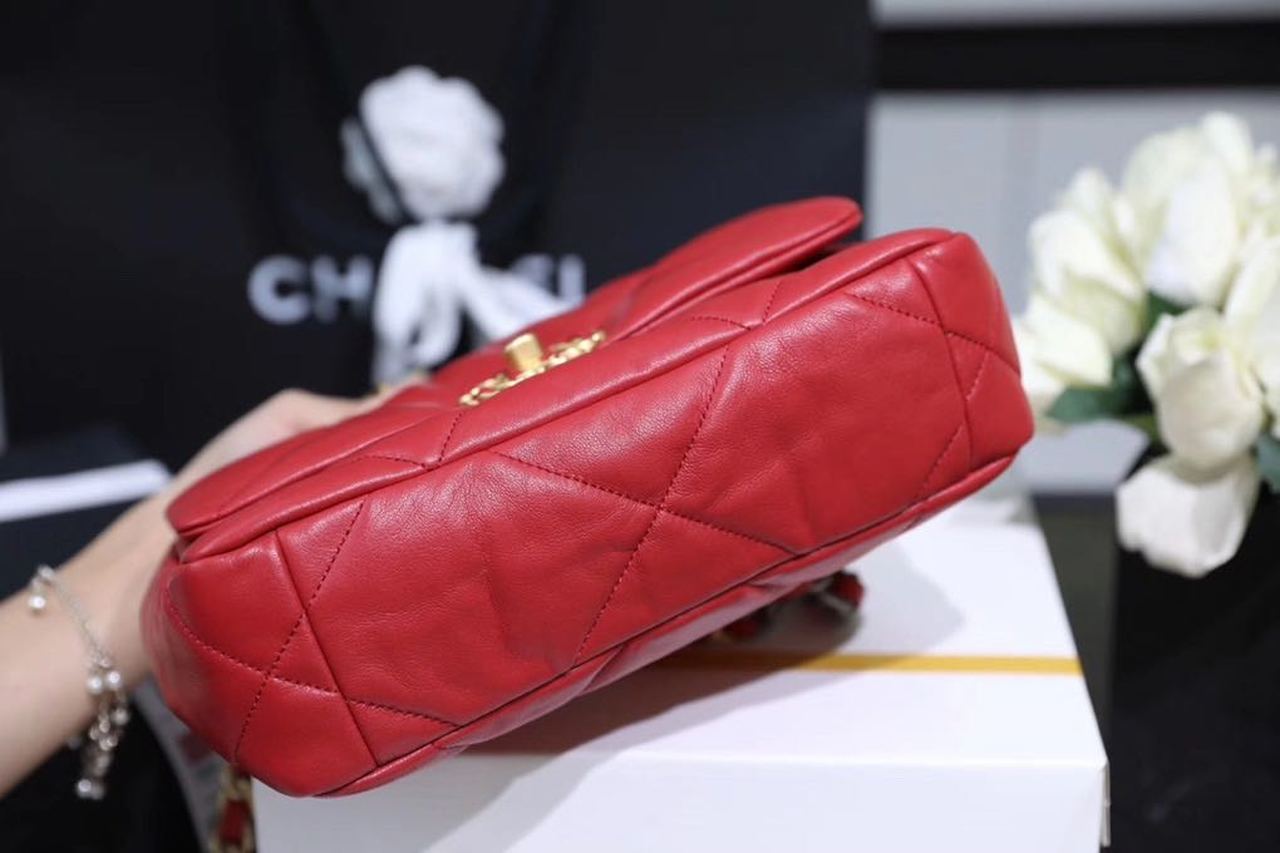 Chanel 19 Handbag 26cm Red For Women AS1160
