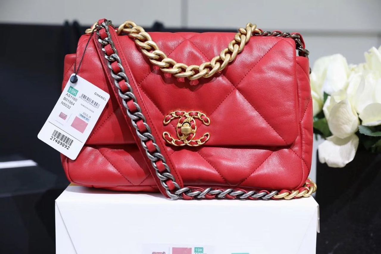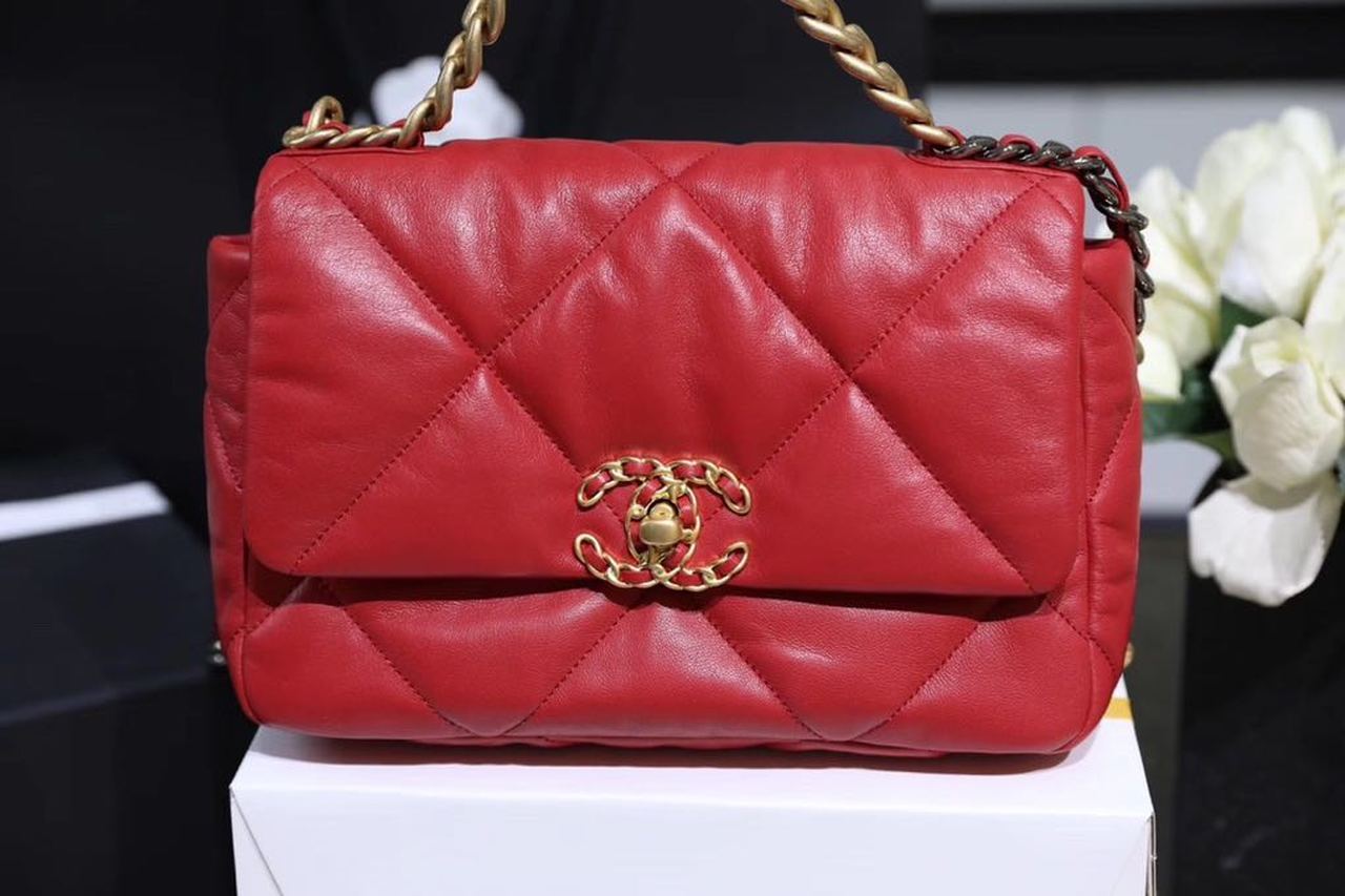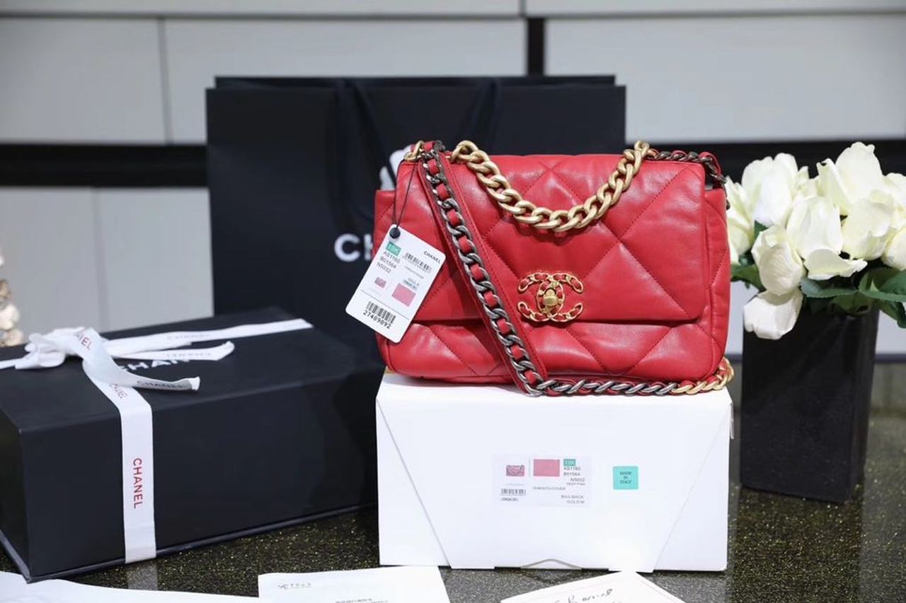 Chanel 19 Handbag 26cm Red For Women AS1160