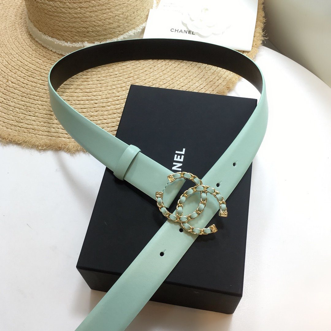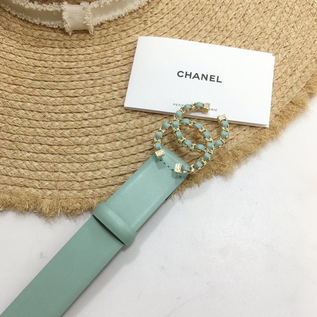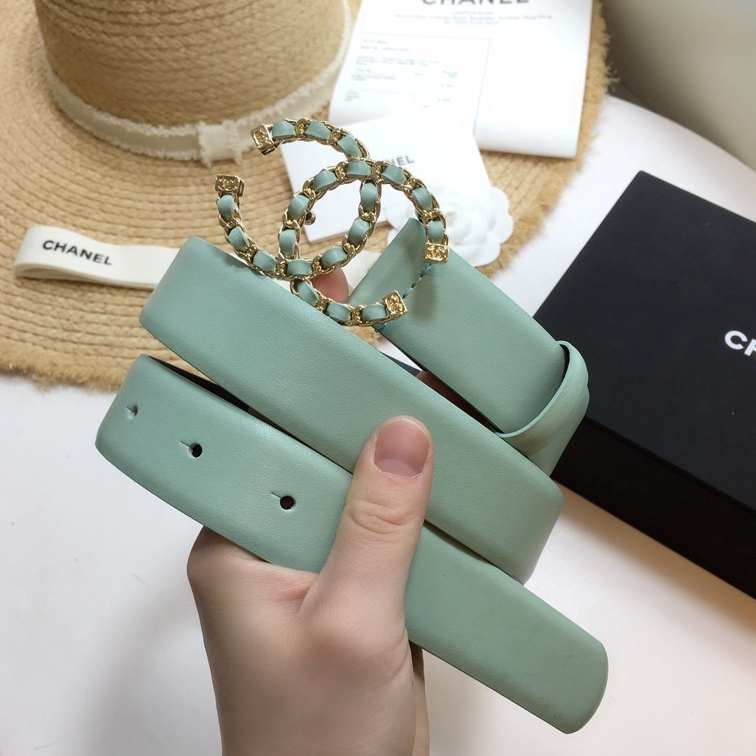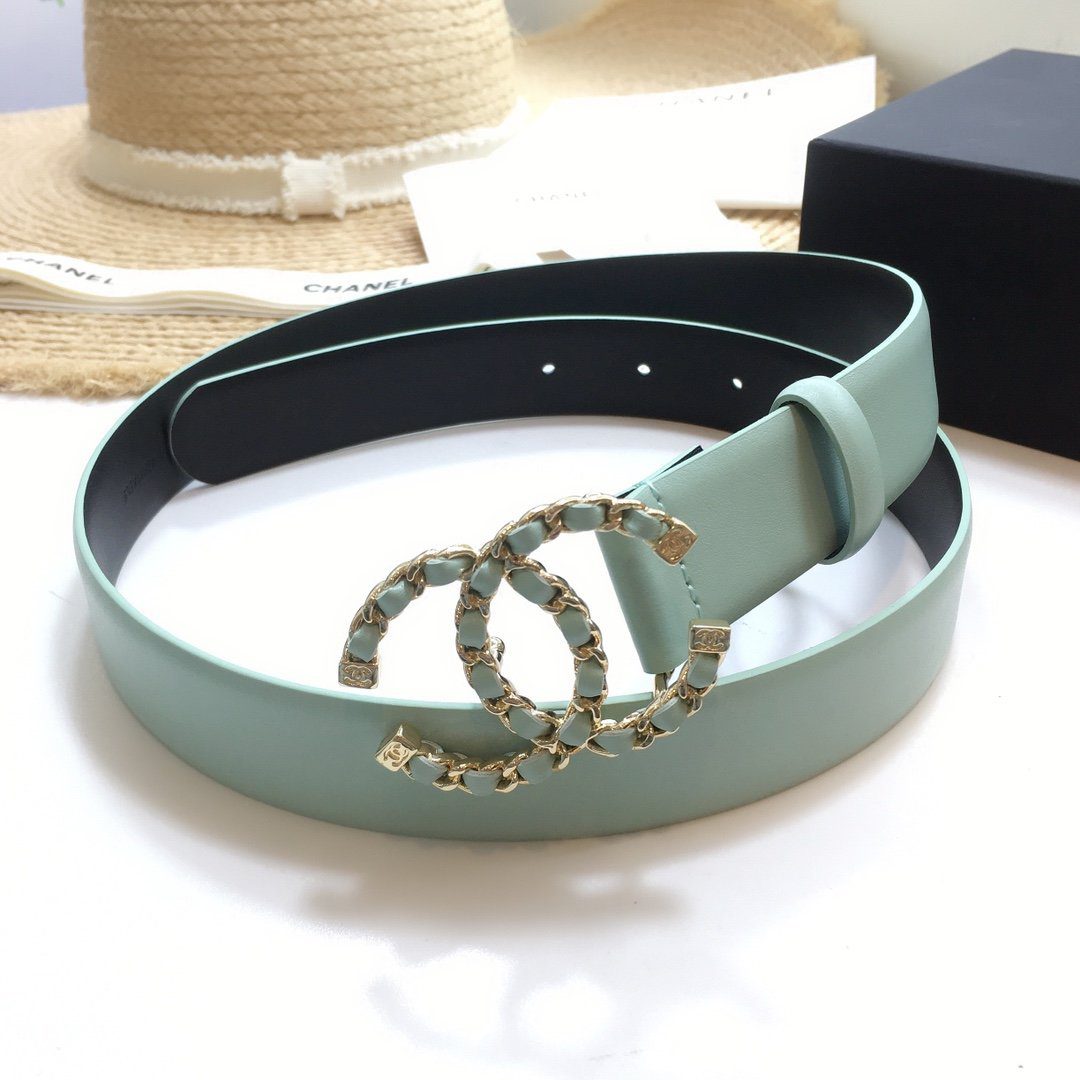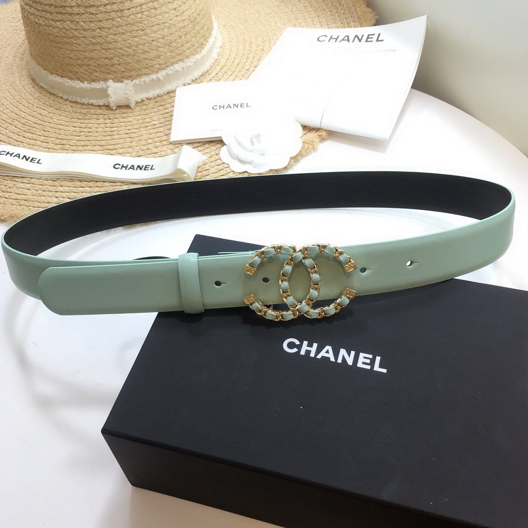 Chanel Belt With Double C Buckle Jade Green with Gold mix Jade Green Hardware Women Belt
