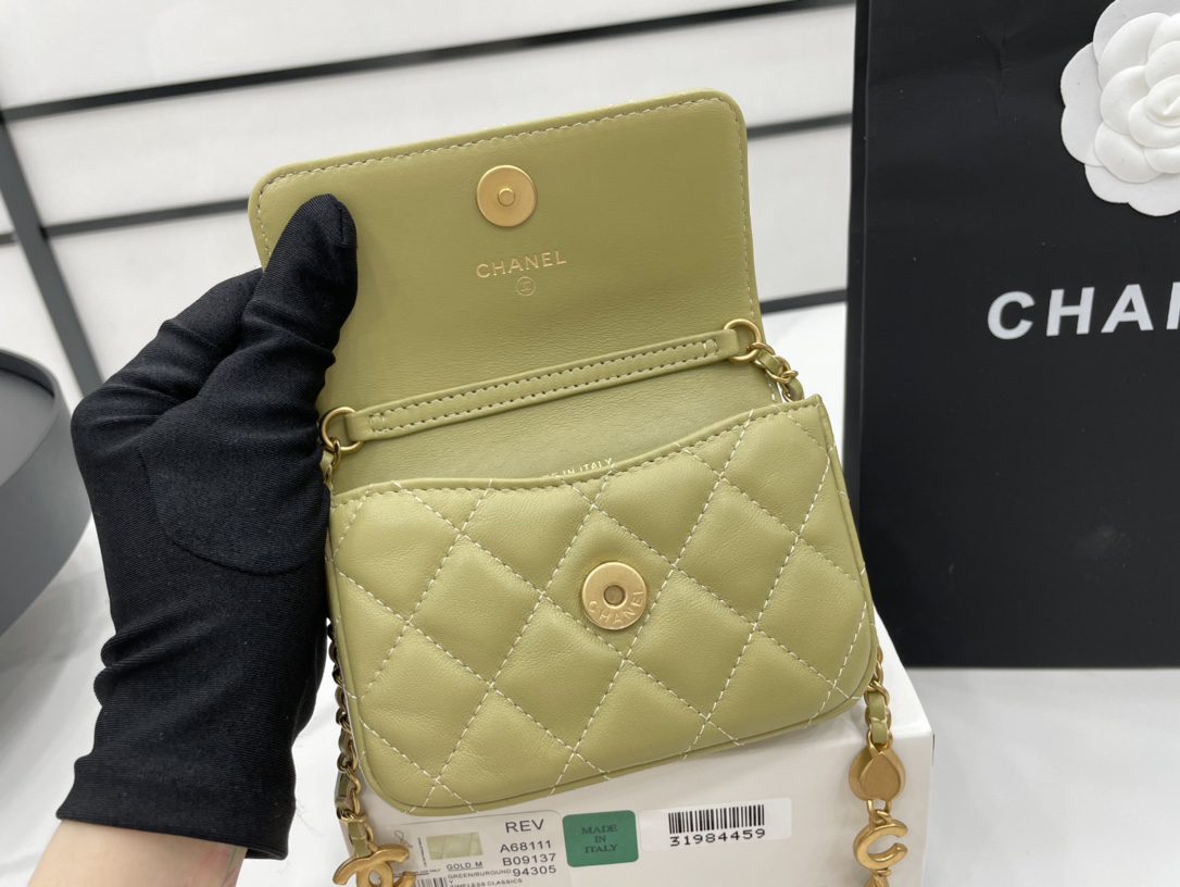 Chanel Classic Distressed Green For Women, Women’s Bags 4.7in/12cm