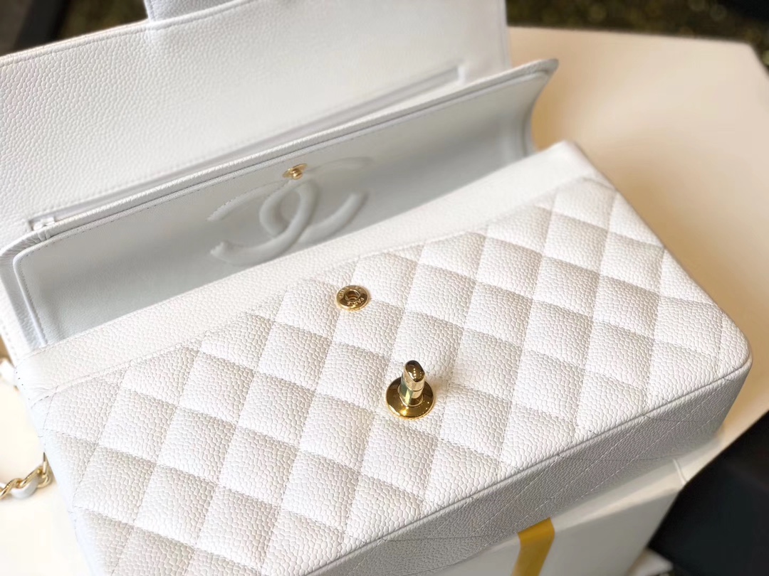 Chanel Classic Medium Flapbag Golden Hardware White 10in/25.5cm
