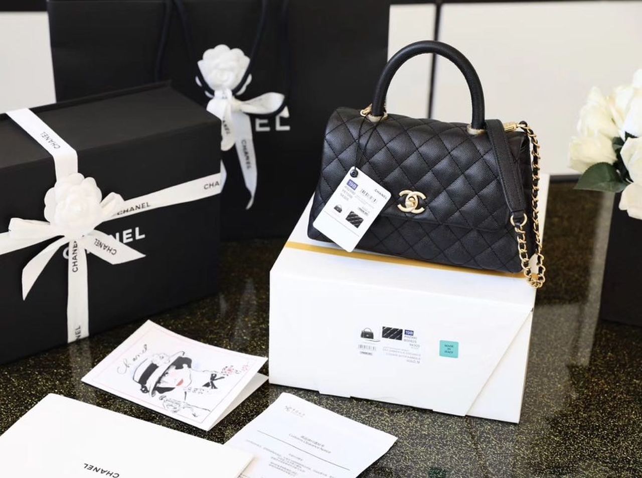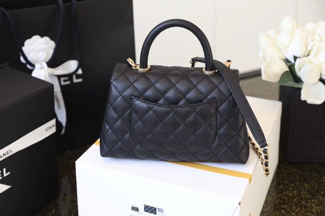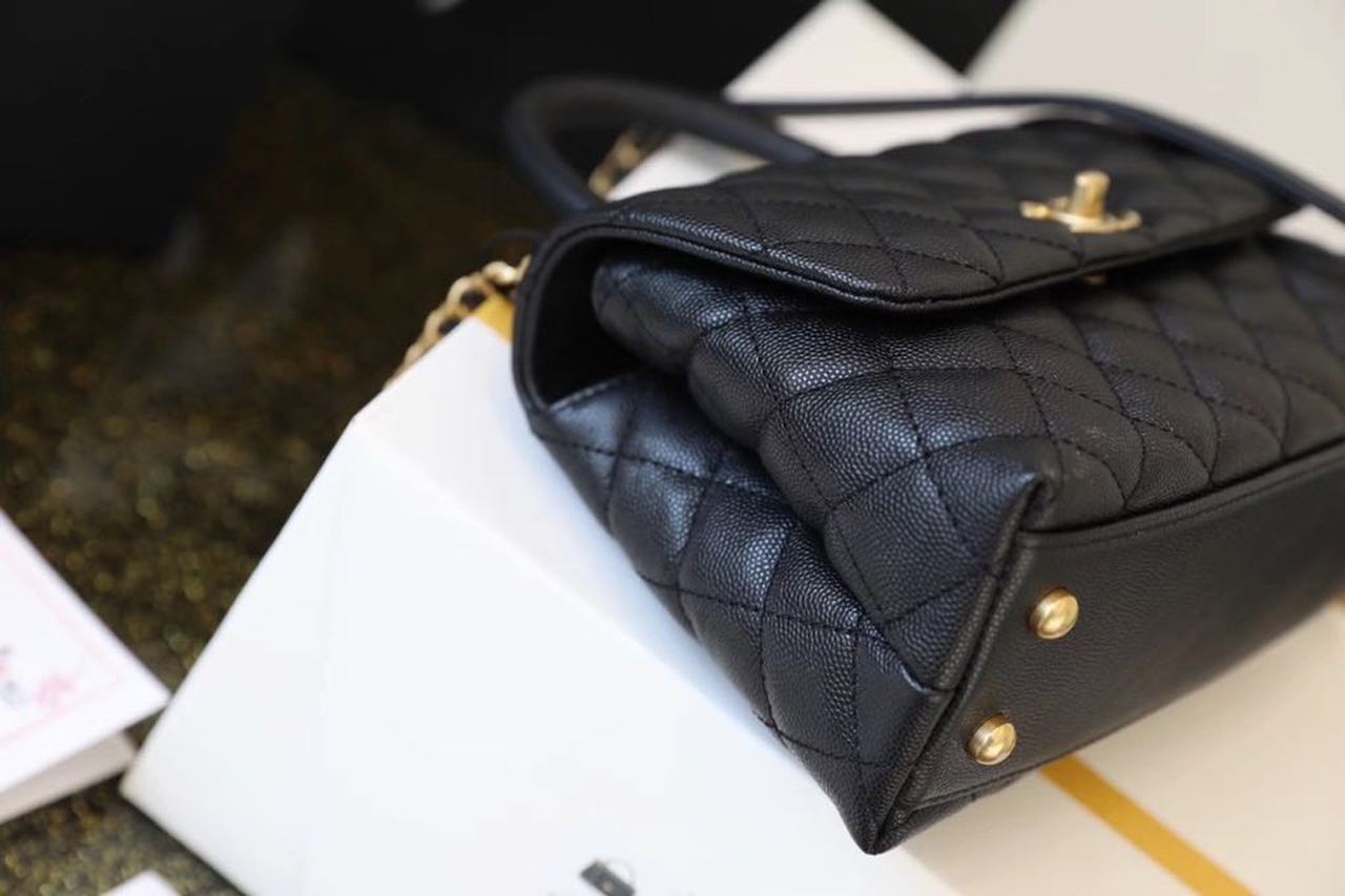 Chanel Coco With Top Handle Bag Gold Toned Hardware Black For Women 9.4in/24cm