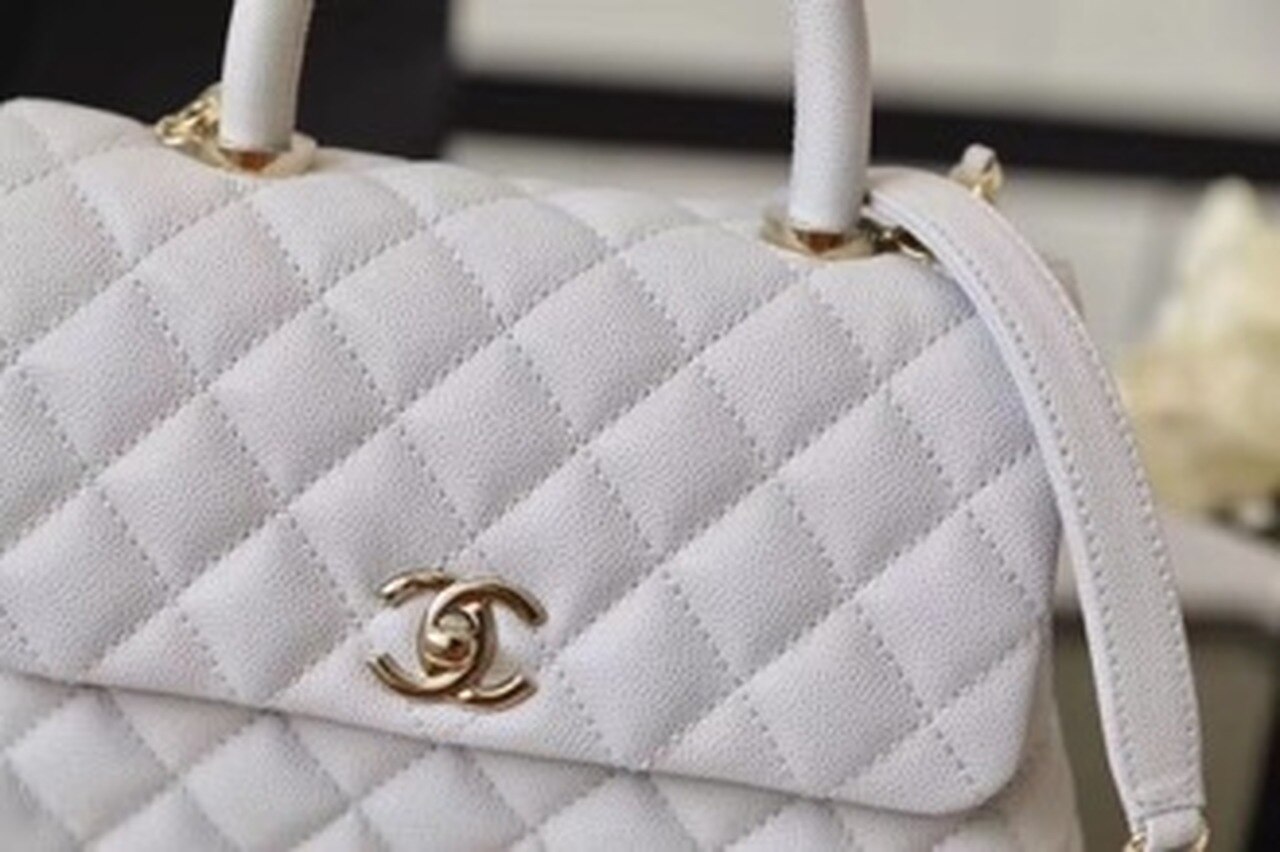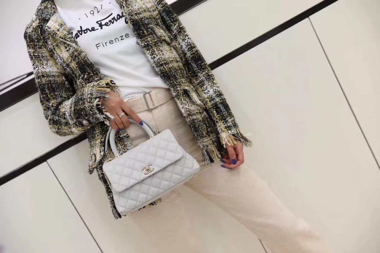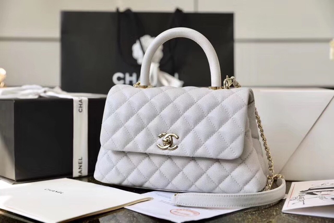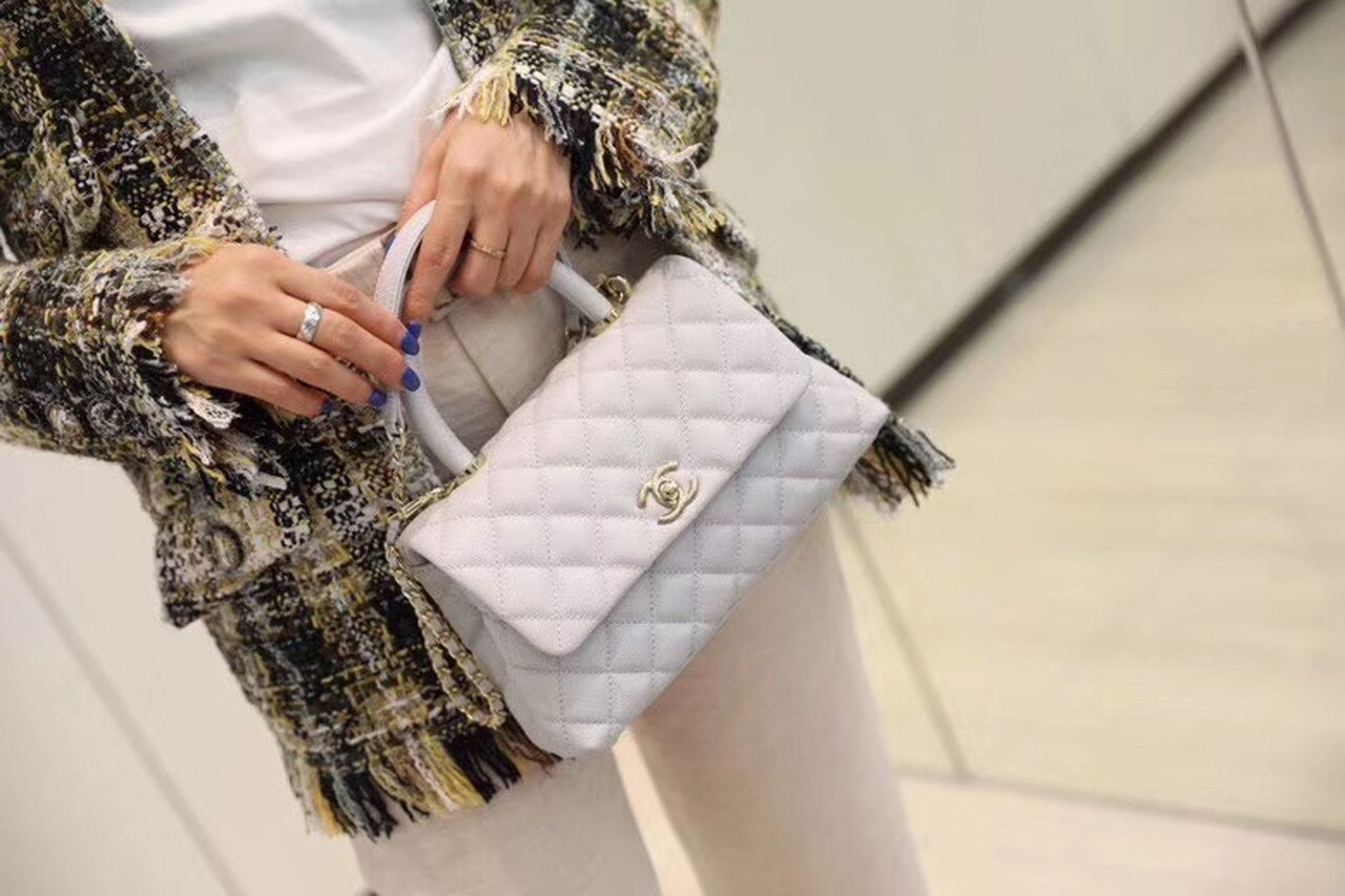 Chanel Coco With Top Handle Bag Gold Toned Hardware White For Women 9.4in/24cm