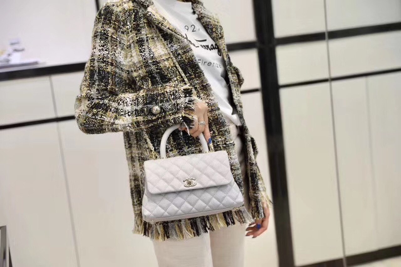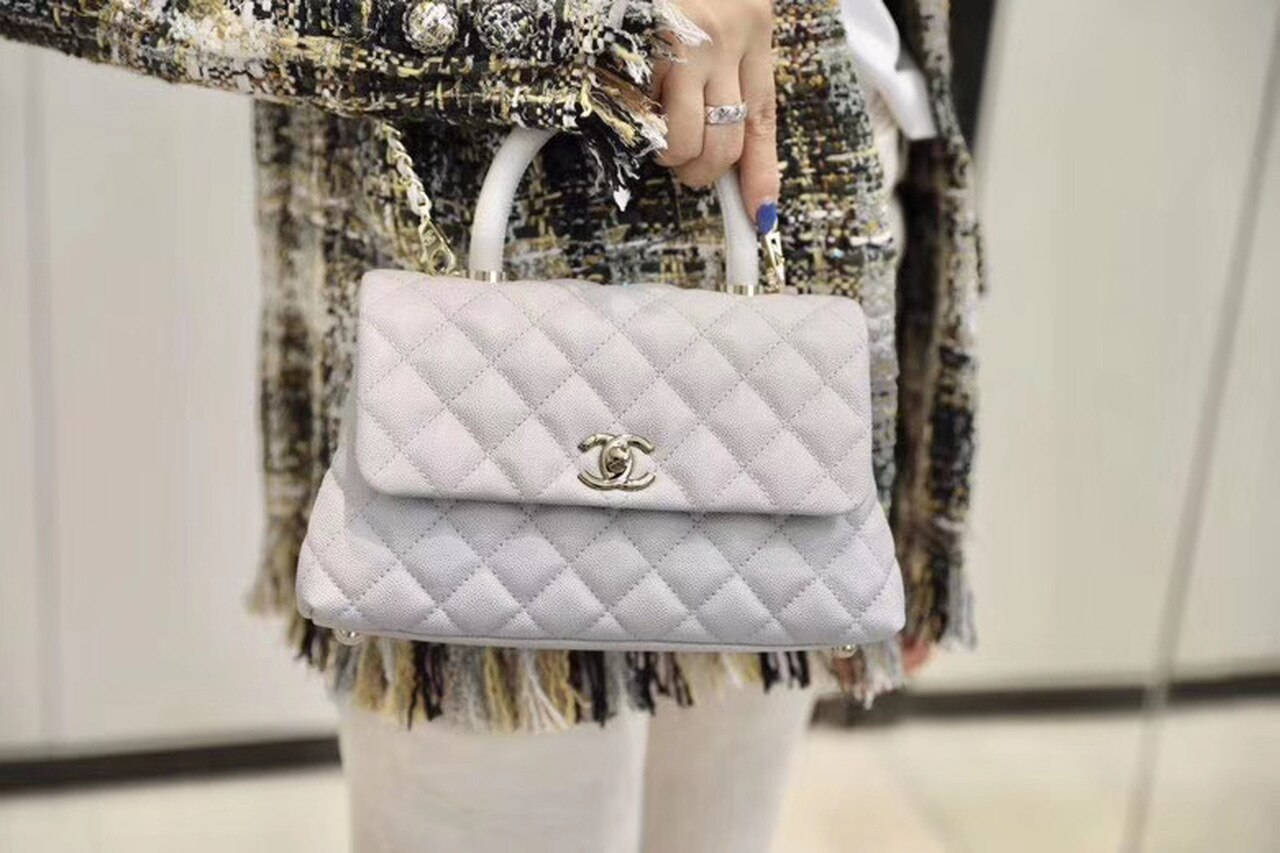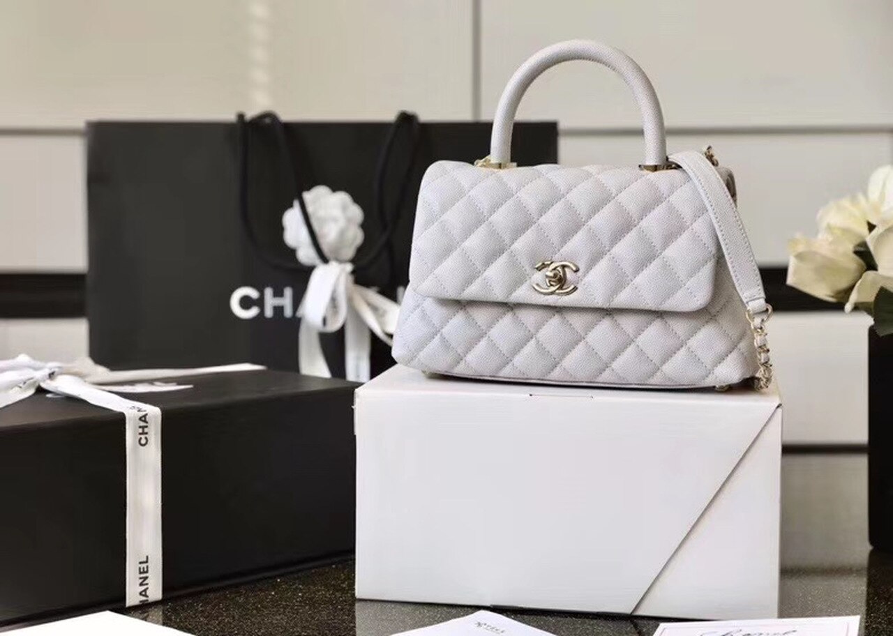Chanel Coco With Top Handle Bag Gold Toned Hardware White For Women 9.4in/24cm