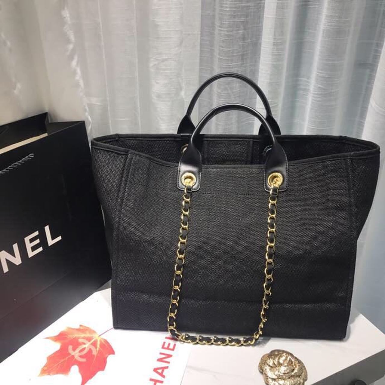 Chanel Deauville Tote Canvas Bag Black/Grey/Multi For Women 14.9in/38cm