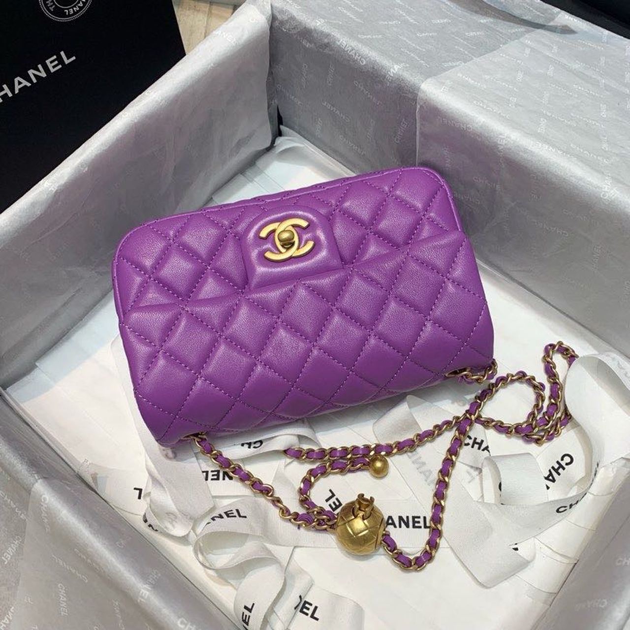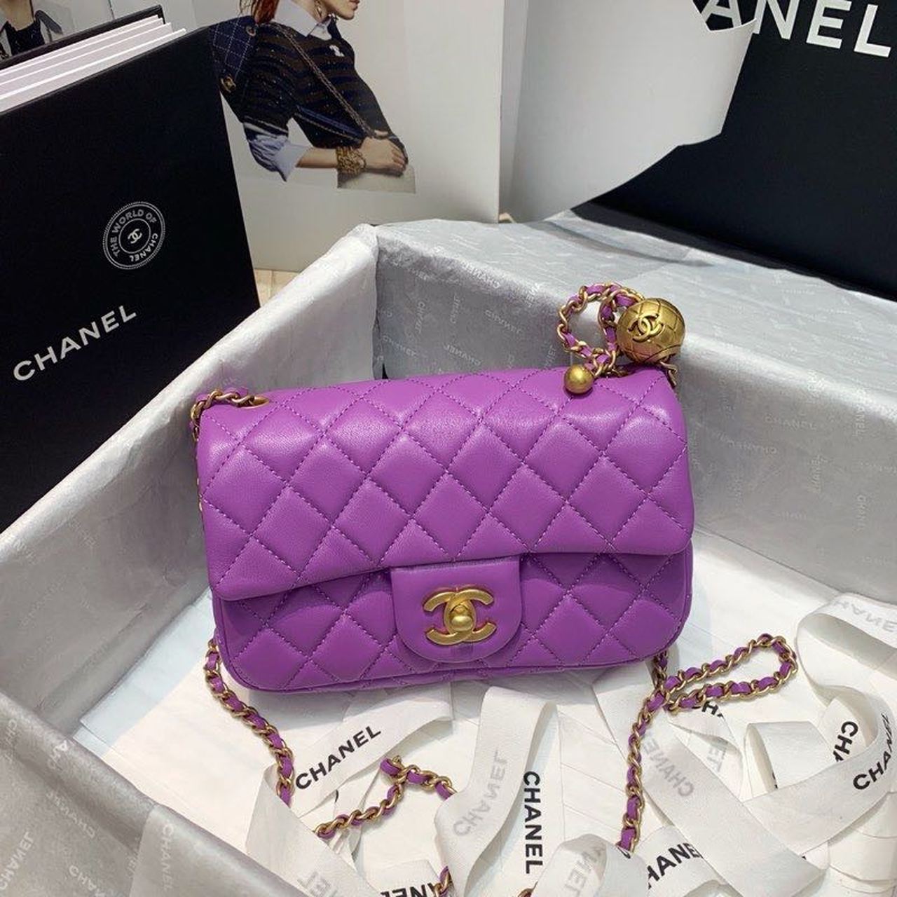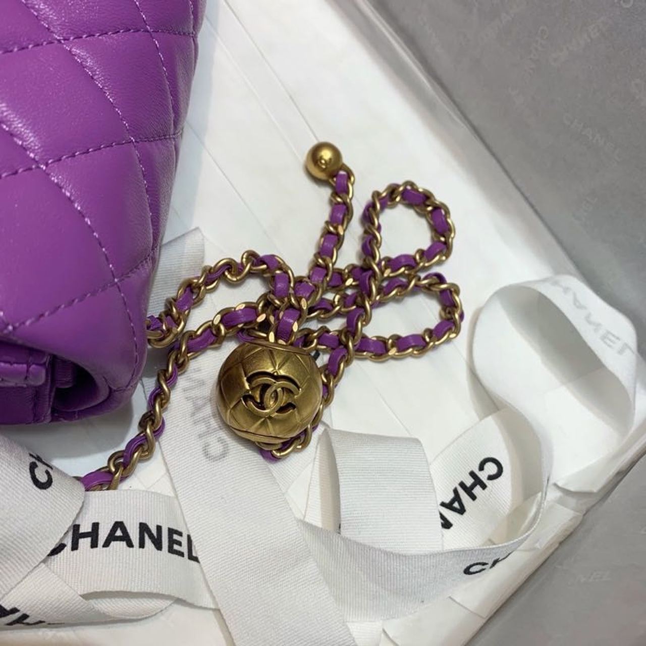 Chanel Flap Bag With Chanel Ball On Strap Purple For Women, Women’s Handbags, Shoulder And Crossbody Bags 7.8in/20cm AS1787