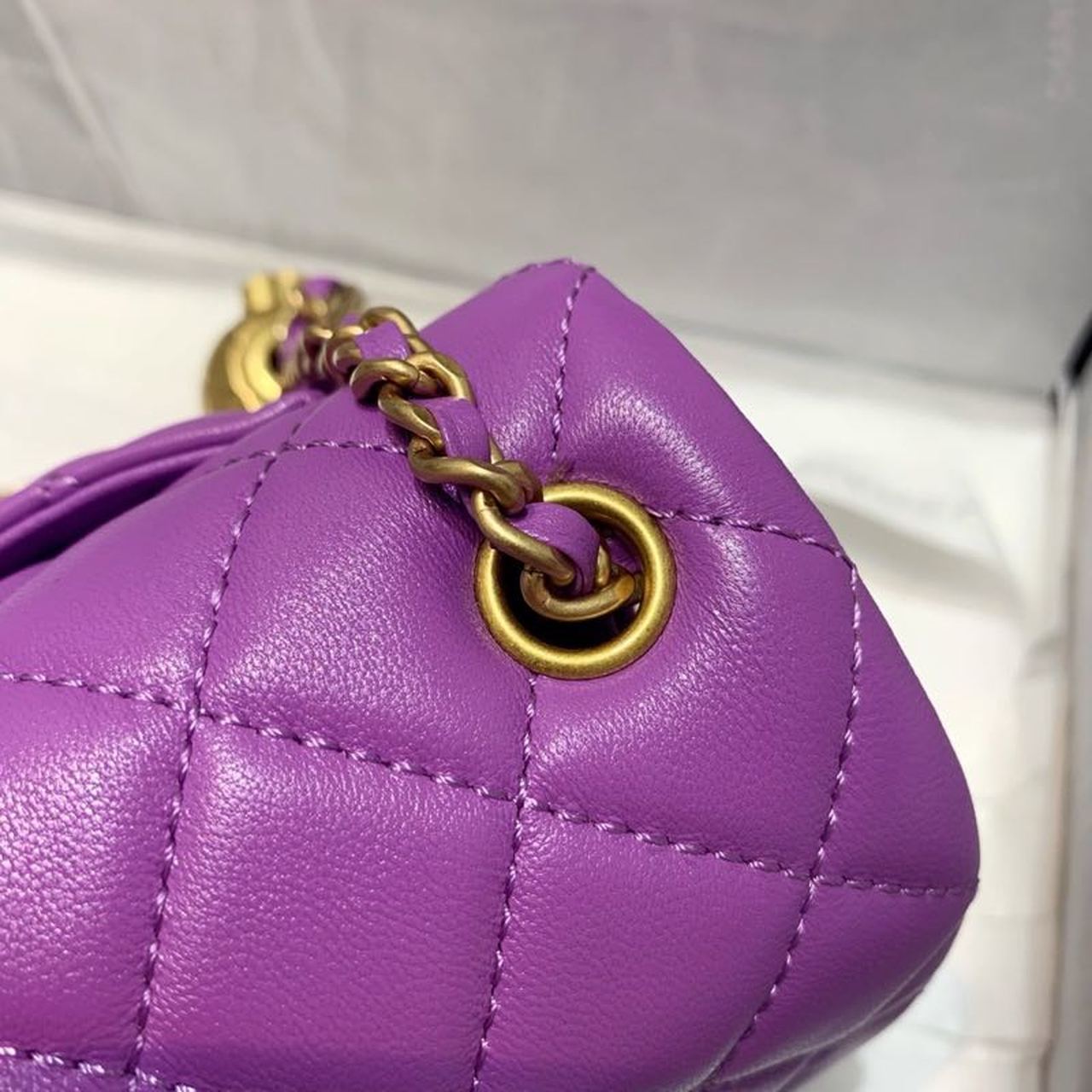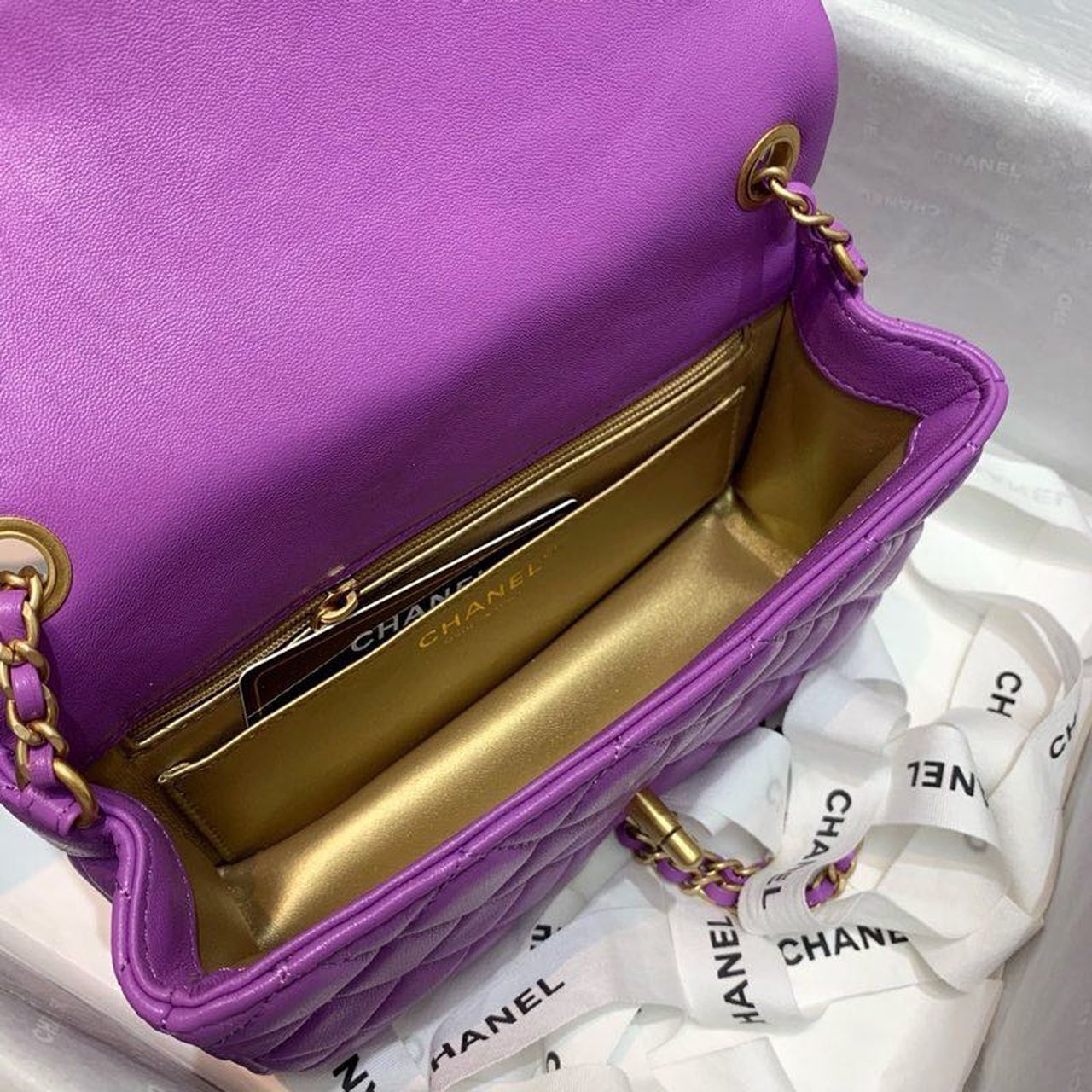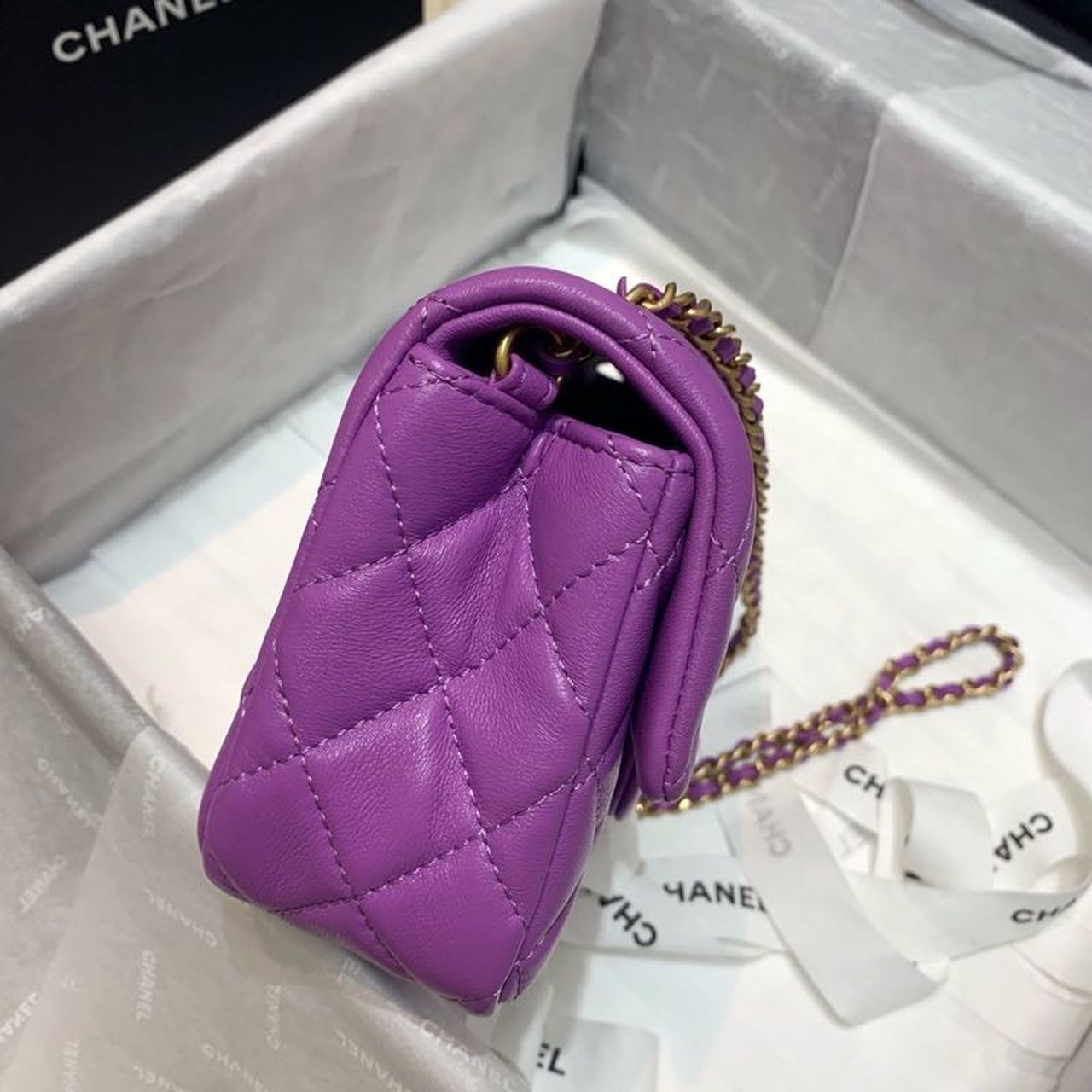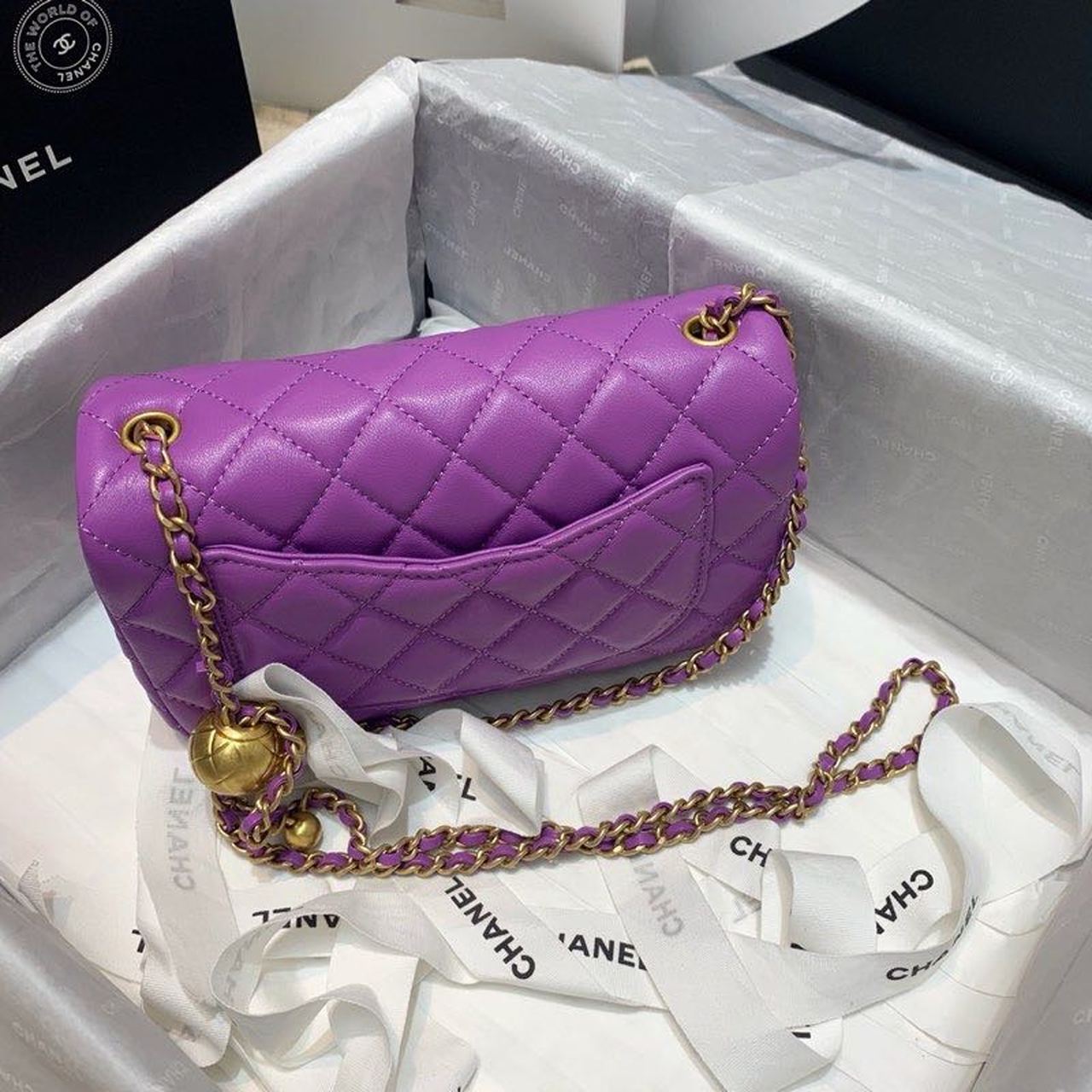 Chanel Flap Bag With Chanel Ball On Strap Purple For Women, Women’s Handbags, Shoulder And Crossbody Bags 7.8in/20cm AS1787