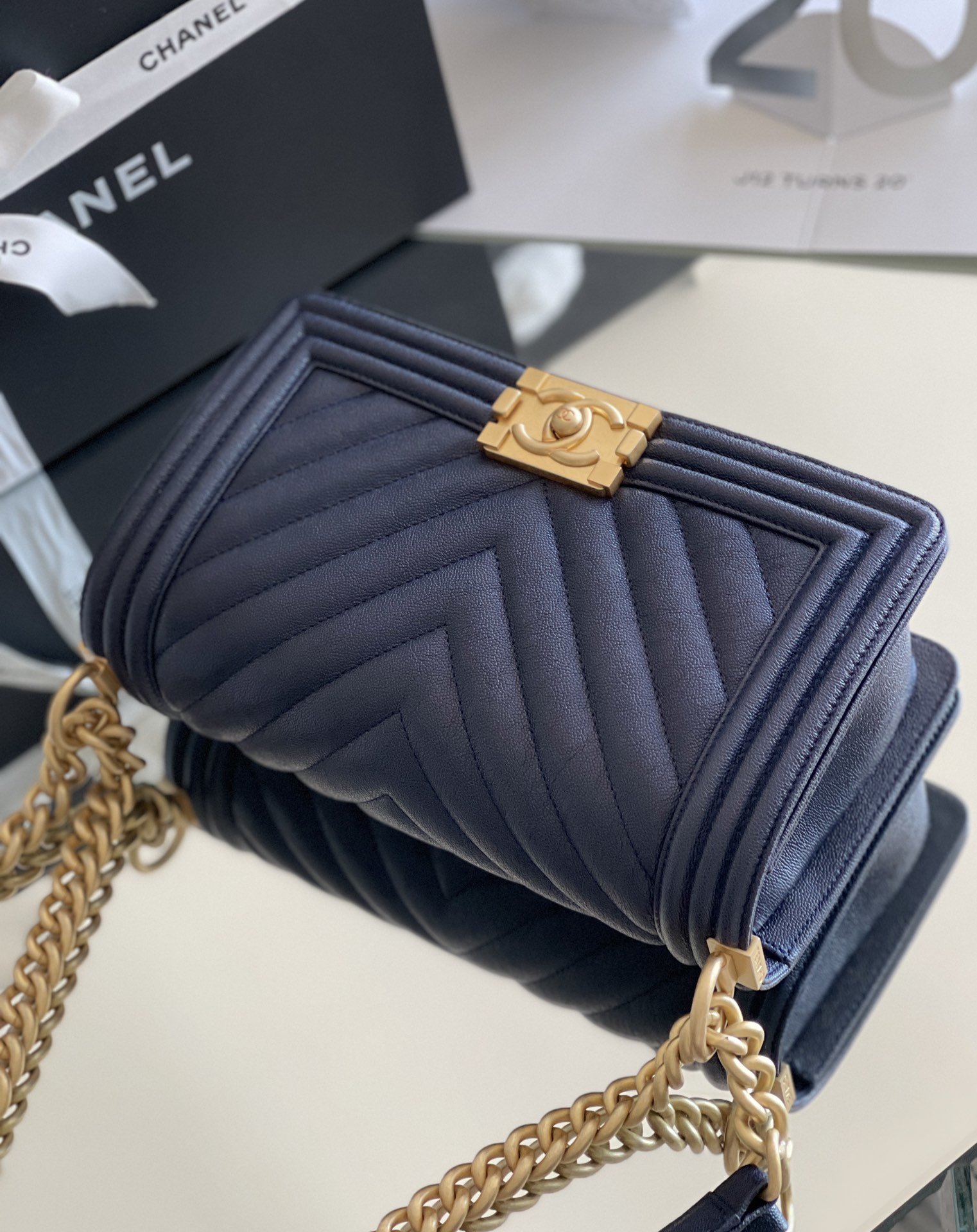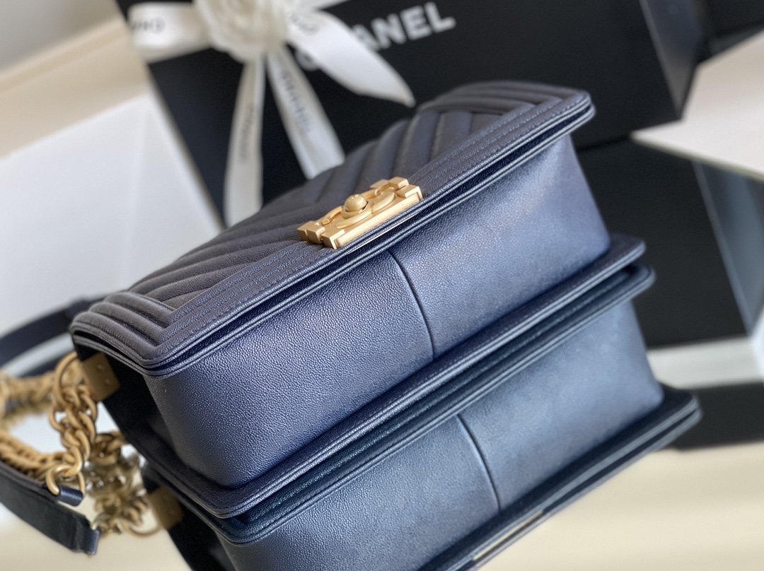Chanel Medium Boy Handbag Dark Blue For Women 9.8in/25cm A67086
