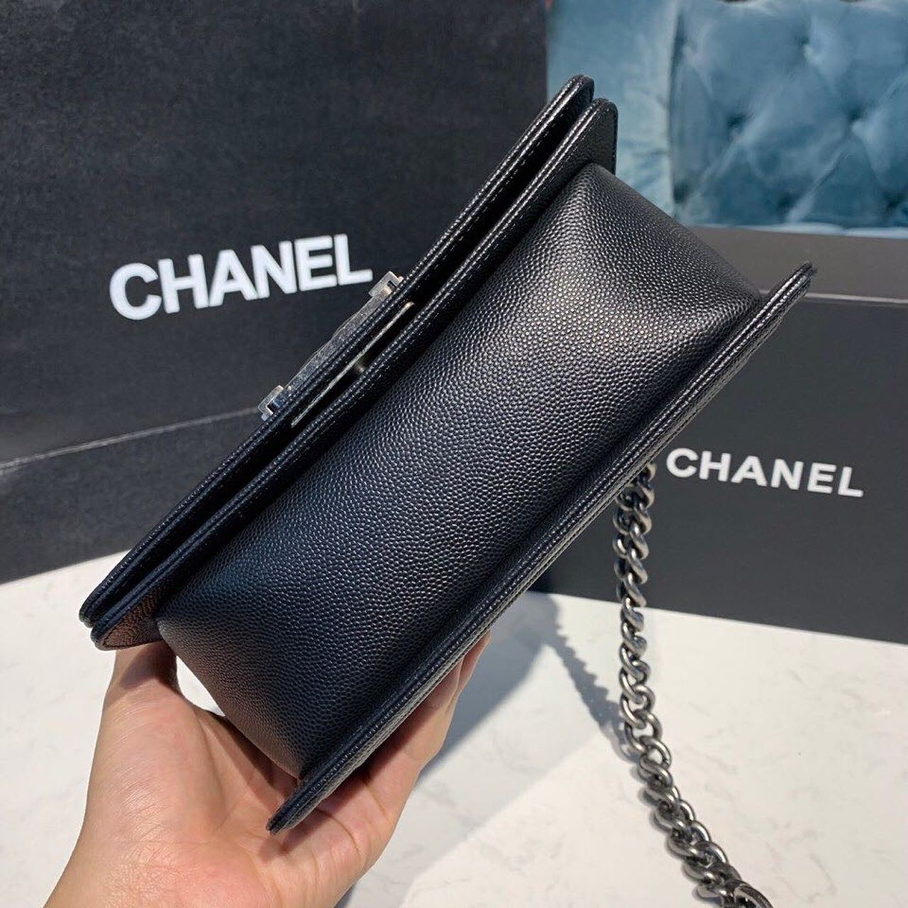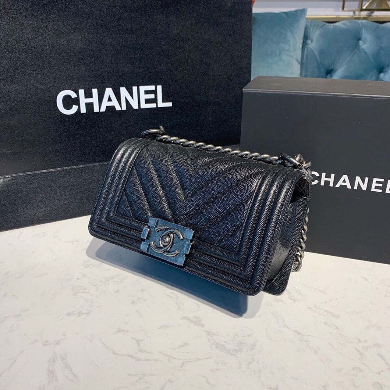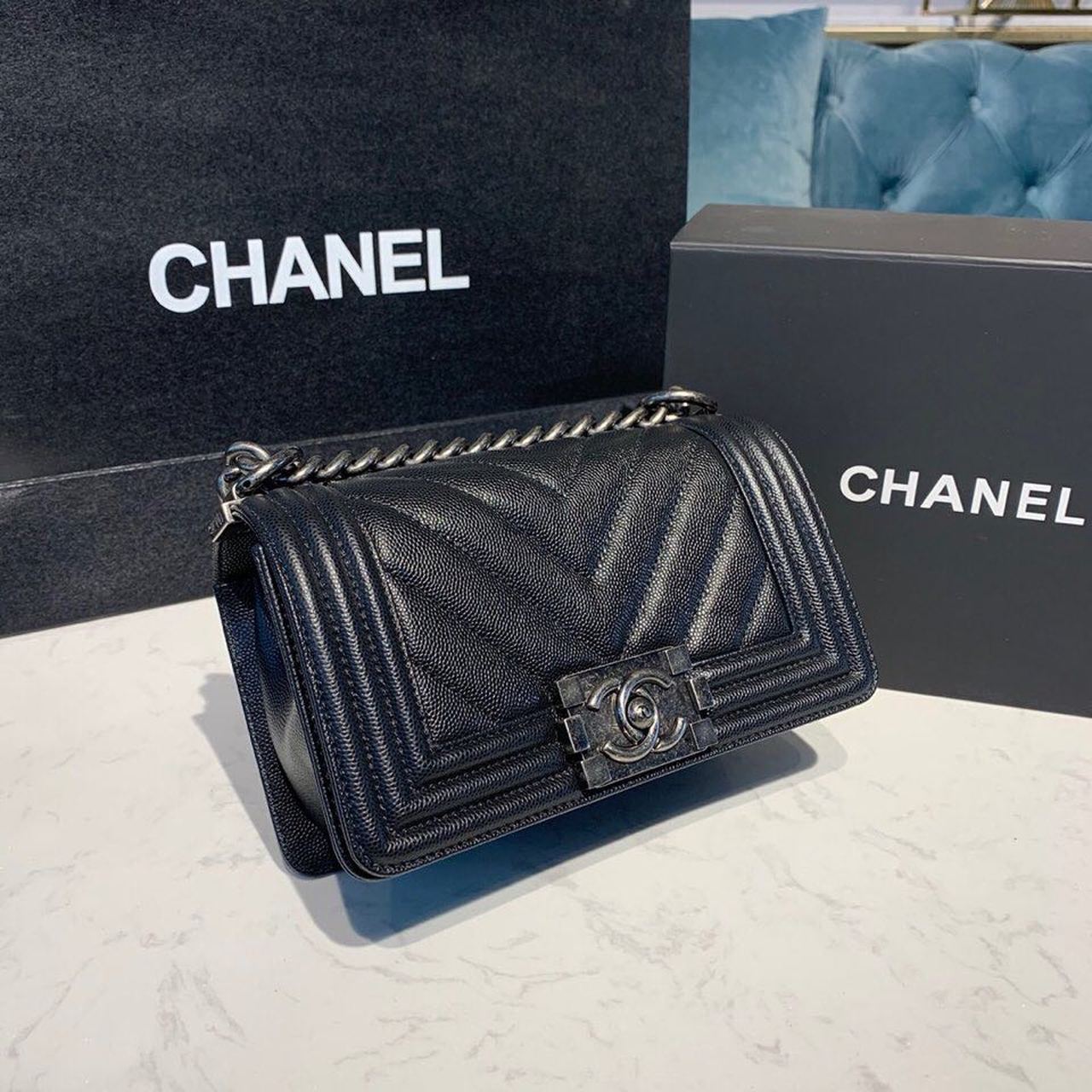 Chanel Medium Boy HandBag Silver Hardware Black For Women 7.8in/20cm