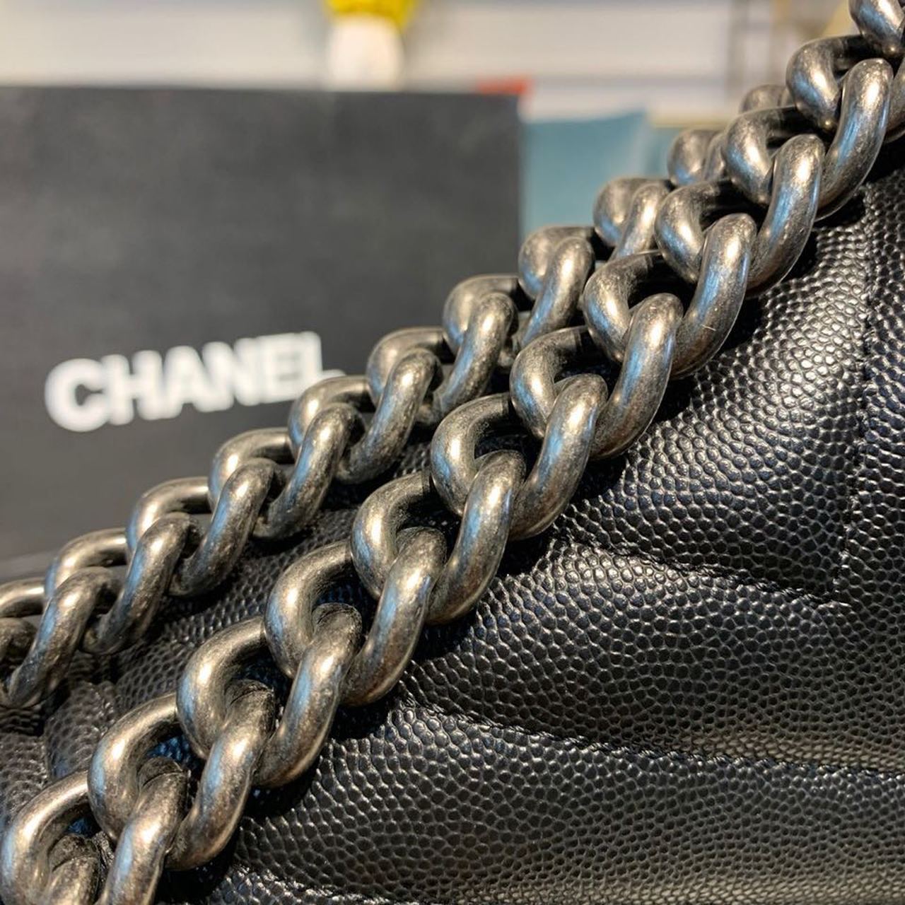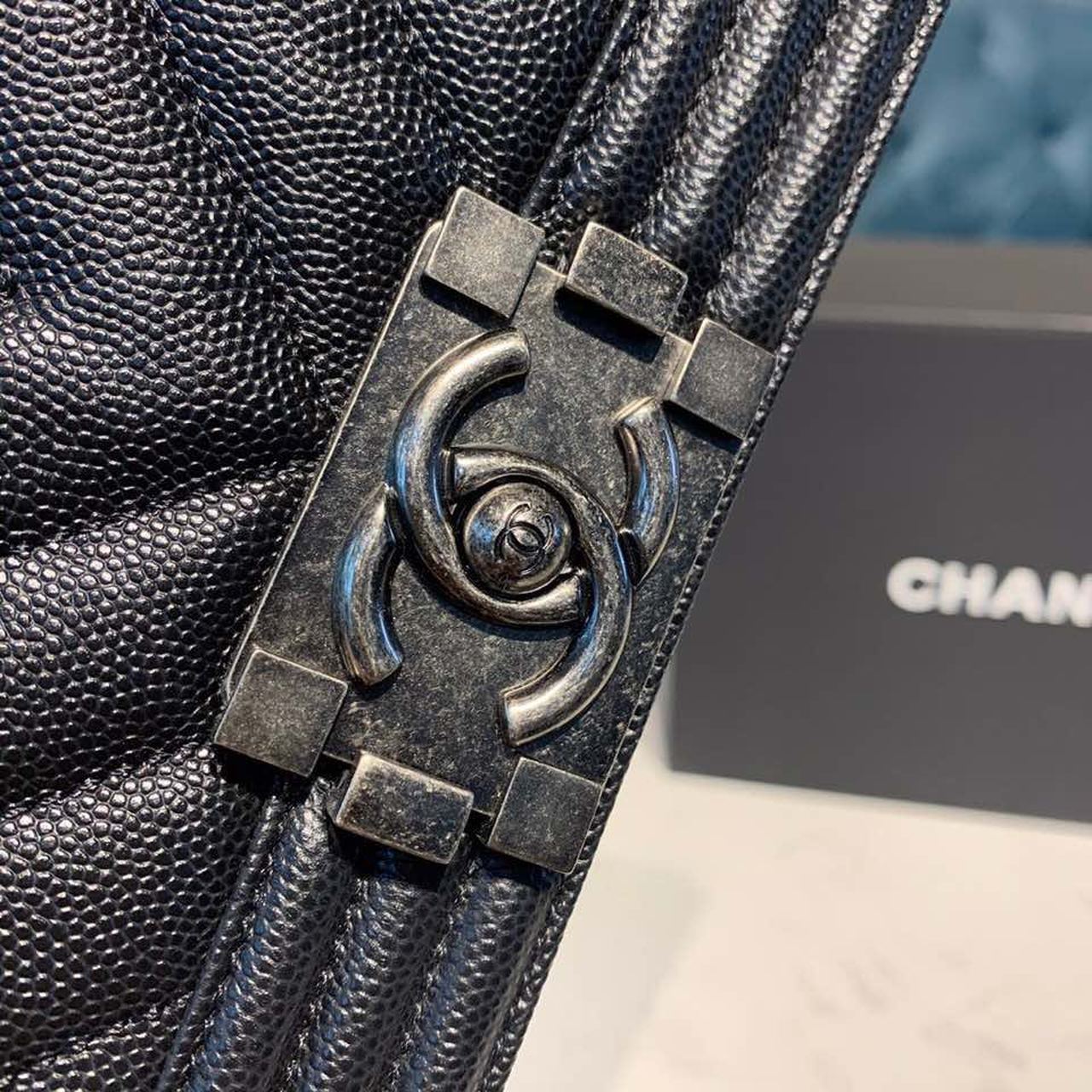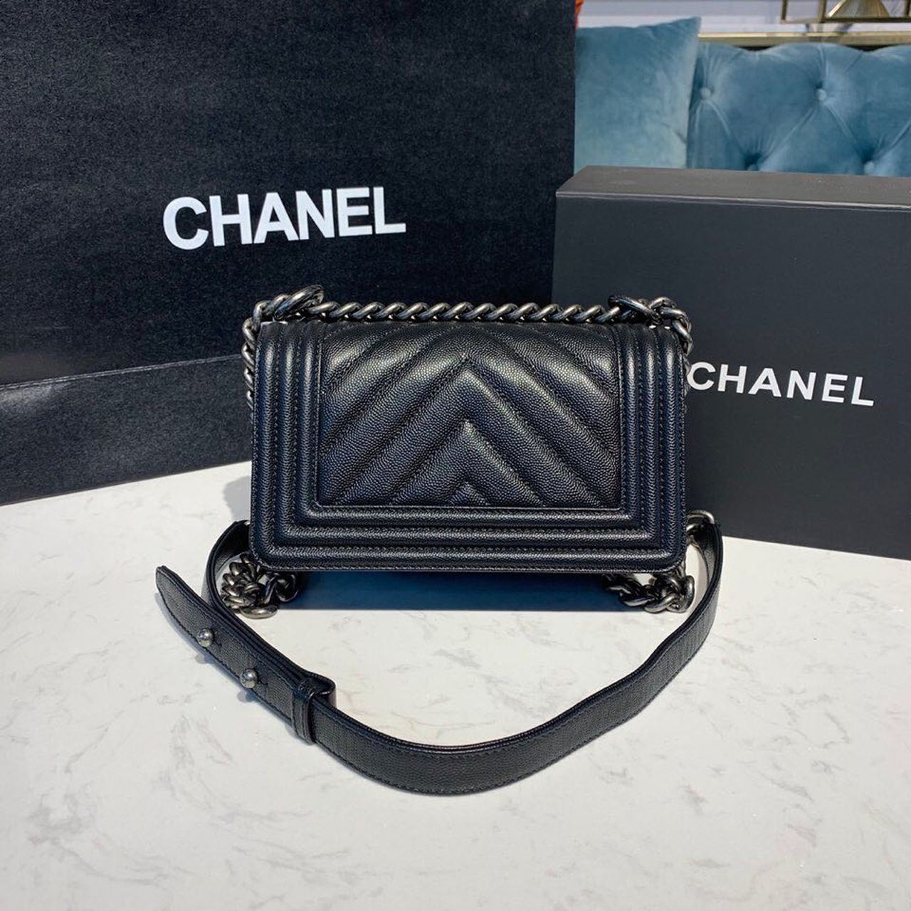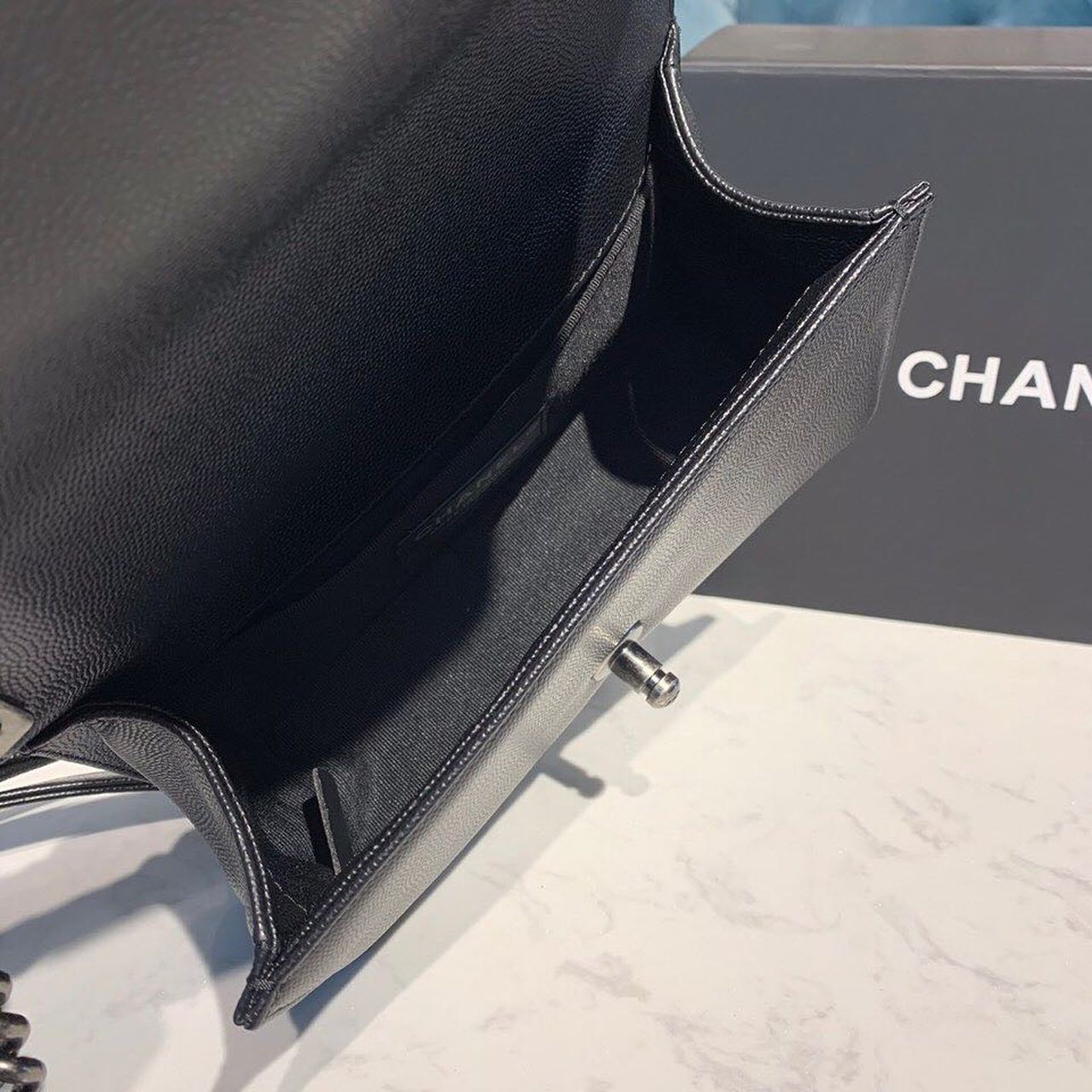 Chanel Medium Boy HandBag Silver Hardware Black For Women 7.8in/20cm