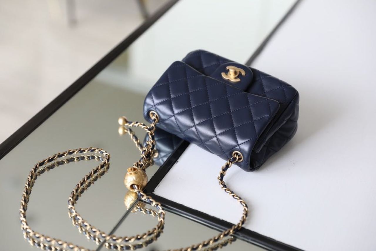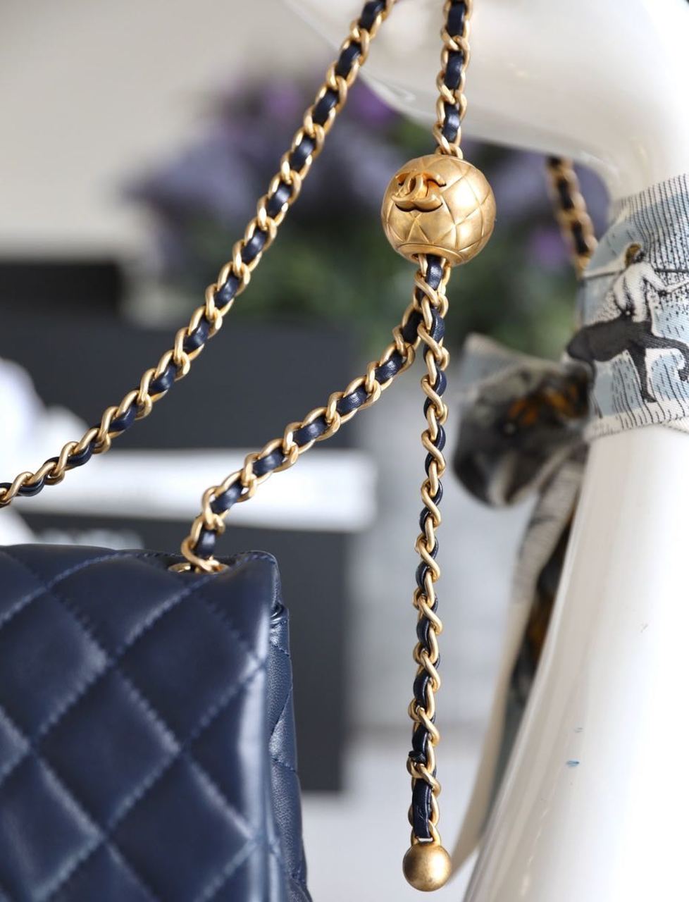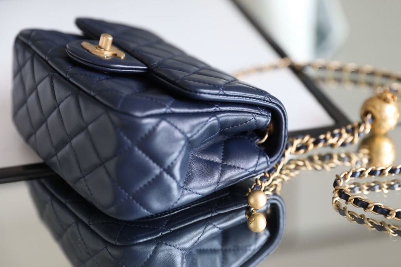 Chanel Mini Flap Bag With Chanel Ball On Strap Navy Blue For Women, Women’s Handbags, Shoulder And Crossbody Bags 6.7in/17cm AS1786