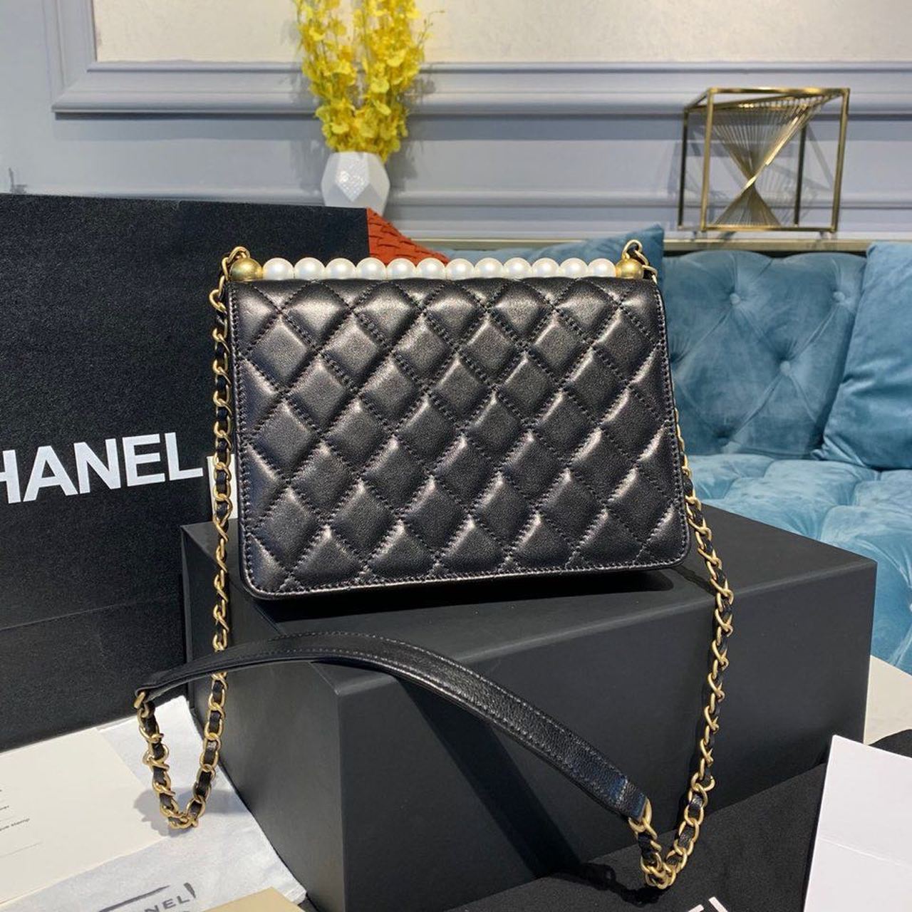 Chanel Short Pearl Handle Bag Gold Toned Hardware Black For Women, Women’s Handbags, Shoulder And Crossbody Bags 8.2in/21cm AS0585