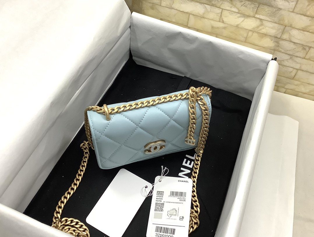 Chanel Spring And Summer 22C Turquoise For Women, Women’s Bags 6.1in/15.5cm