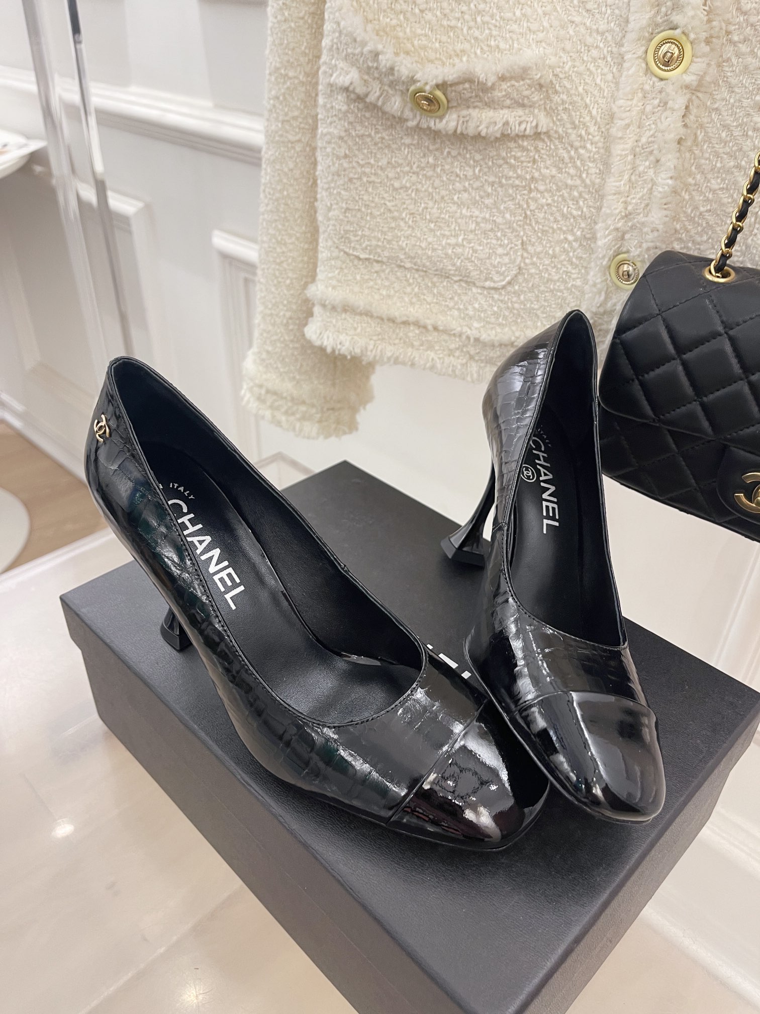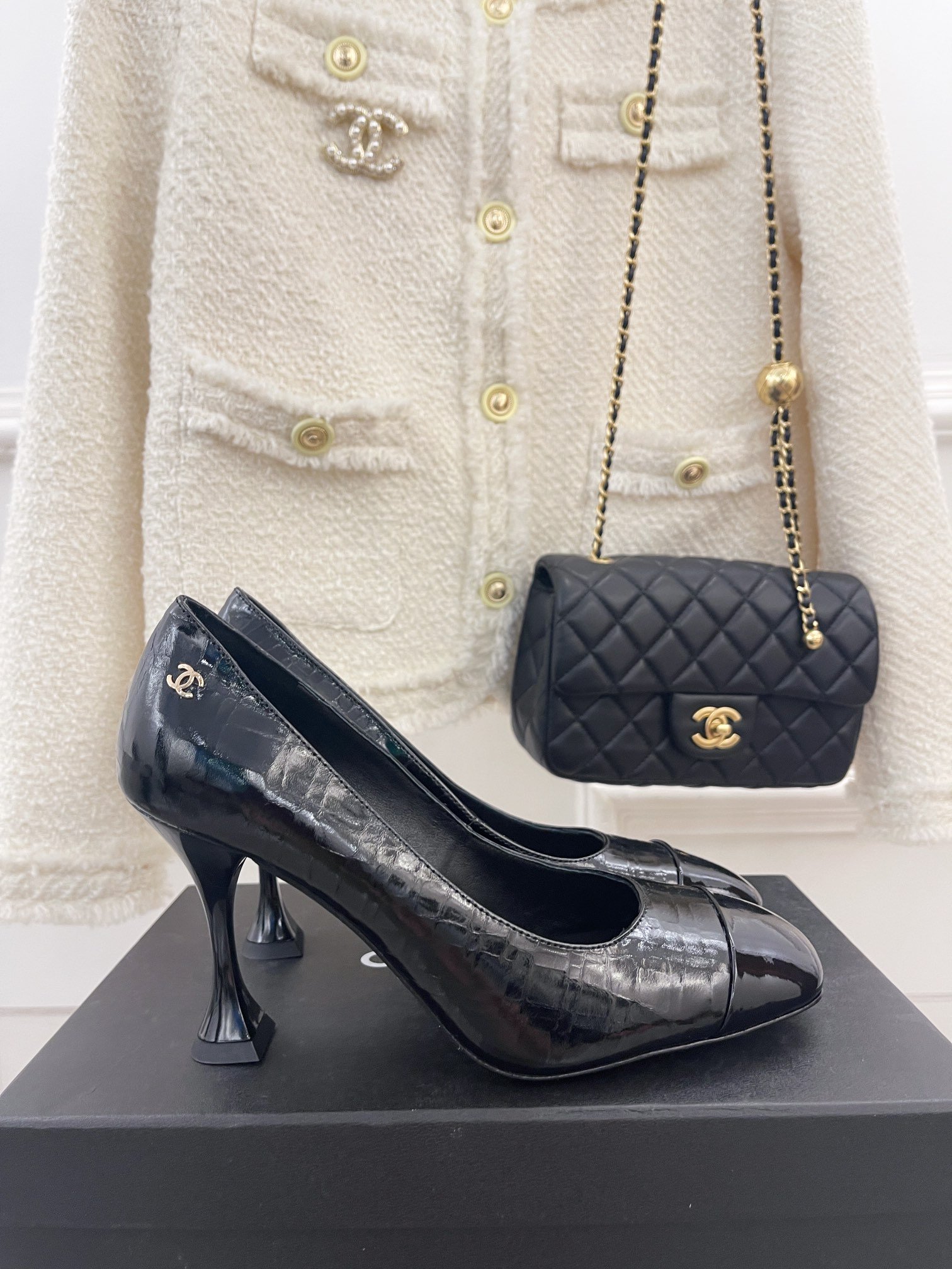 Chanel Pump & Grosgrain is CC’s high-heeled shoe. The shoe has the main color mixed with black at the toe. The main material of the shoe model is cleverly combined with the material to create a unique and novelty.