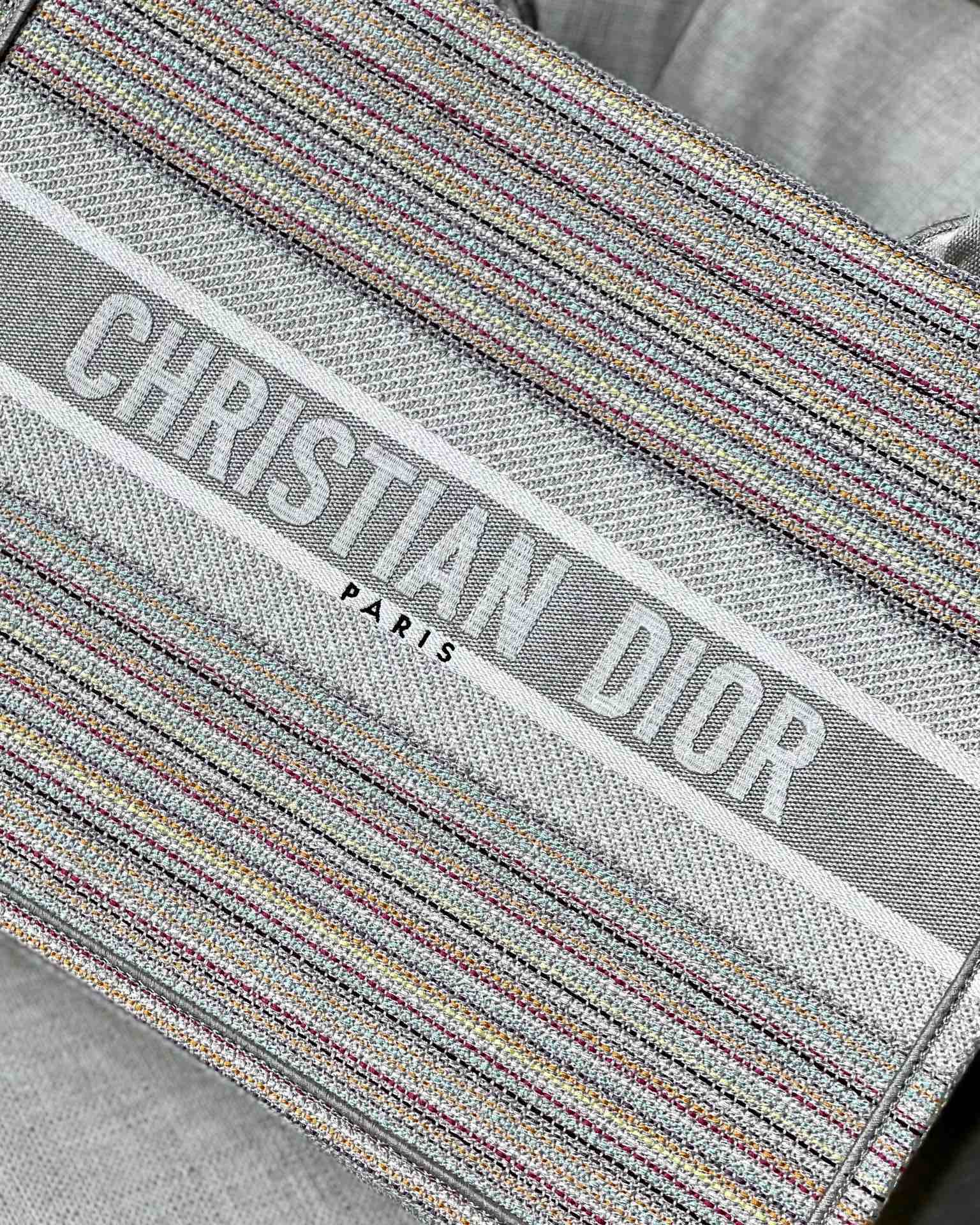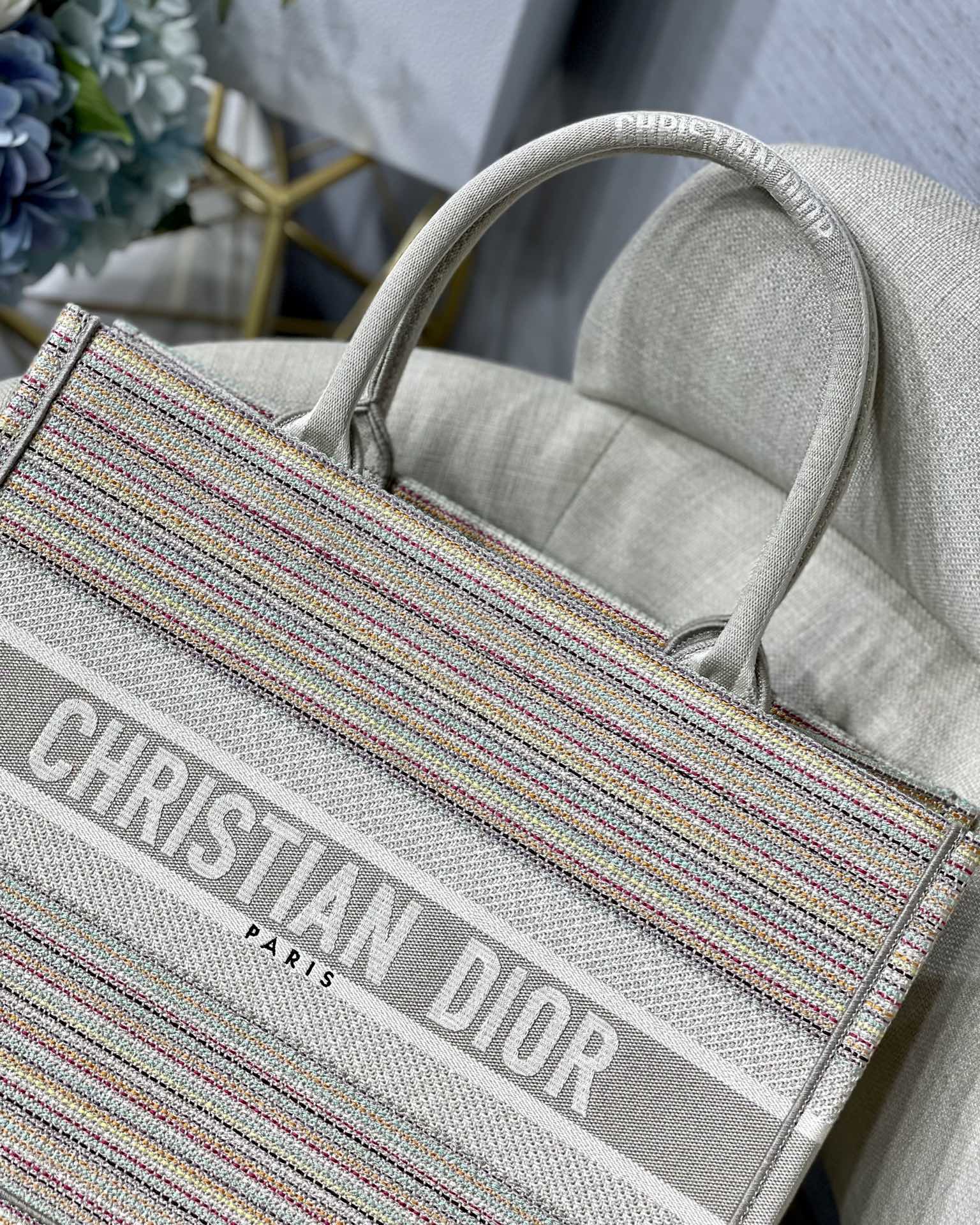 Christian Dior Large Dior Book Tote Bag Canvas Stripes Embroidery For Women 42cm/16.5in CD