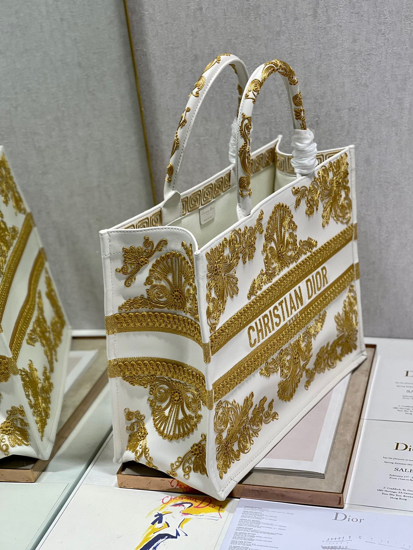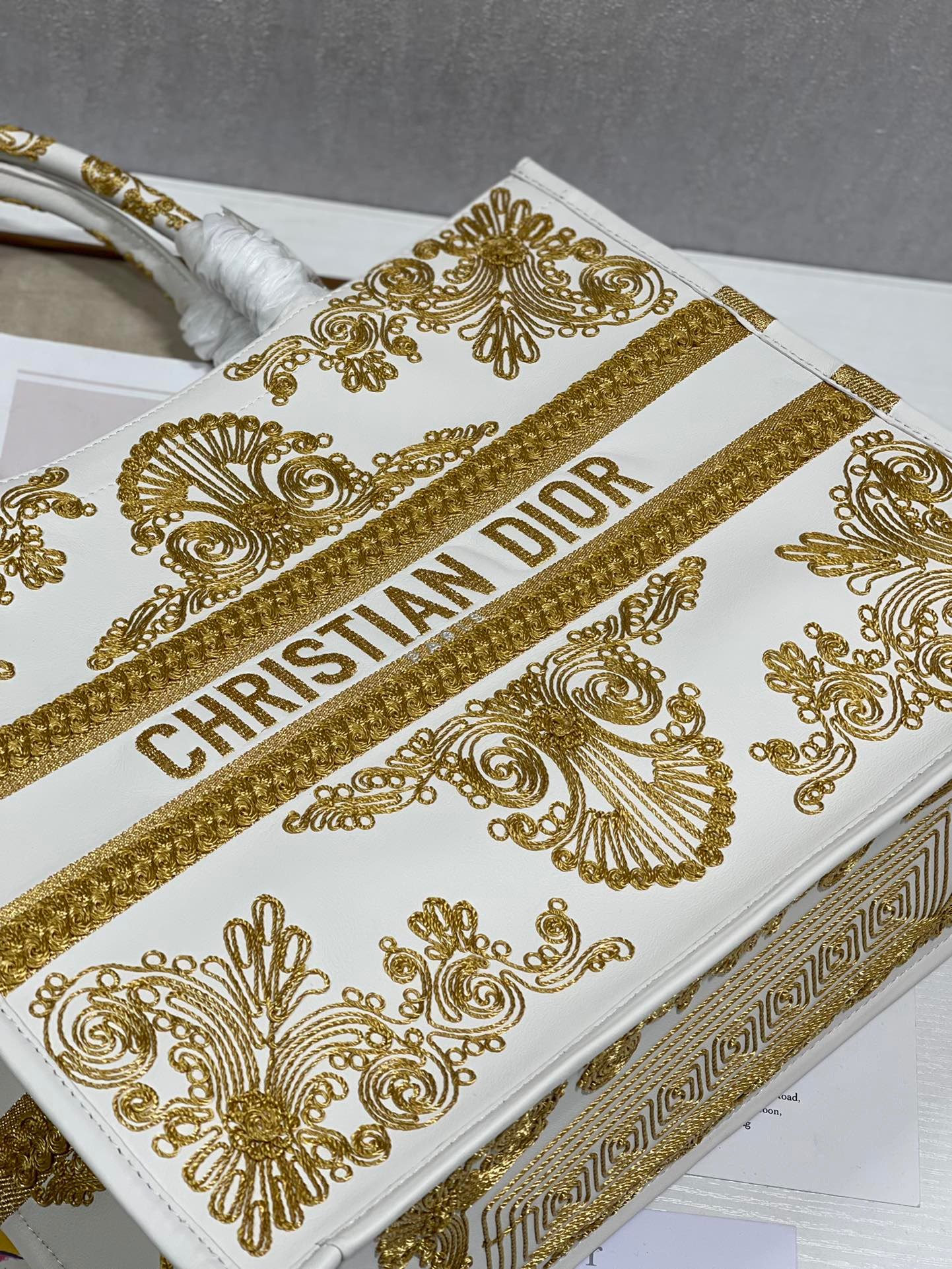 Christian Dior Large Dior Book Tote Gold And White, For Women, Women’s Handbags 16.5in/42cm CD