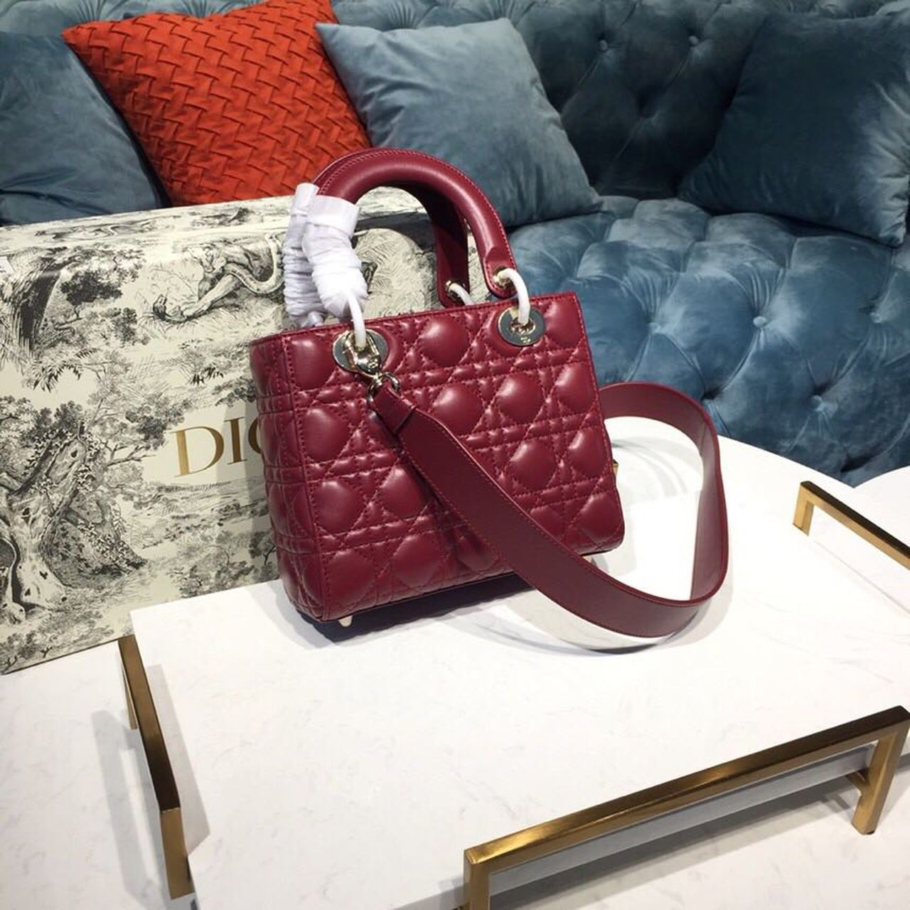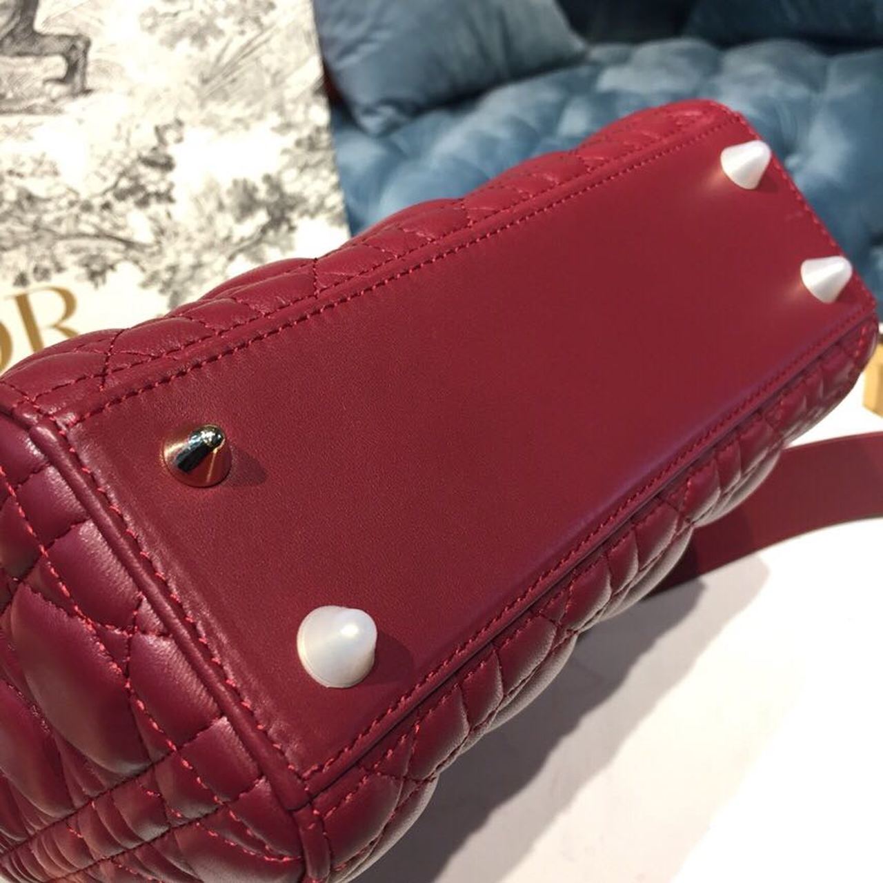 Christian Dior Small Lady Dior My ABCDior Bag Cherry Red Cannage For Women 20cm/8in CD