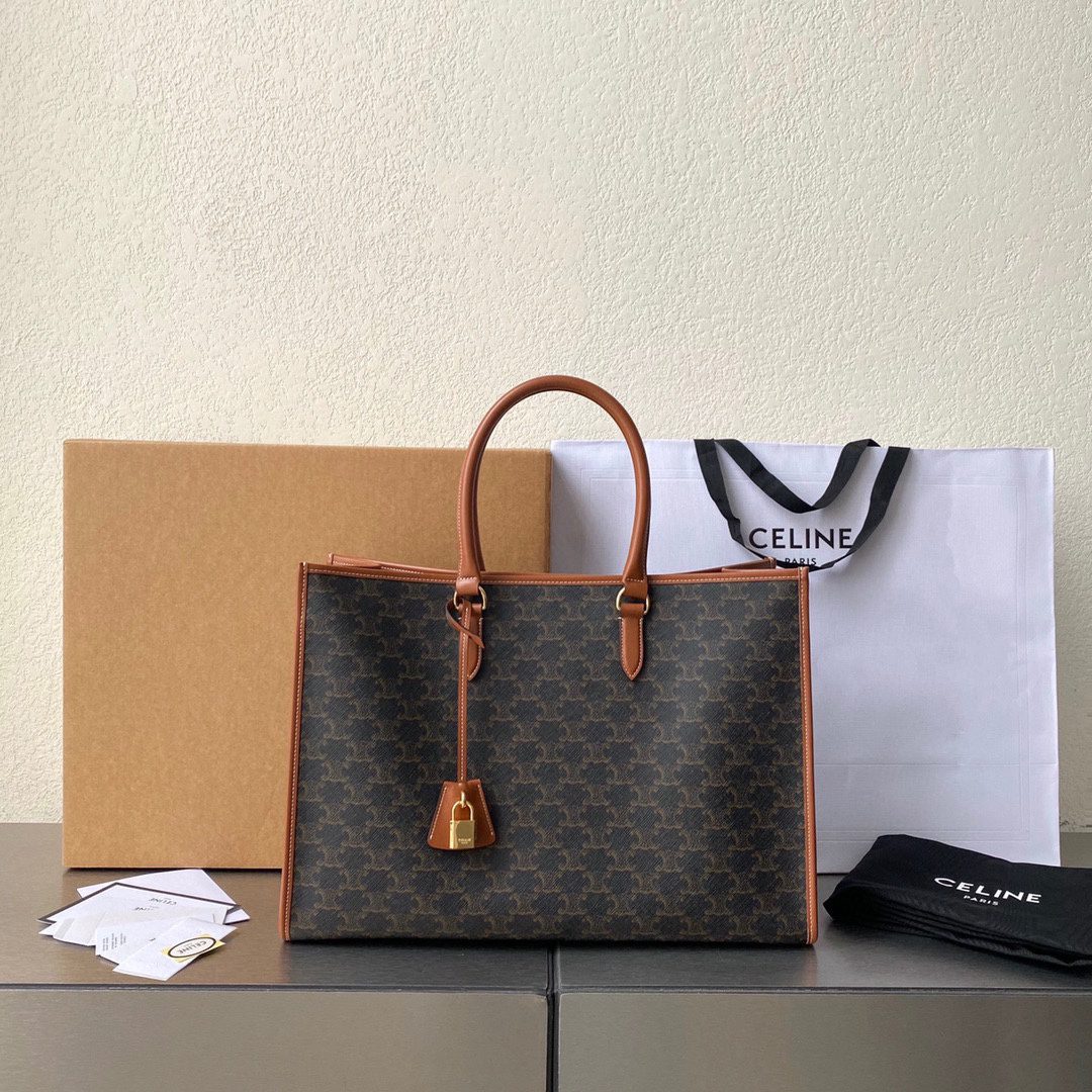 Celine Horizontal Cabas In Triomphe Canvas Tan For Women 17in/43cm 197912BZJ.04LU