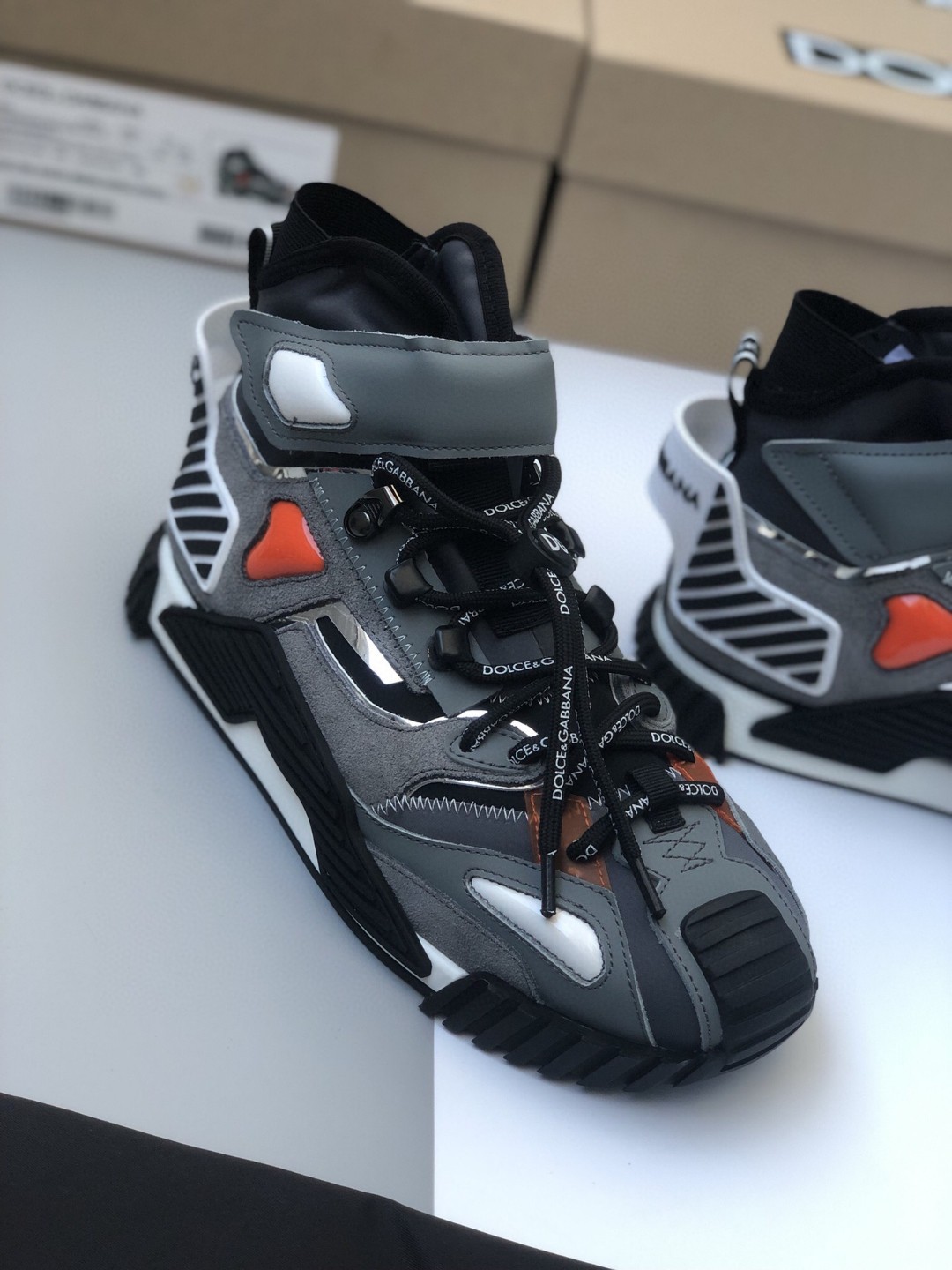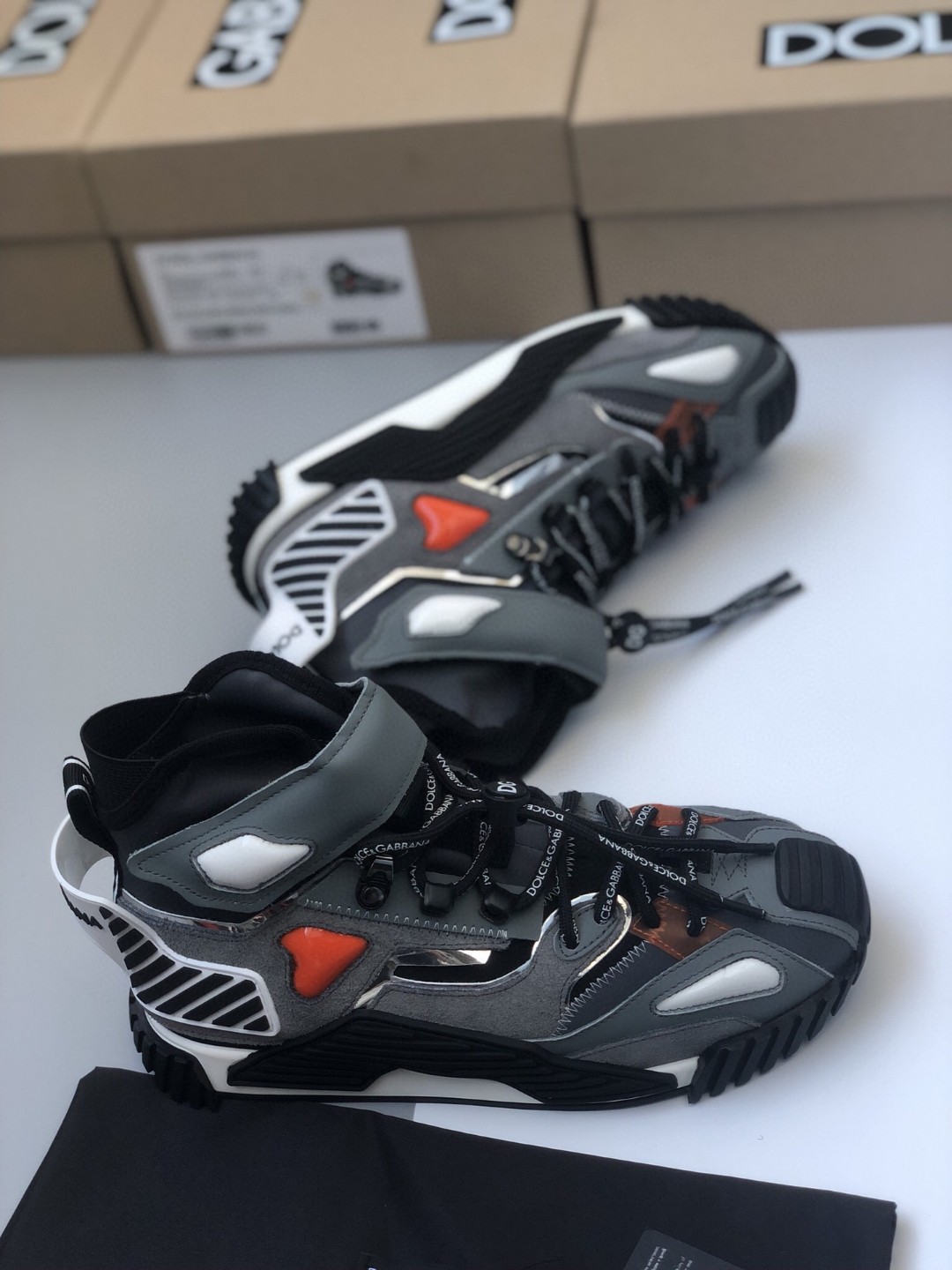 • Dolce & Gabbana 2.Zero Custom High-Top Sneakers With Contrasting Details Grey For Men DG Shoes