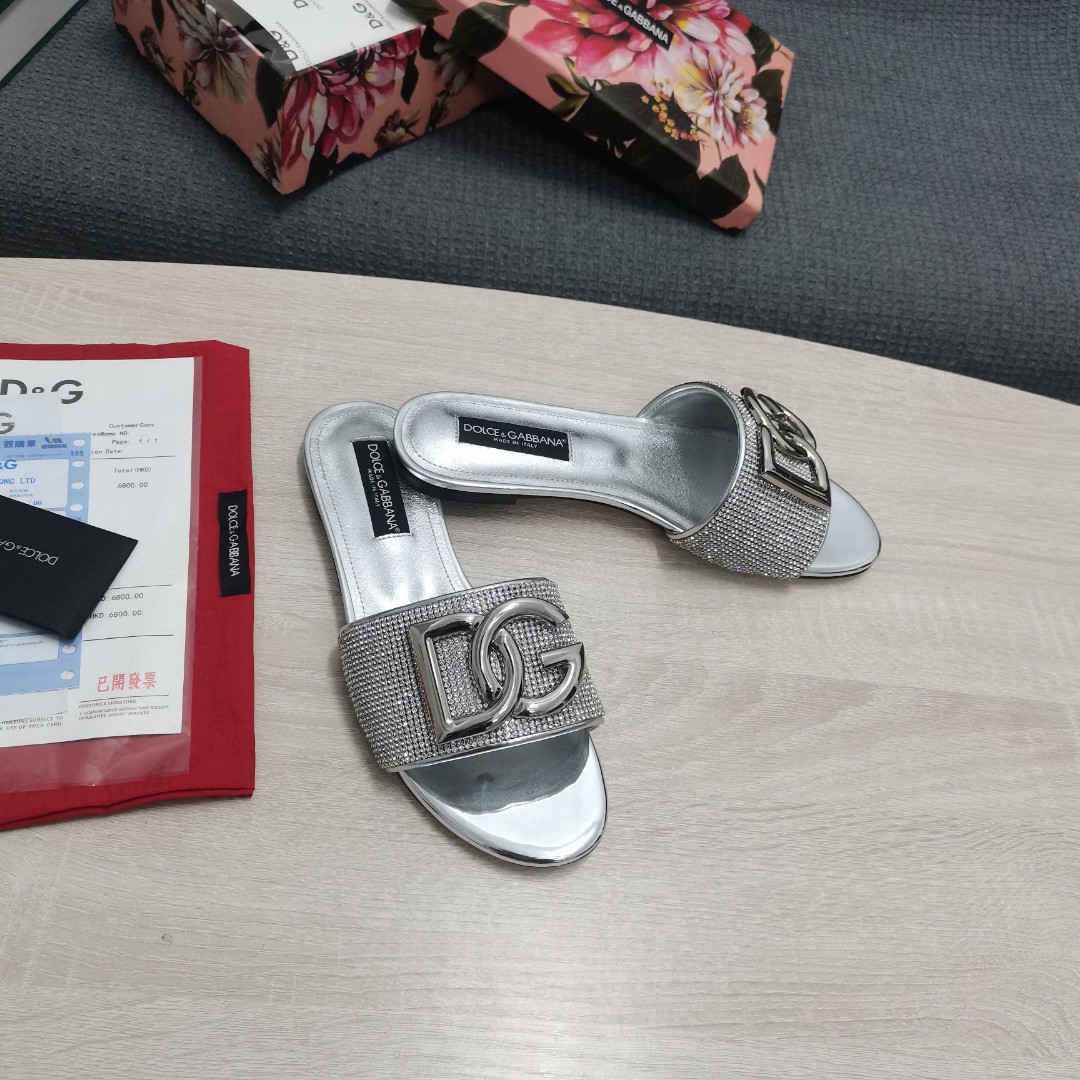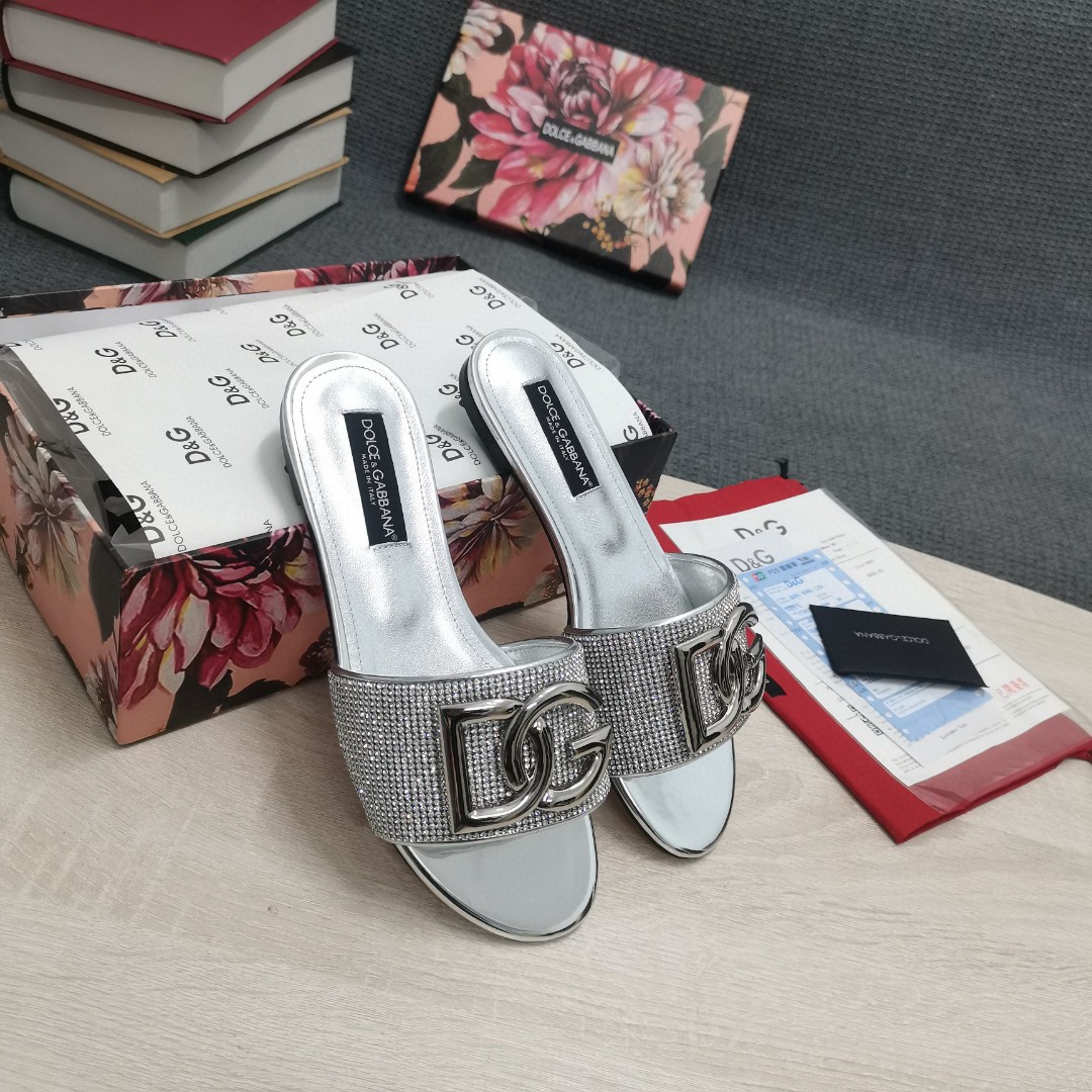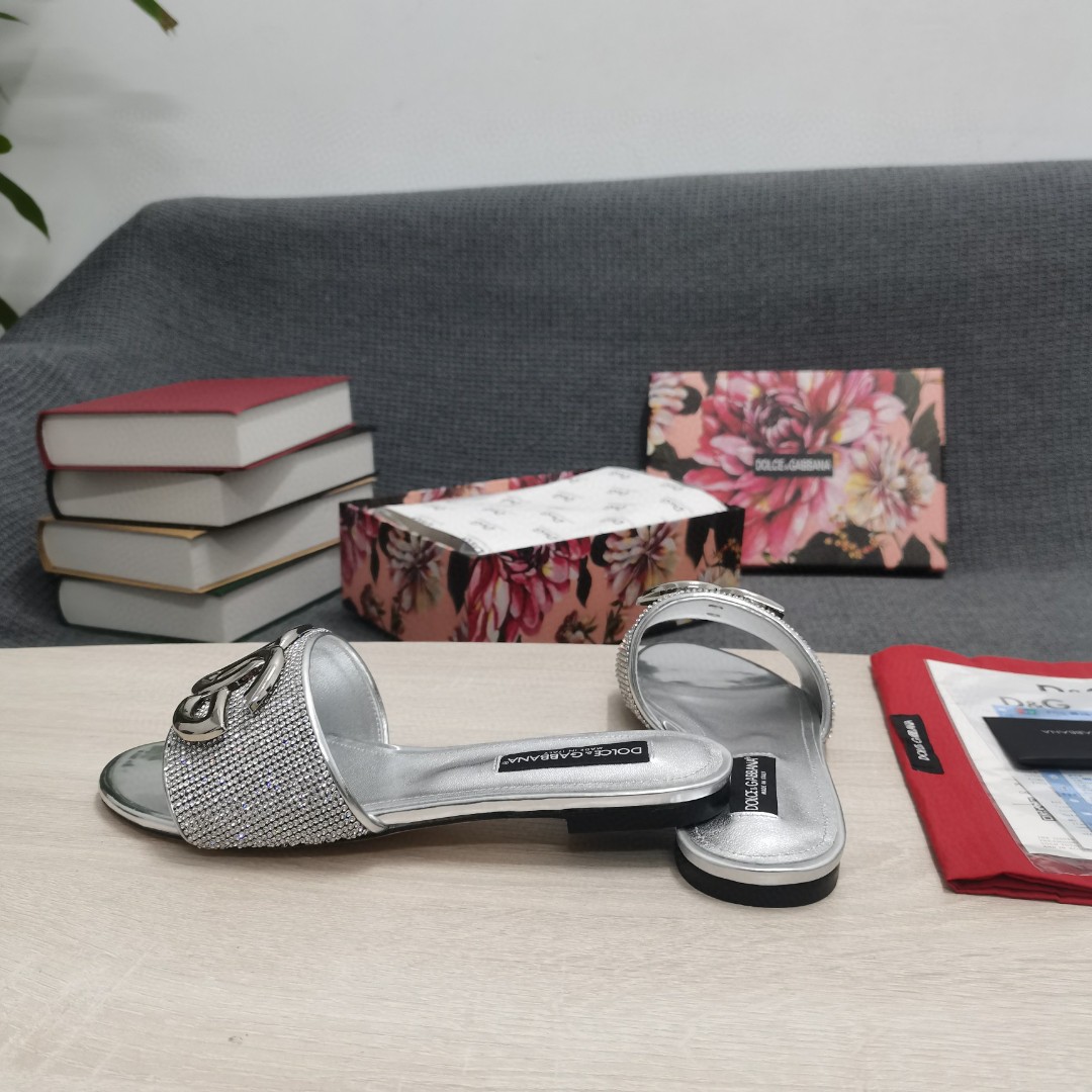 Dolce & Gabbana Crystal Mesh Sliders With DG Logo Silver For Women DG Shoes CQ0520AD7218D708