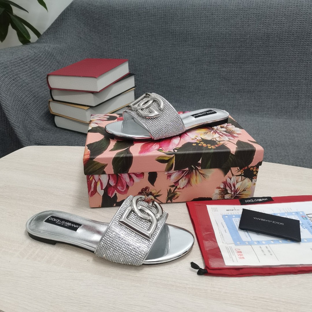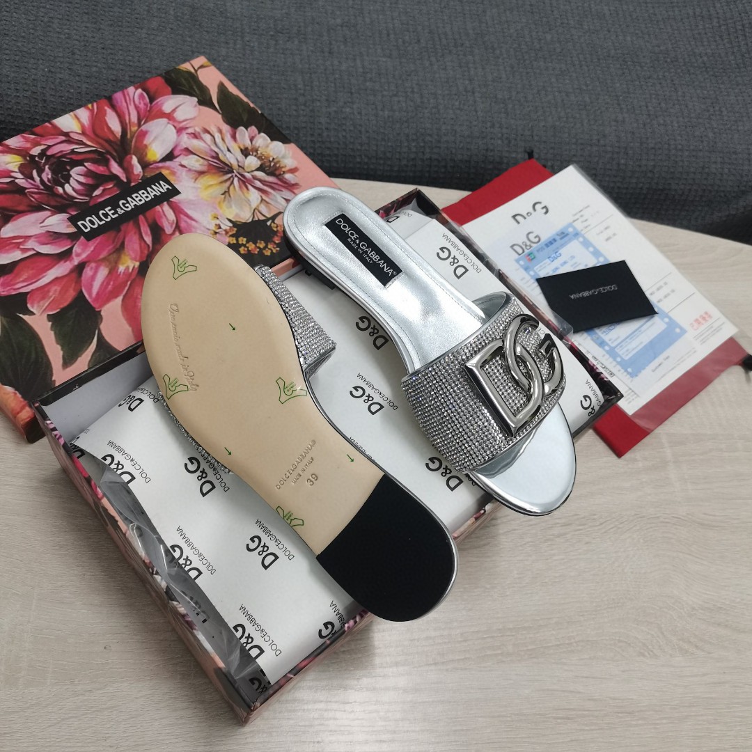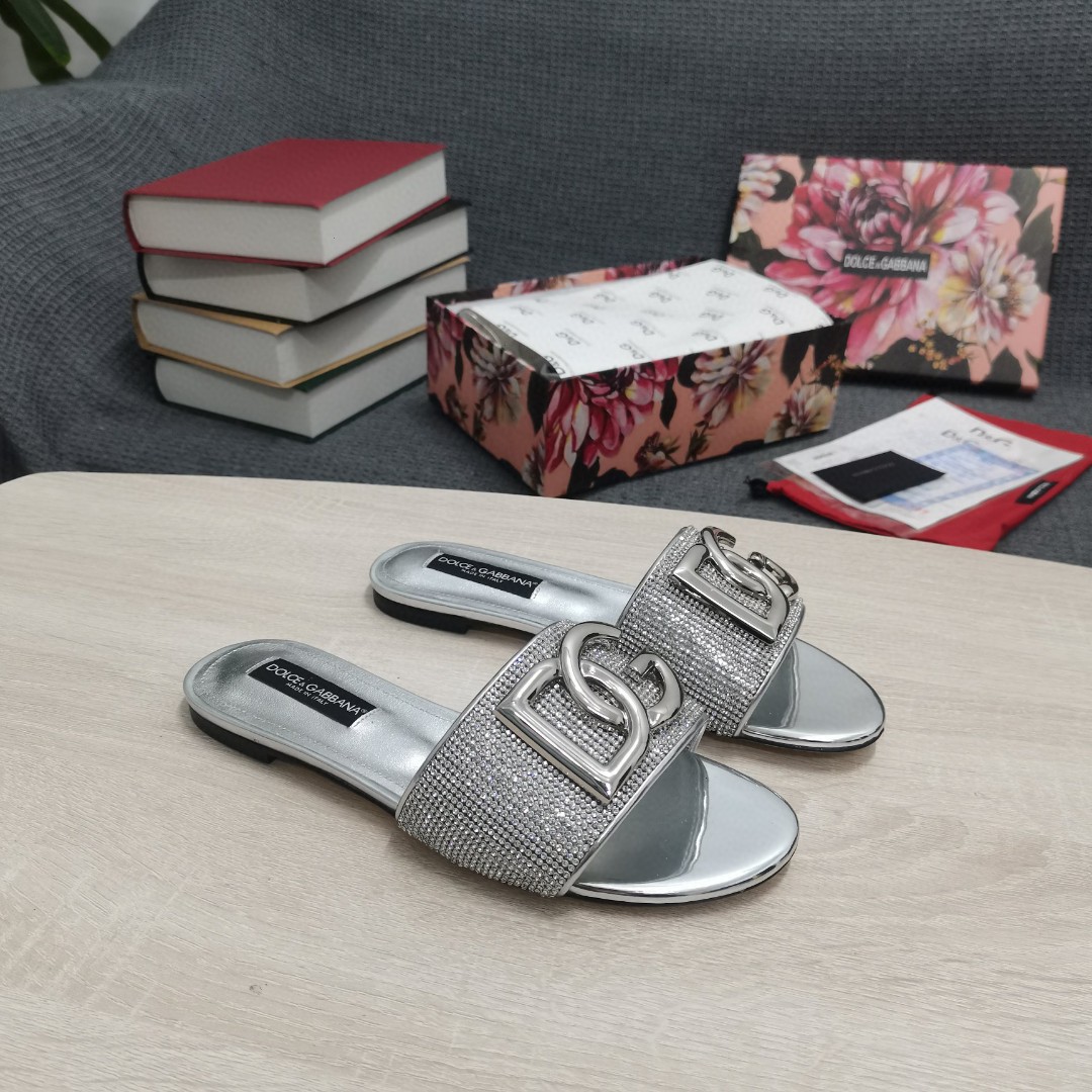 Dolce & Gabbana Crystal Mesh Sliders With DG Logo Silver For Women DG Shoes CQ0520AD7218D708