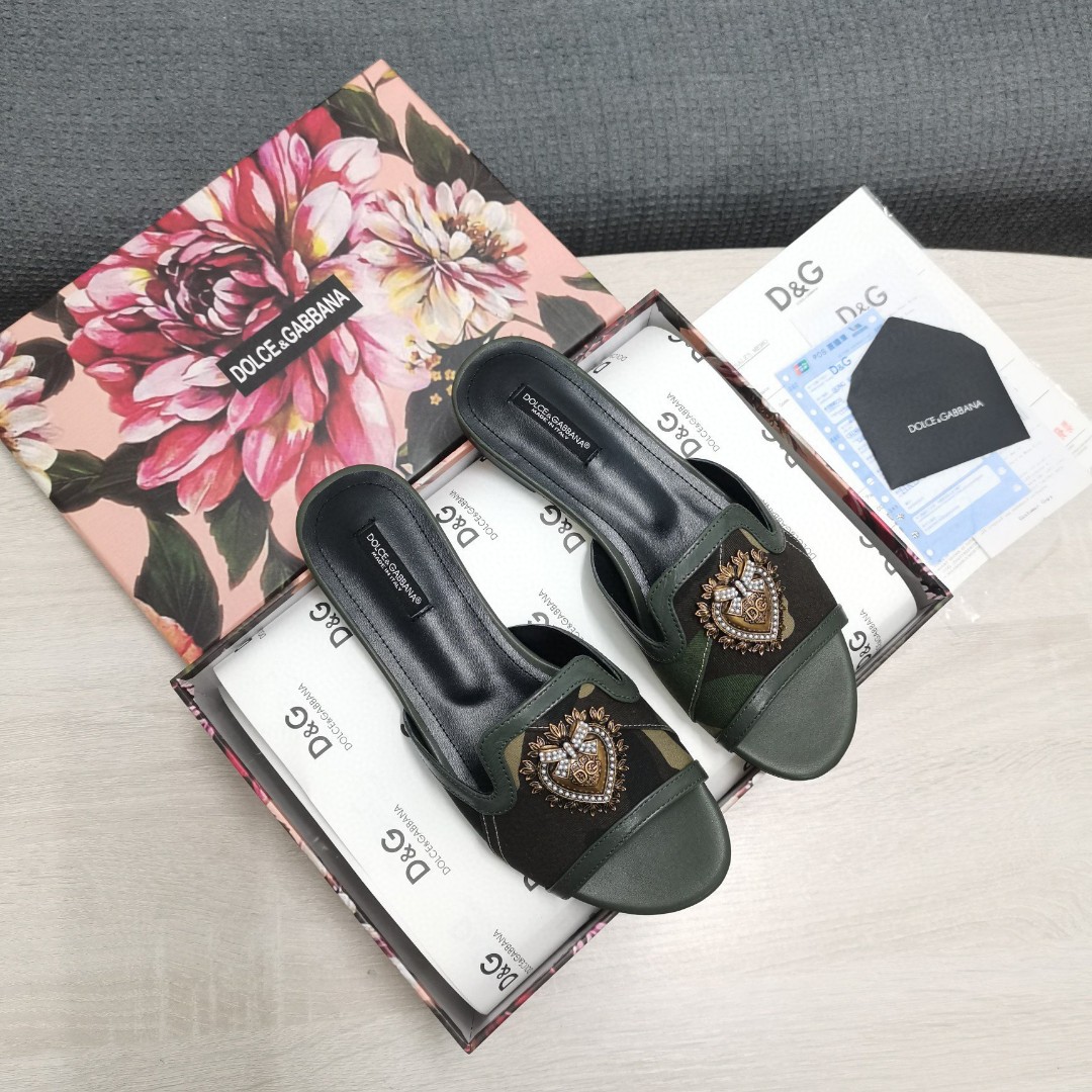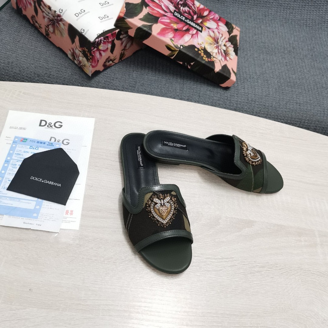 Dolce & Gabbana Devotion Slides In Camouflage Patchwork Black For Women DG Shoes CQ0446AY8438N913