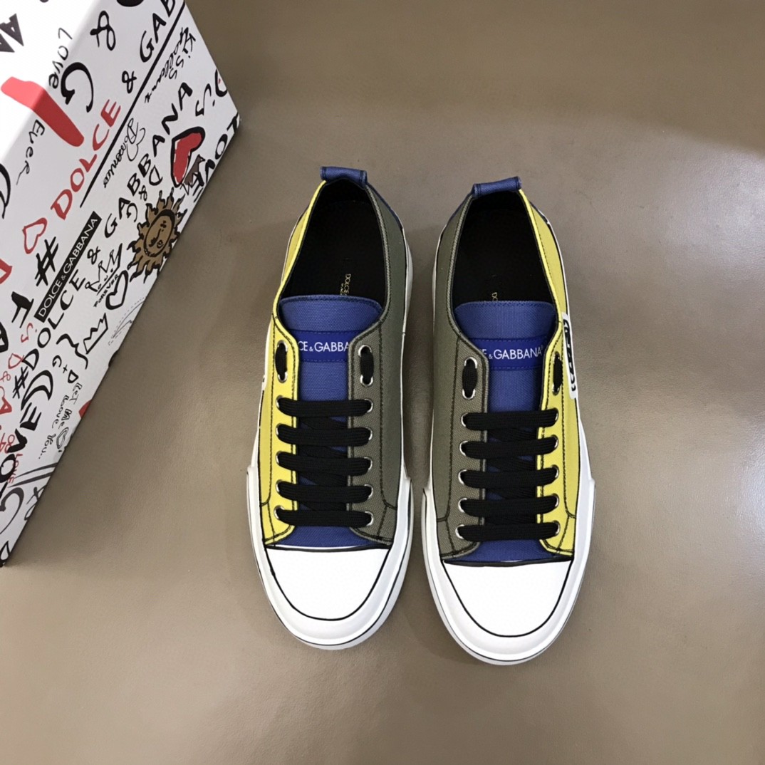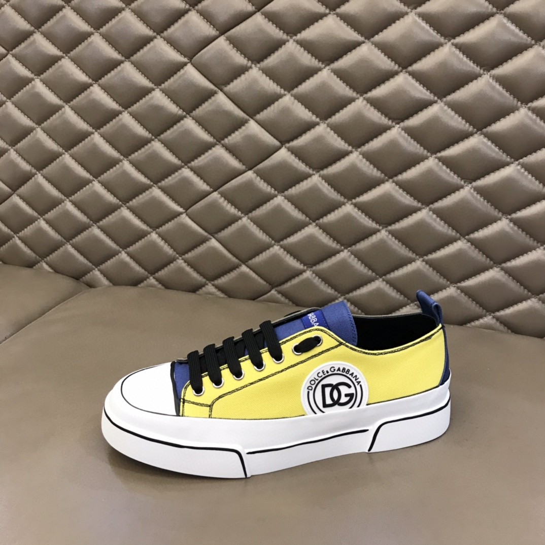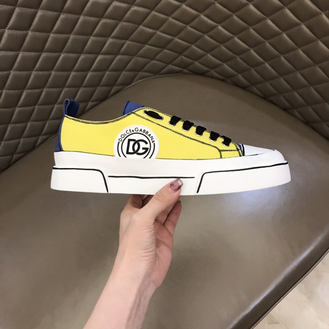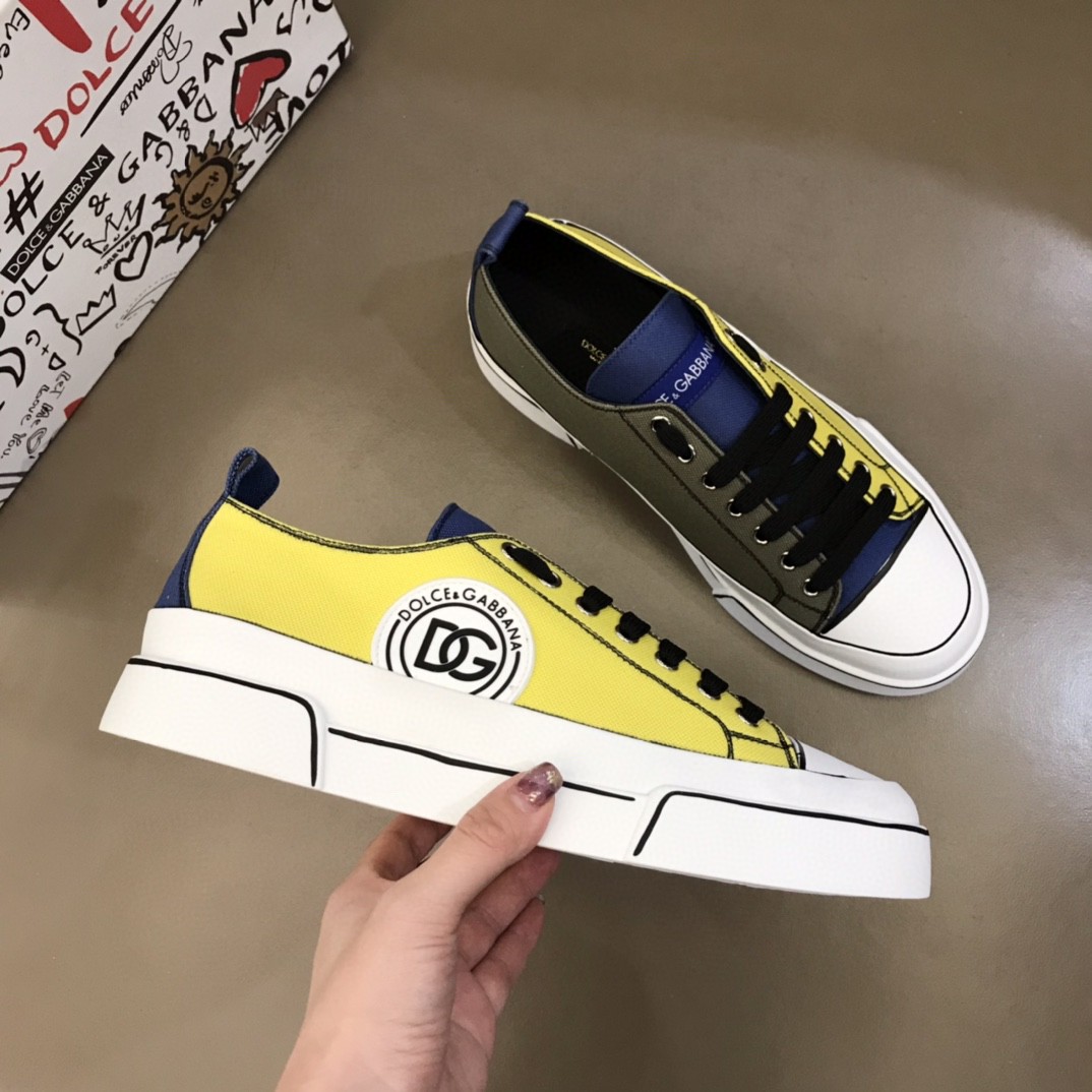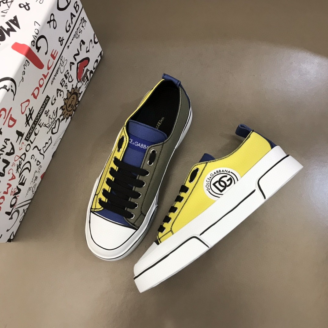 • Dolce & Gabbana Hand-Painted Canvas Portofino Light Sneakers Yellow For Men DG Shoes