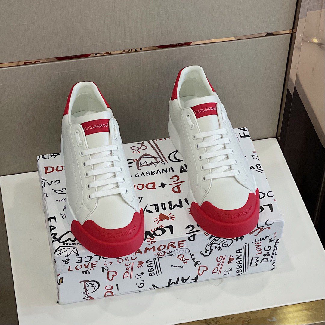 Dolce & Gabbana Nappa Portofino Sneakers With Rubber Toe White/Red For Men DG Shoes CS1802AW11389926