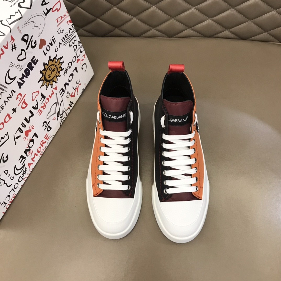 Dolce & Gabbana Two-Tone Canvas Portofino Light Mid-Top Sneakers With DG Logo Brown/Black For Men DG ShoesÂ