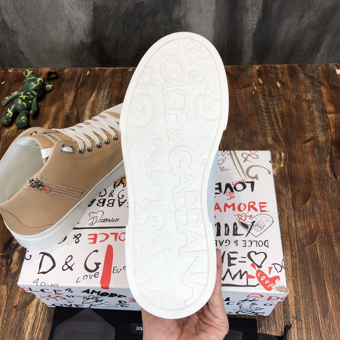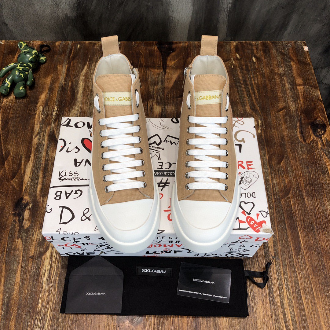 Dolce & Gabbana Two-Tone Canvas Portofino Light Mid-Top Sneakers With DG Logo Brown For Men DG Shoes