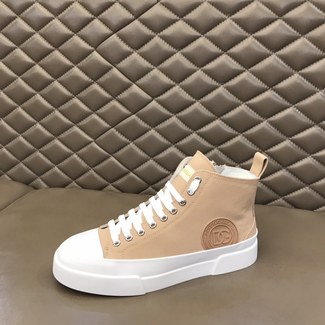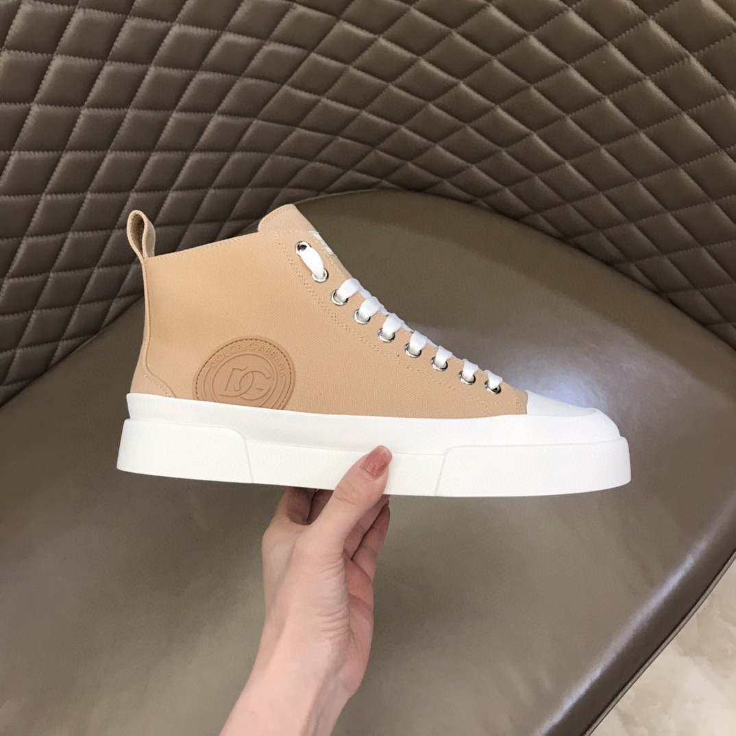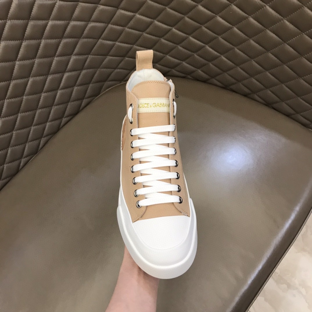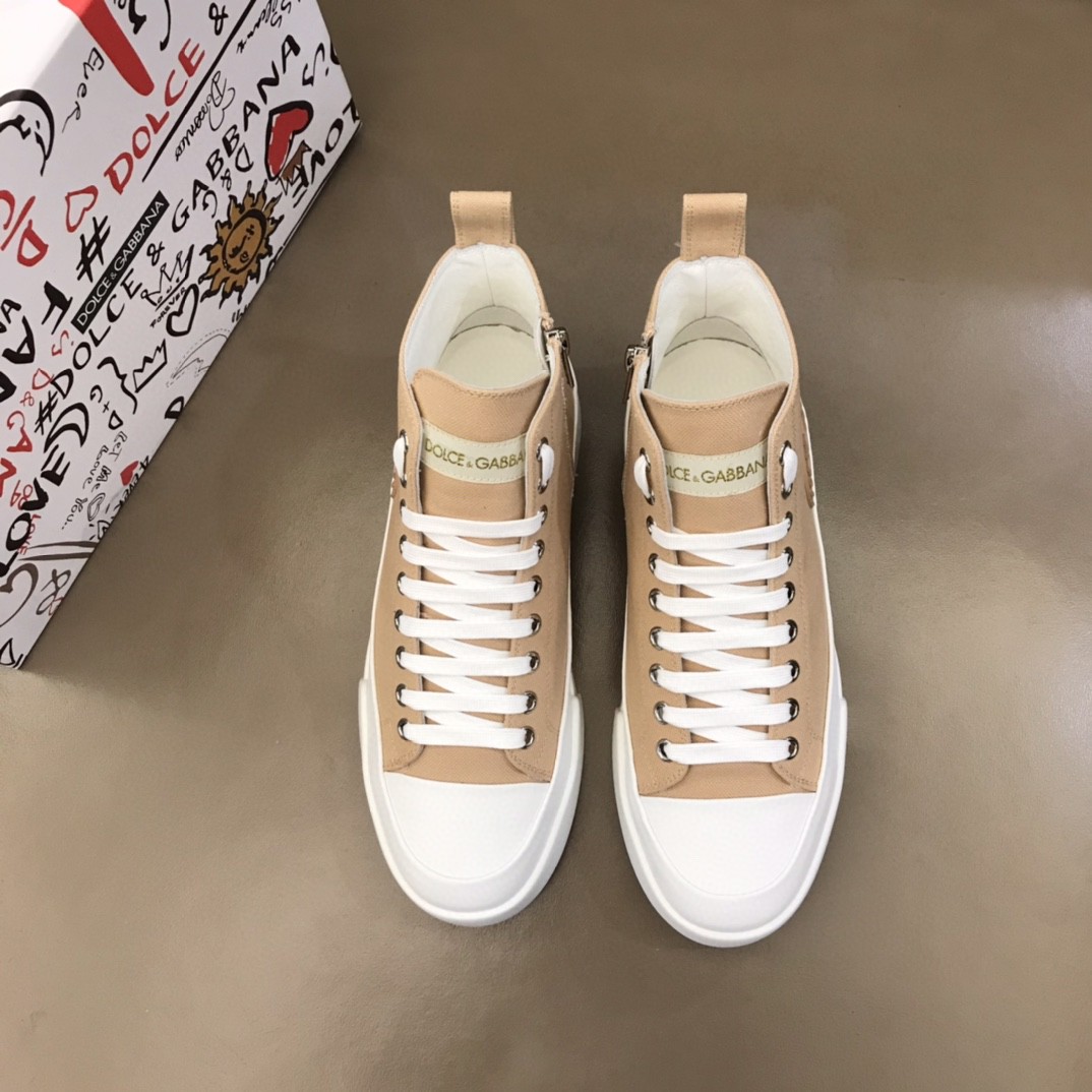 Dolce & Gabbana Two-Tone Canvas Portofino Light Mid-Top Sneakers With DG Logo Brown For Men DG Shoes
