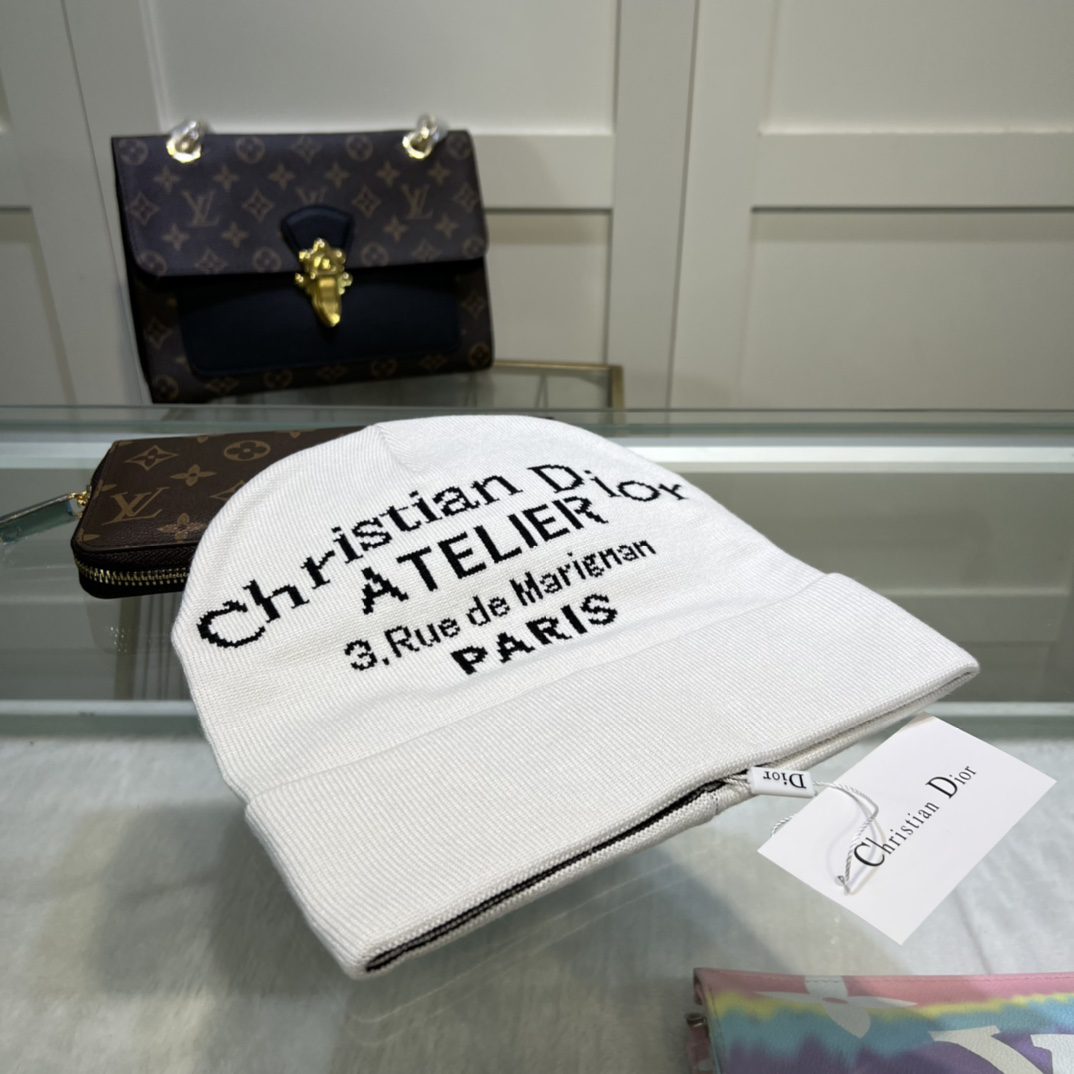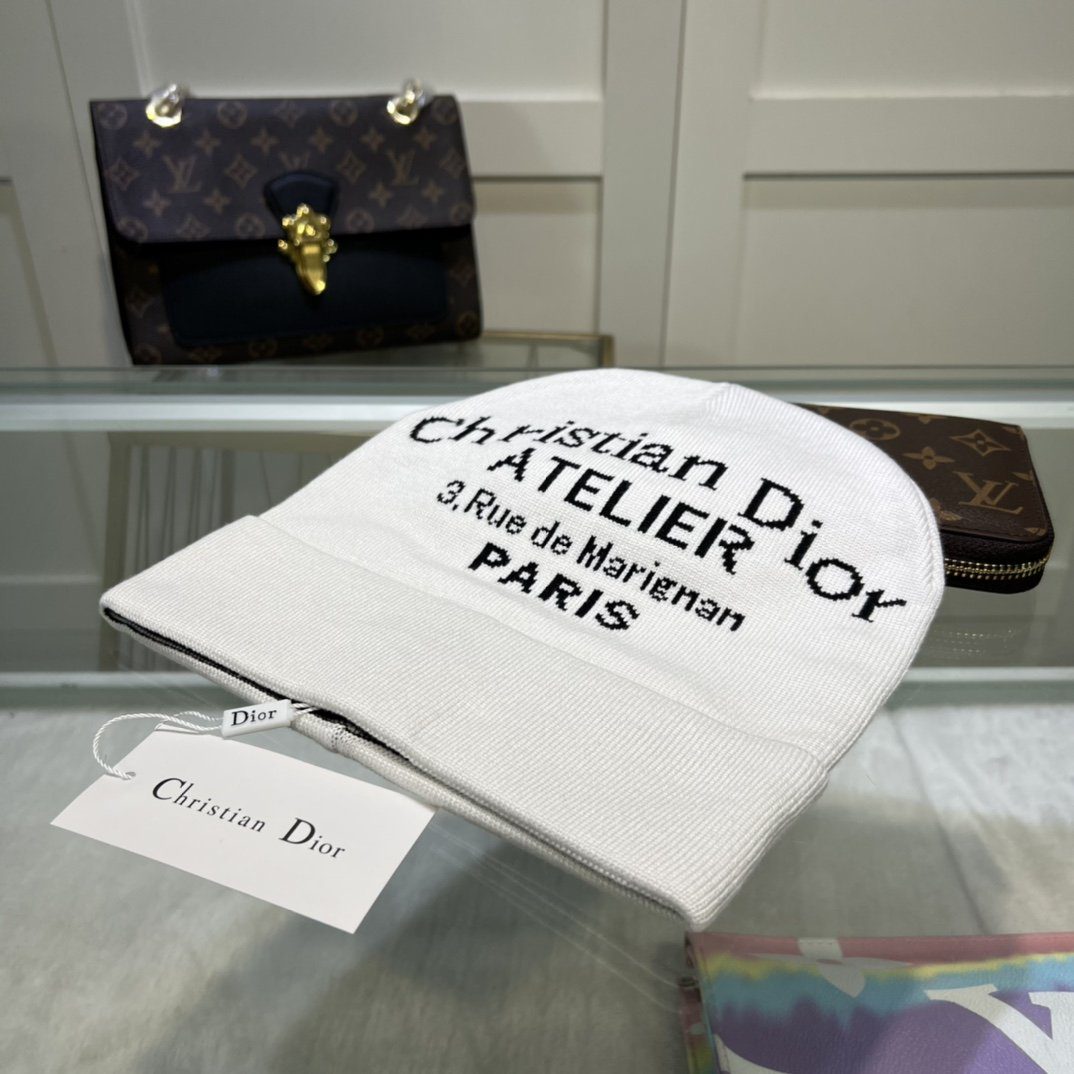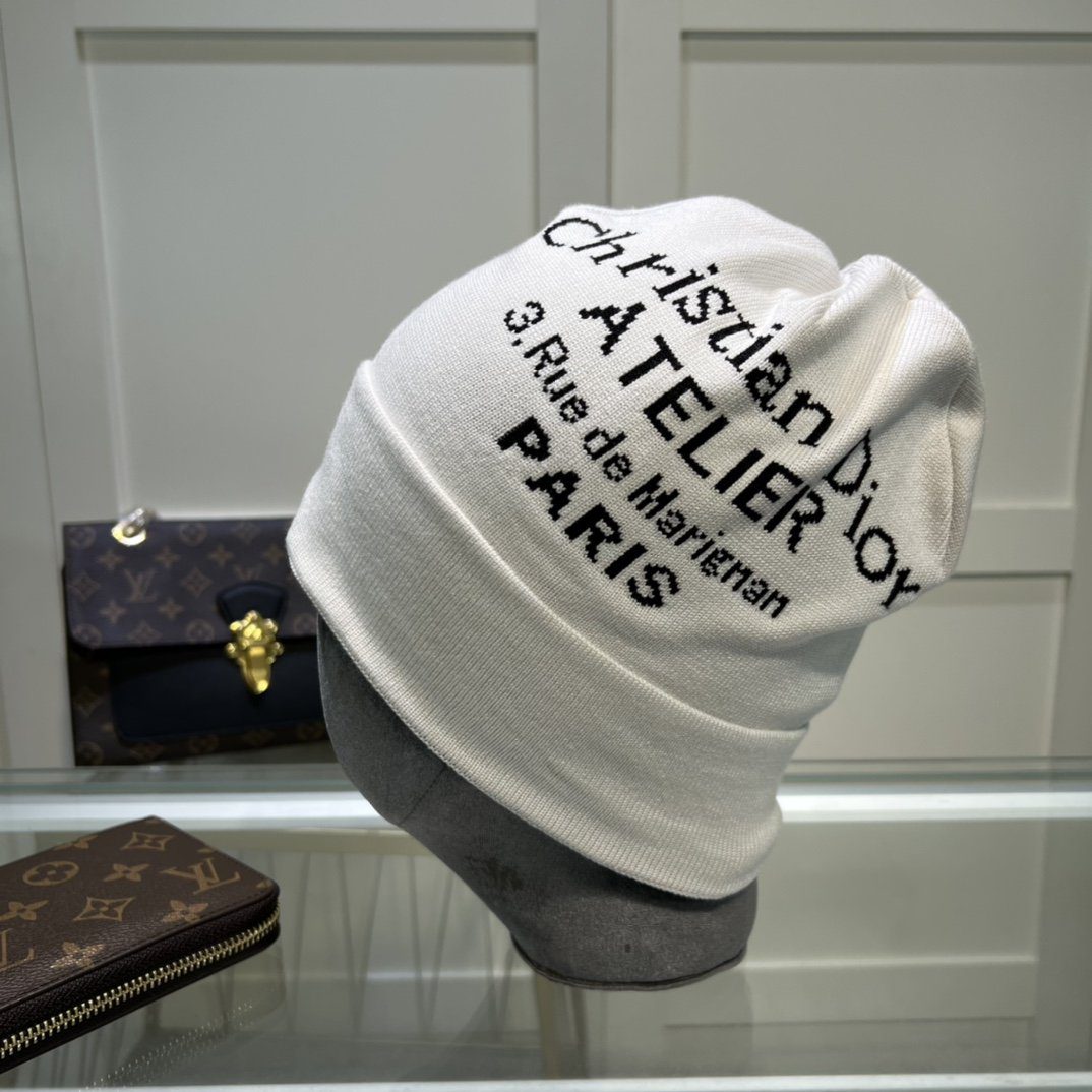 Dior Pompom Beanie In White