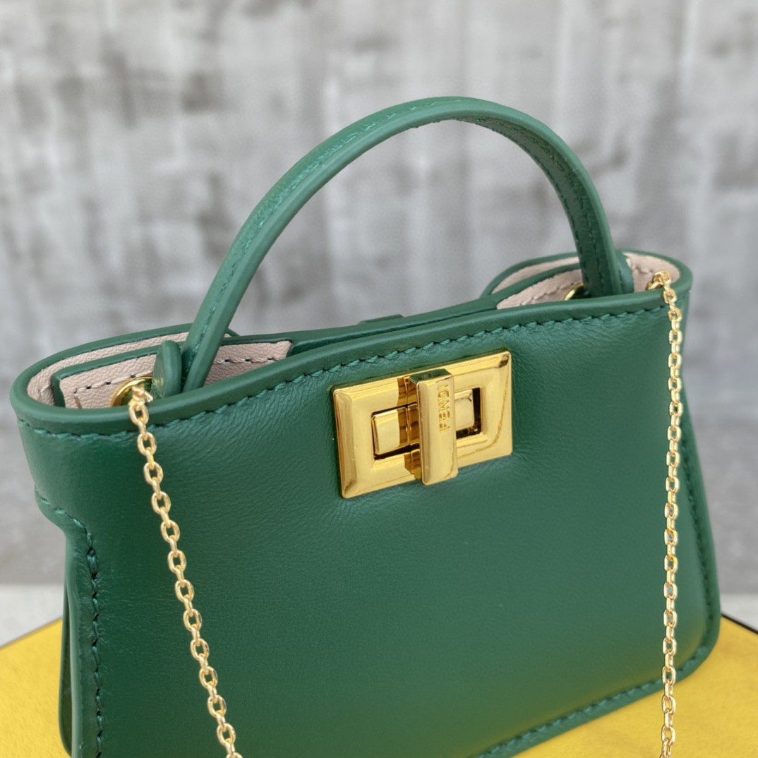 Fendi Nano Peekaboo Charm Crossbody Green Bag For Woman 12cm/4.5in