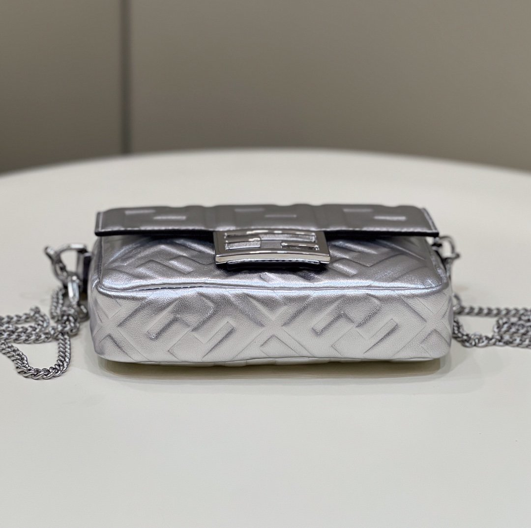 Fendi Baguette Silver For Women, Women’s Handbags, Shoulder And Crossbody Bags 7.5in/19cm FF 8BS017