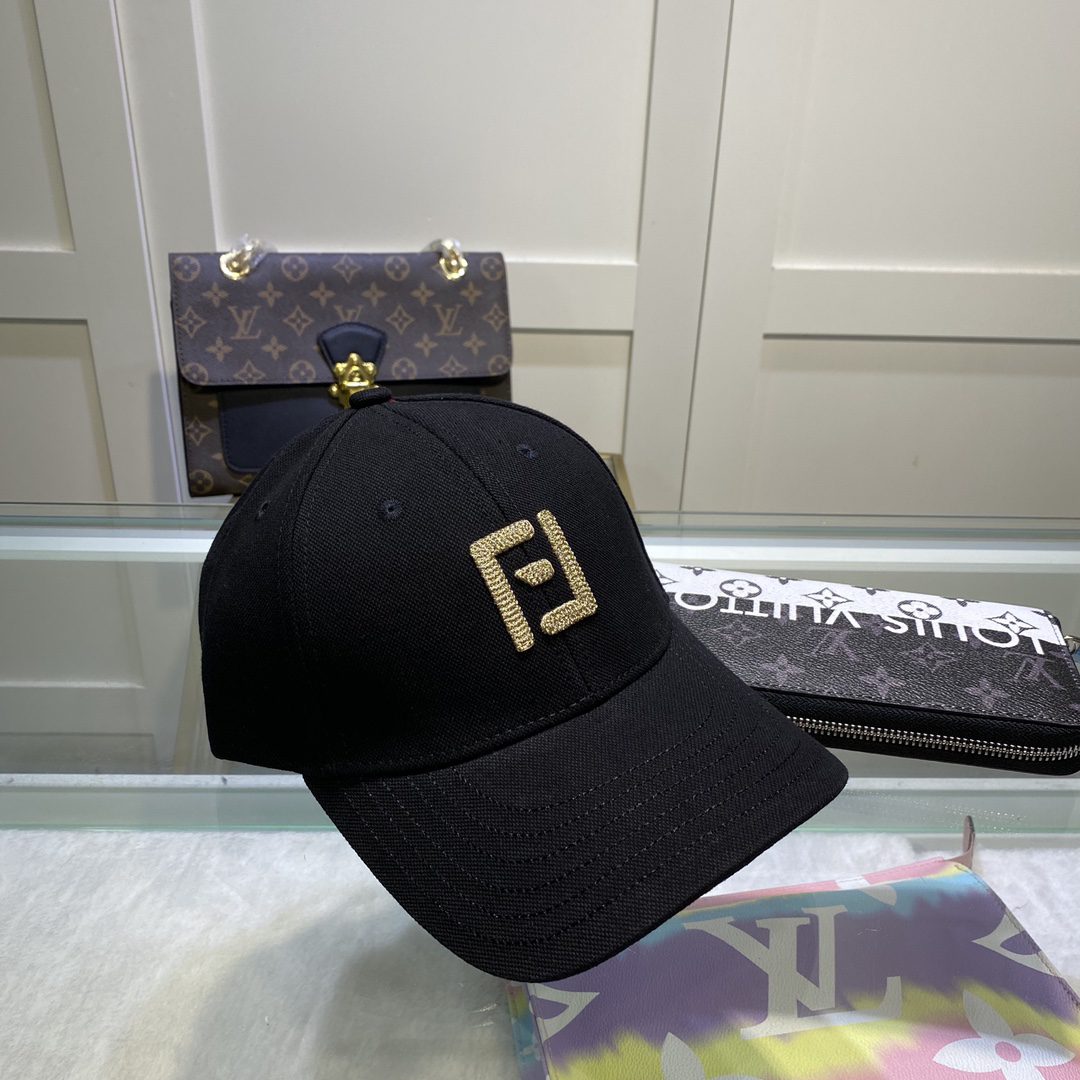 Baseball cap with semi-rigid top. Decorated with Fendi patch on the front.