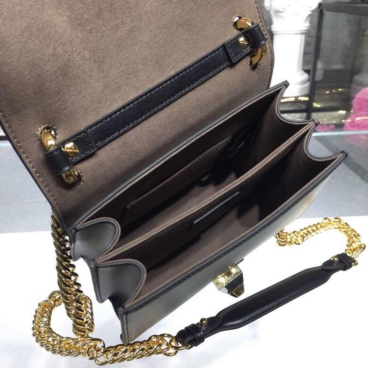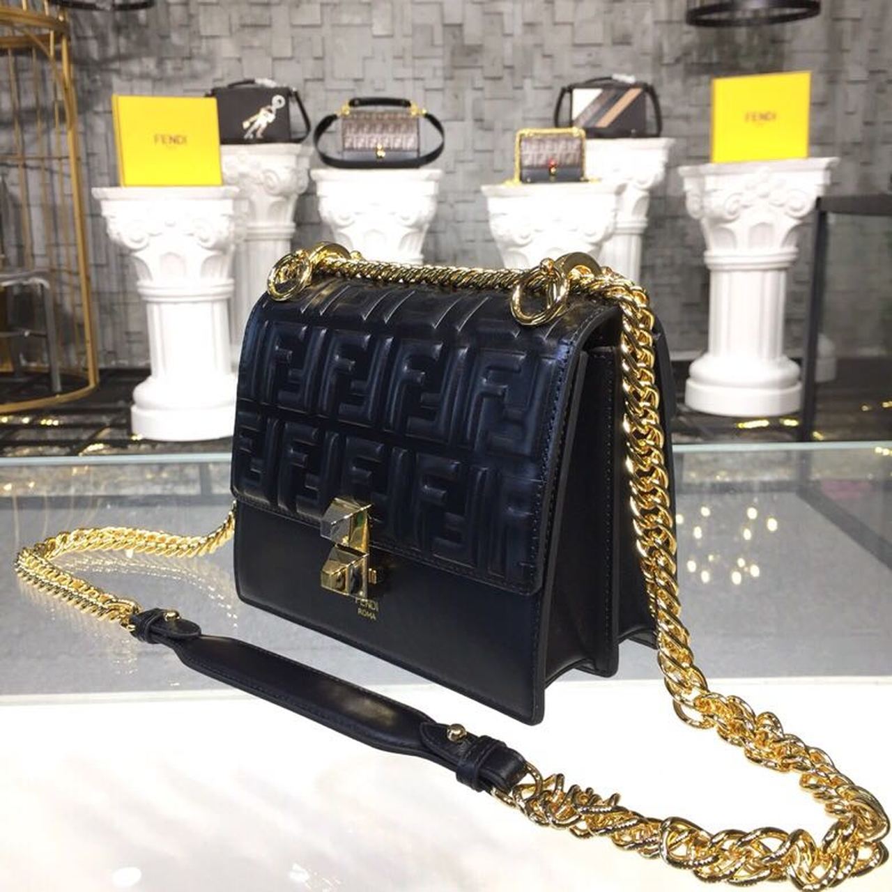 Fendi FF Logo Kan I Bag 9.8in/25cm With Gold Toned Chain Black For Women