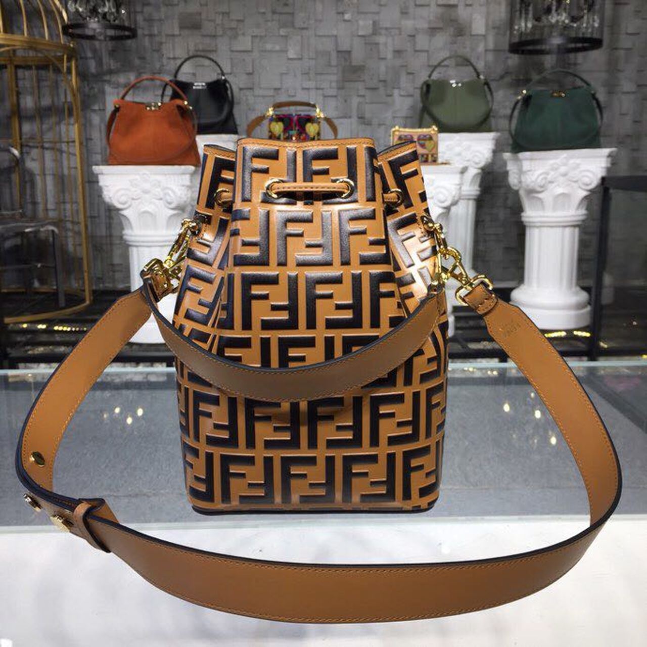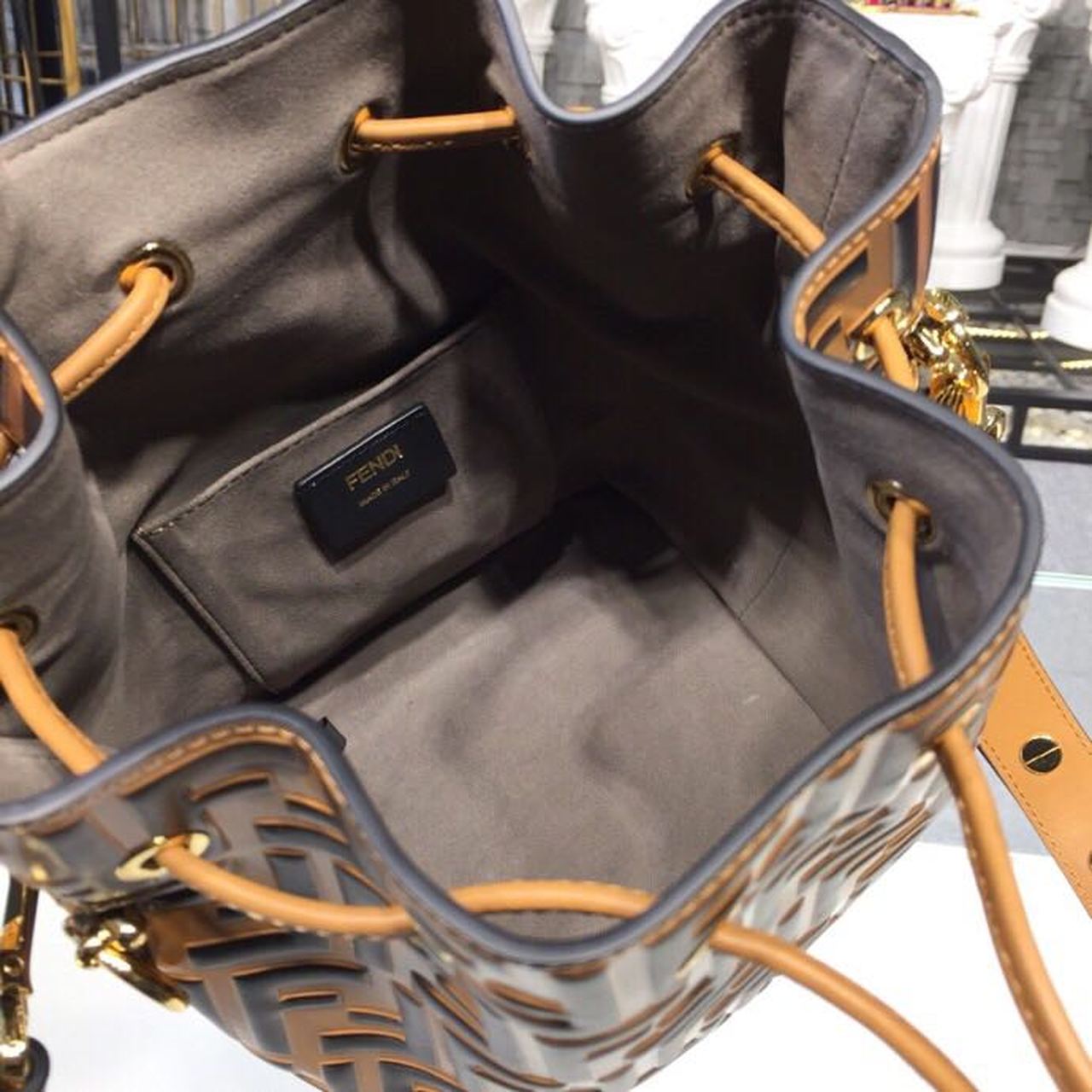 Fendi Mon Tresor Bucket Bag Brown For Women, Women’s Bags, Shoulder And Crossbody Bags 9in/23cm FF 8BT298
