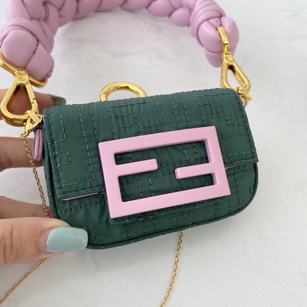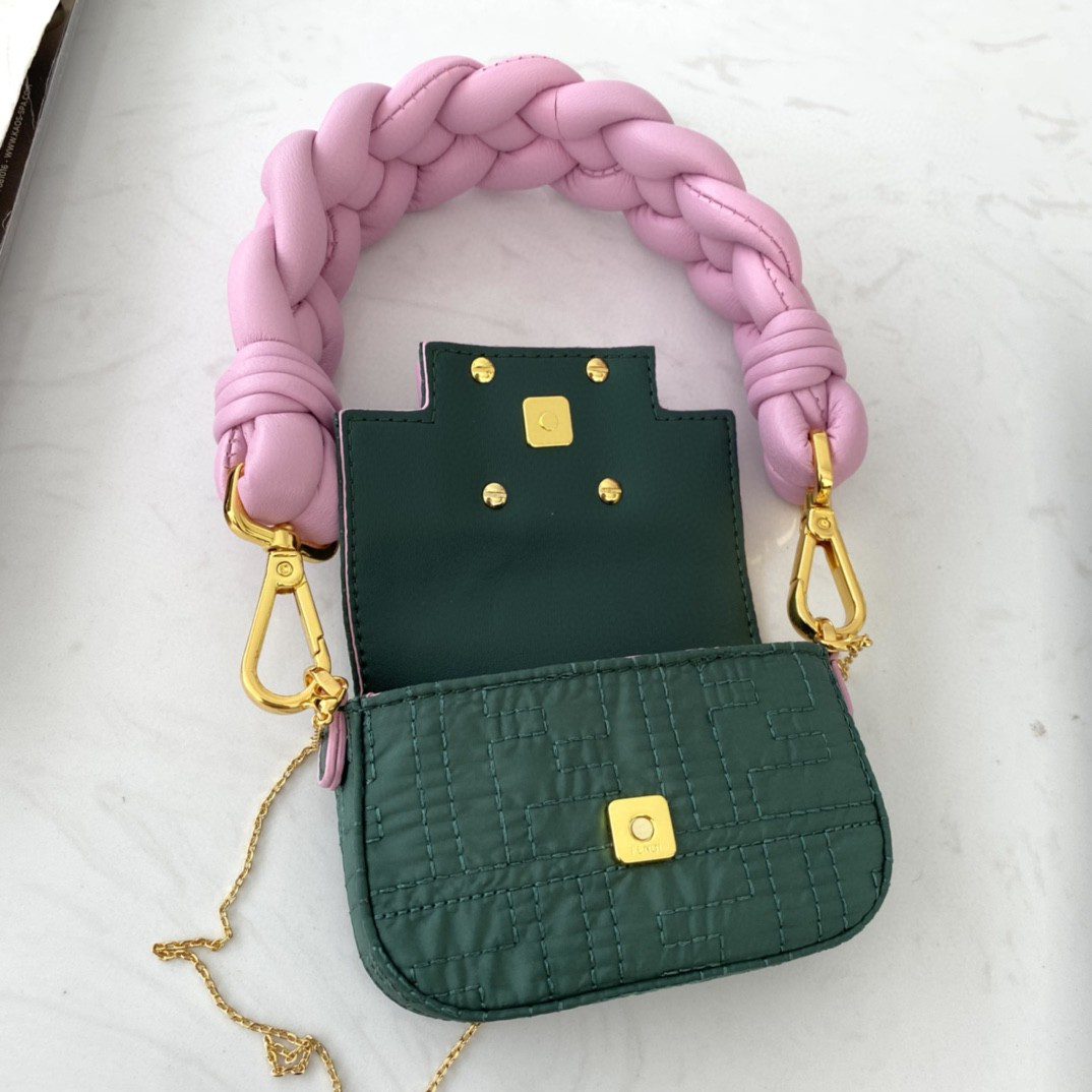 Fendi Nano Baguette Maxi Handle Pink and Green Bag For Woman 6.5cm/2.5in