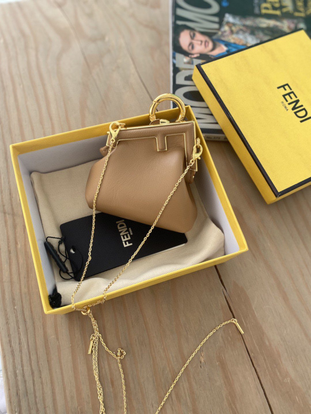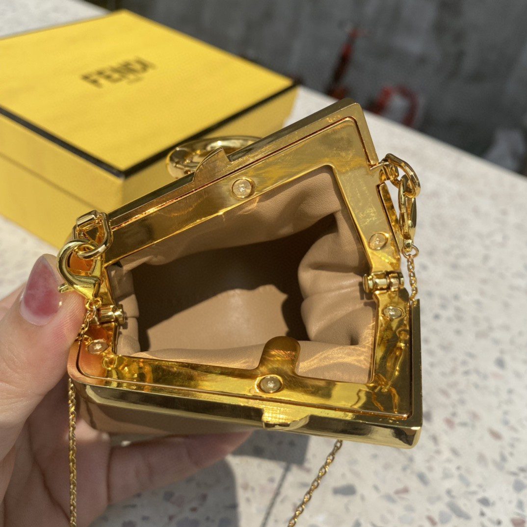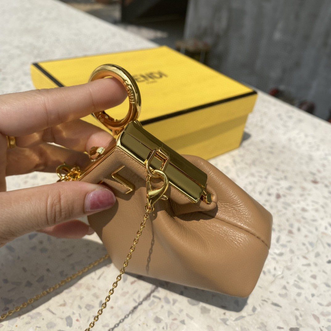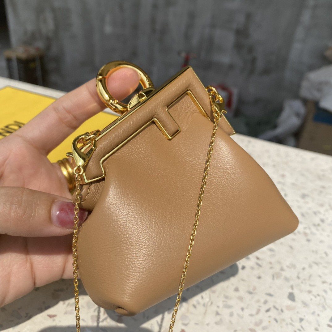 • Fendi Nano First Charm Light Brown Bag For Woman 10cm/4in