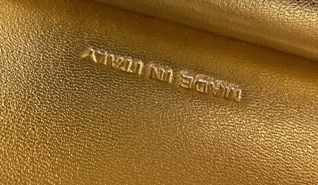 Featuring a soft laminated gold-coloured nappa leather lining, two compartments separated by a stiff partition and gold-finish metalware.