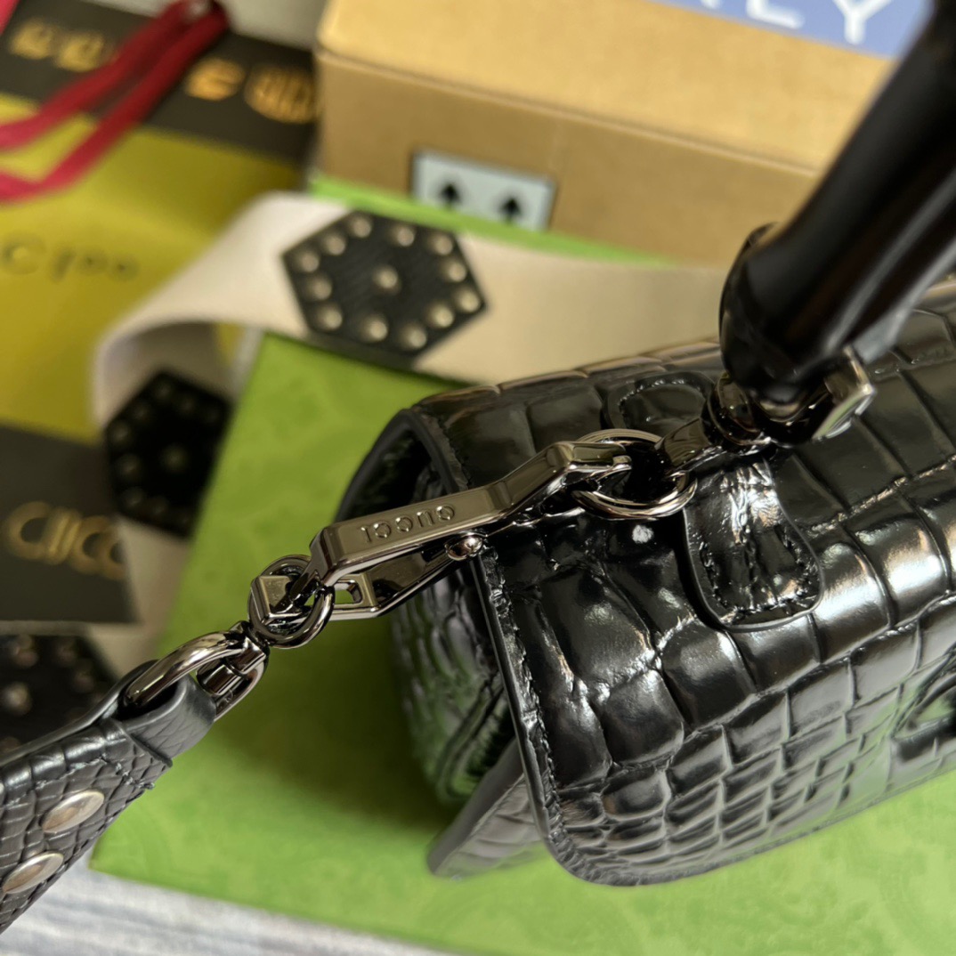 Gucci Bamboo 1947 Crocodile Top Handle Bag Black For Women, Women’s Bags 10.2in/26cm GG