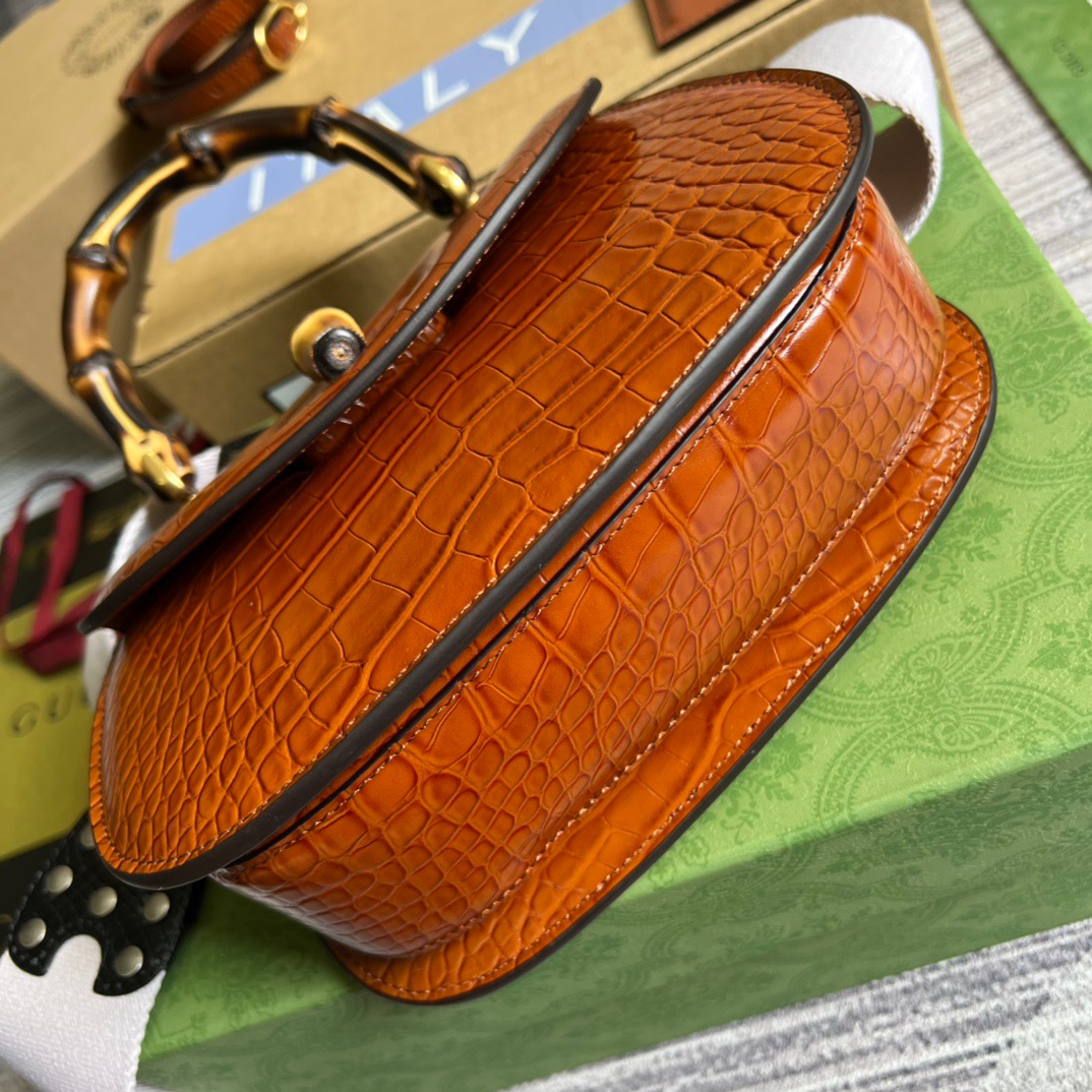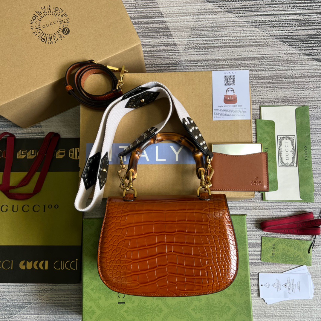 Gucci Bamboo 1947 Crocodile Top Handle Bag Red For Women, Women’s Bags 10.2in/26cm GG