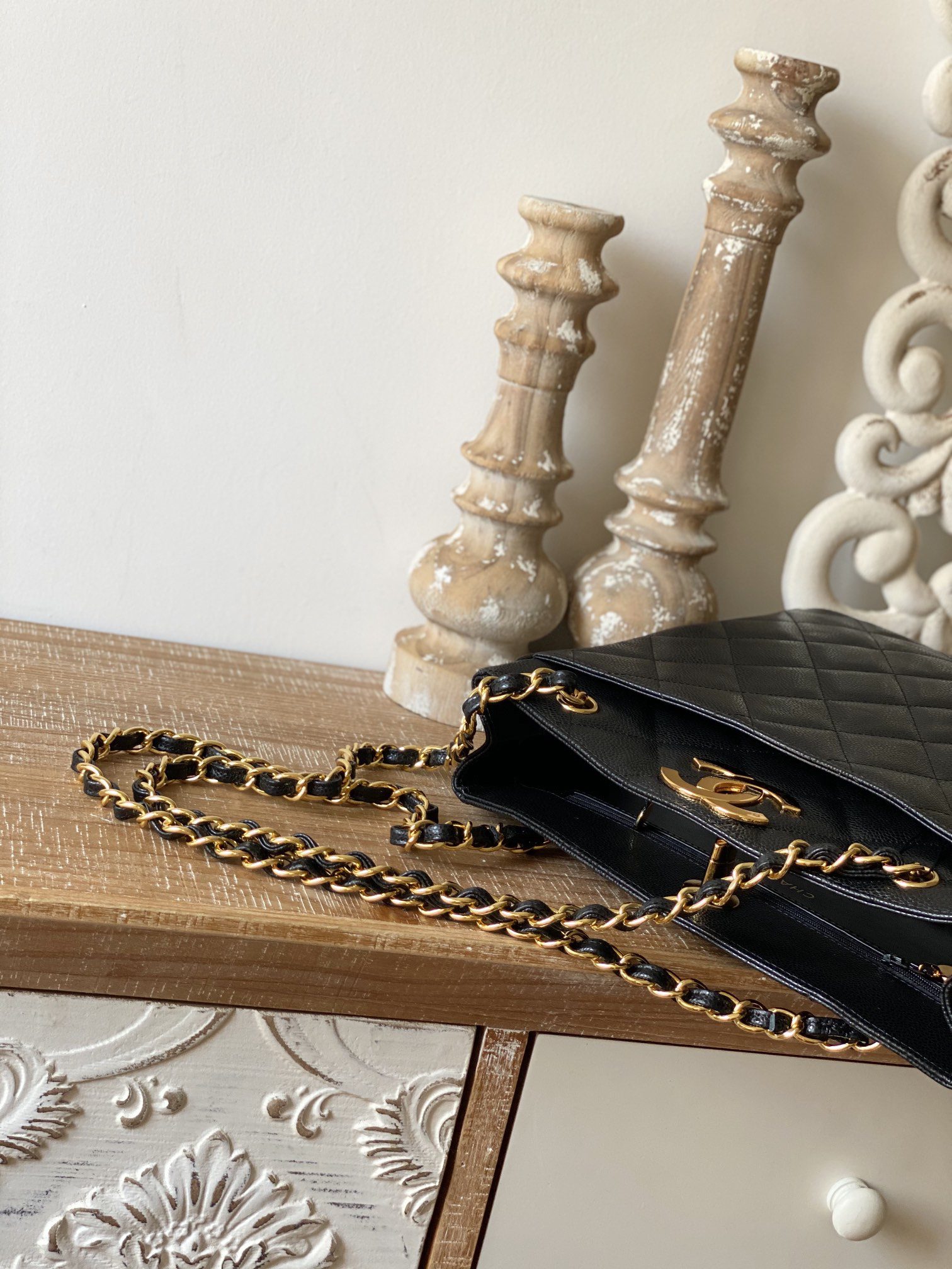 Chanel Vintage Black Large Quilted Caviar Tote Bag For Women 28cm/11in
